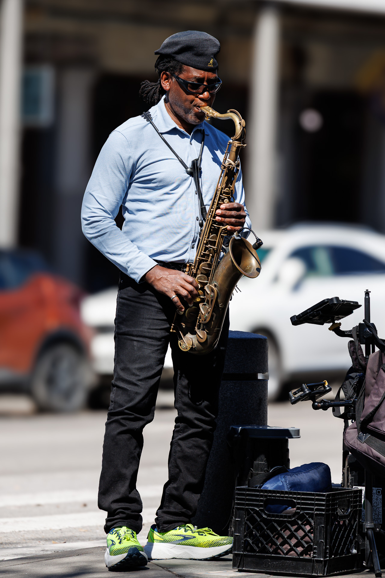 et un joueur de saxophone. On en profite pour faire une petite halte musicale.