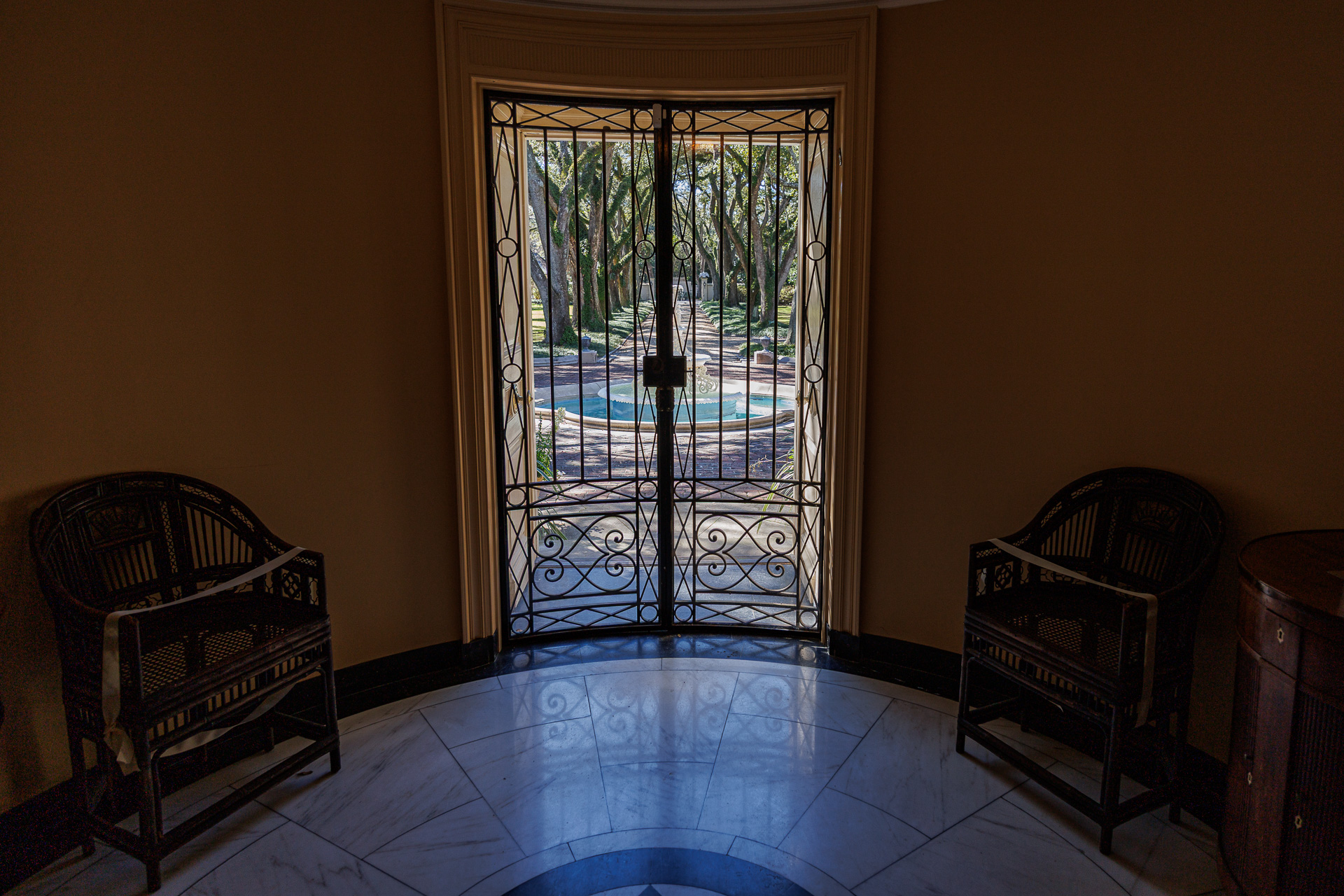 La maison de Longue Vue est une merveille d’ingénierie de pointe du début du 20ème siècle. Elle dispose d’un système de climatisation central résidentiel, inconnu dans la région à cette époque. Cette entrée bénéficie de portes en arc de cercle à galandage. Pas facile 🤔