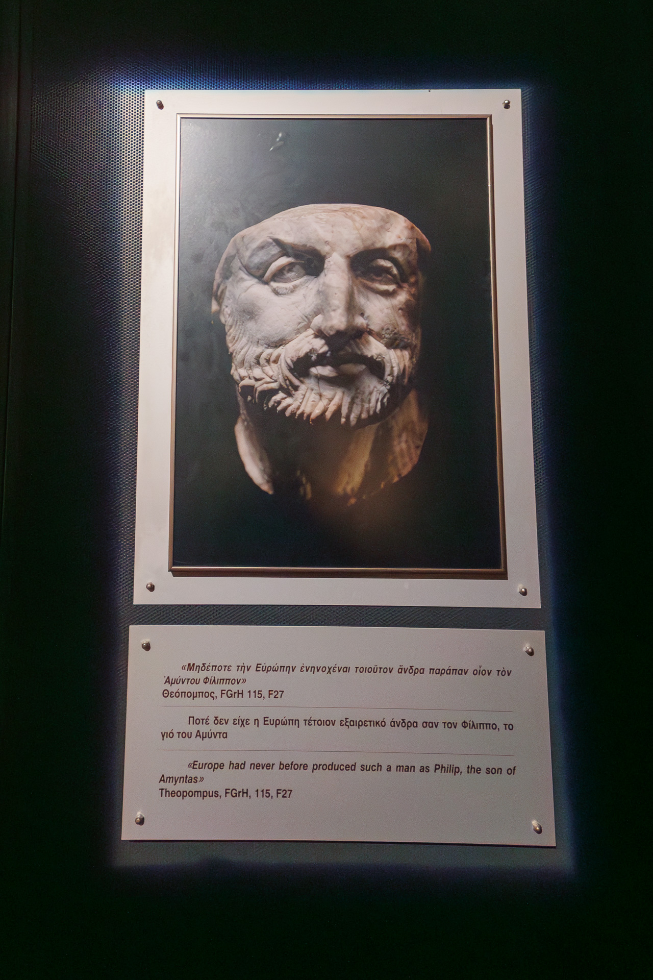 La tombe de Philippe II se situe près de l’antique Aigai, première capitale du royaume de Macédoine. La fouille du site de Vergína, ville moderne près d’Aigai, a révélé lors de fouilles effectuées en 1977 les témoignages les plus précieux de l’art pré-hellénistique. Parmi les onze tombes dégagées, celle attribuée à Philippe II, le père d’Alexandre le Grand, est restée inviolée jusqu’à cette date. Le site d’Aigai, dont fait partie la nécropole royale, est classé au patrimoine mondial de l’UNESCO.