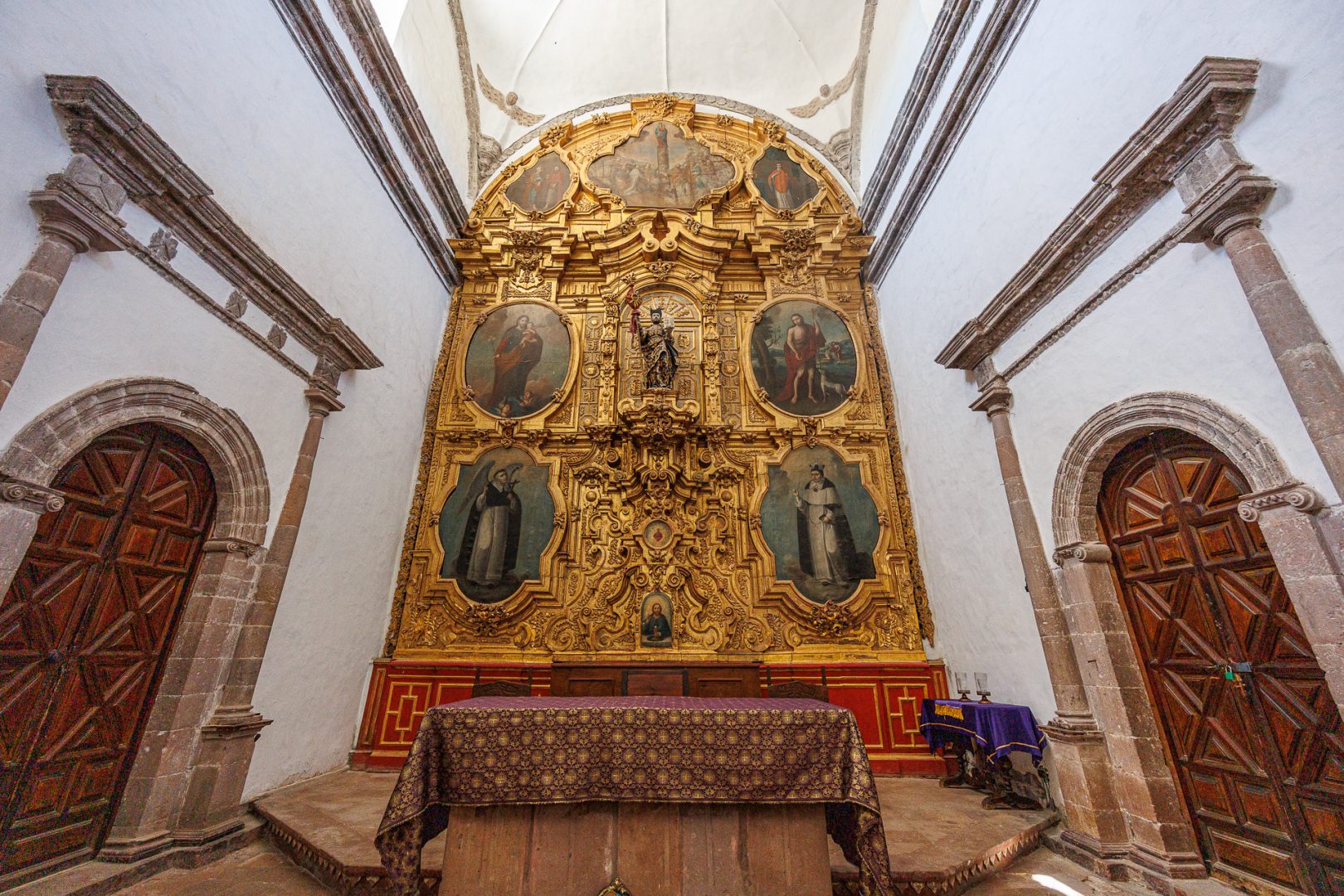 Ce retable baroque en bois sculpté et doré abrite sept peintures à l’huile représentant des scènes religieuses, ainsi qu’une statue de son Saint Patron, Saint Ignace de Loyola.