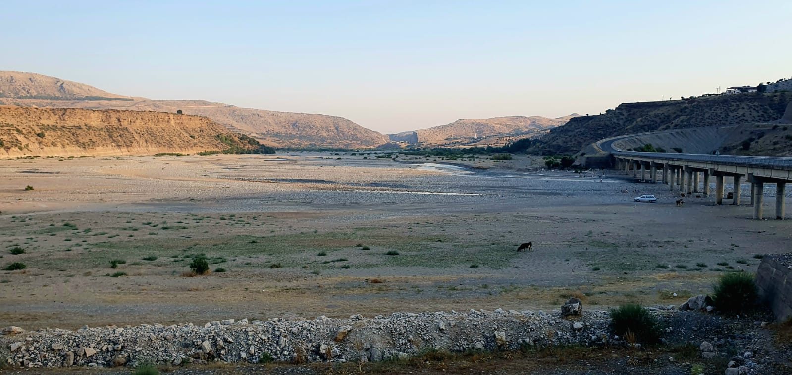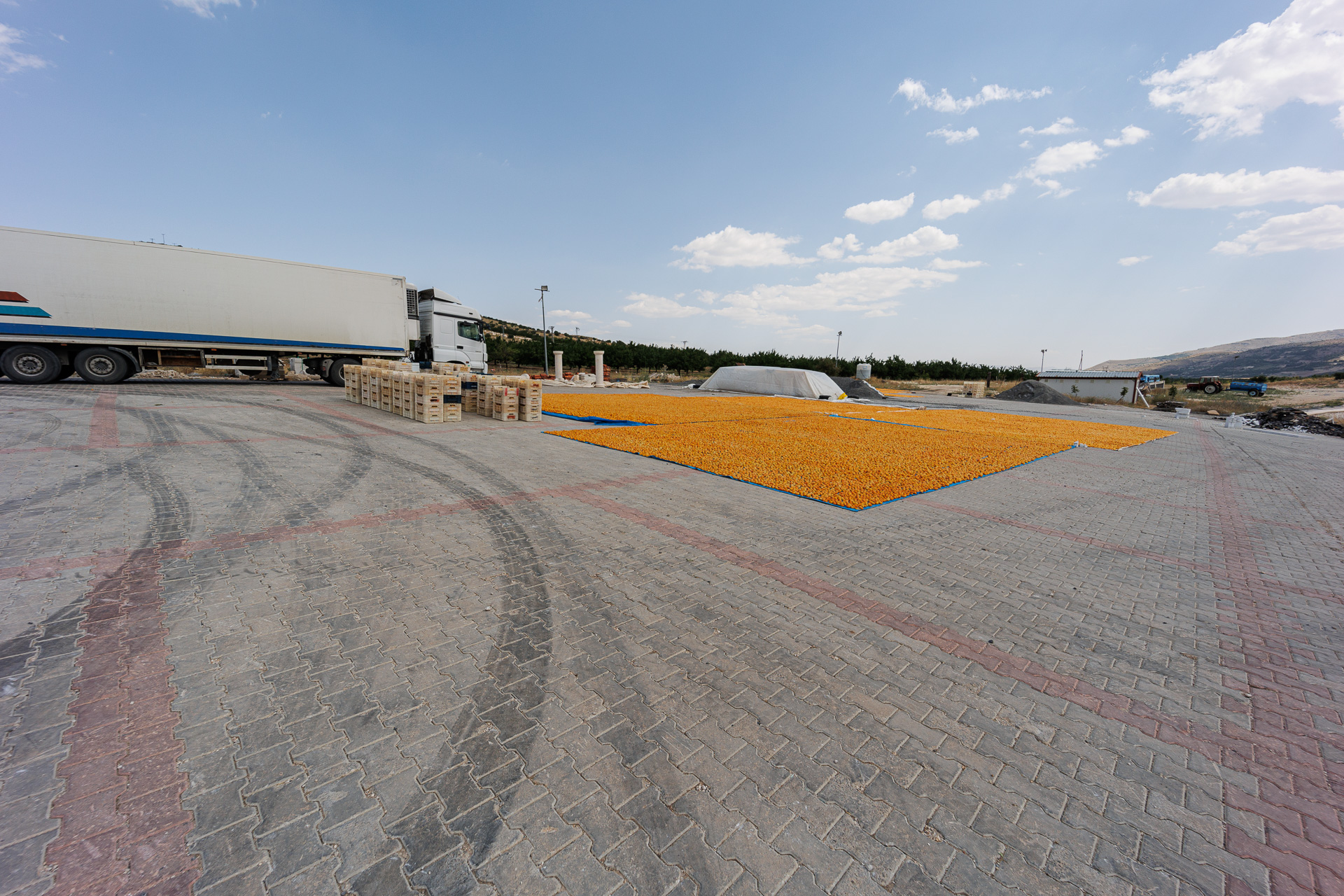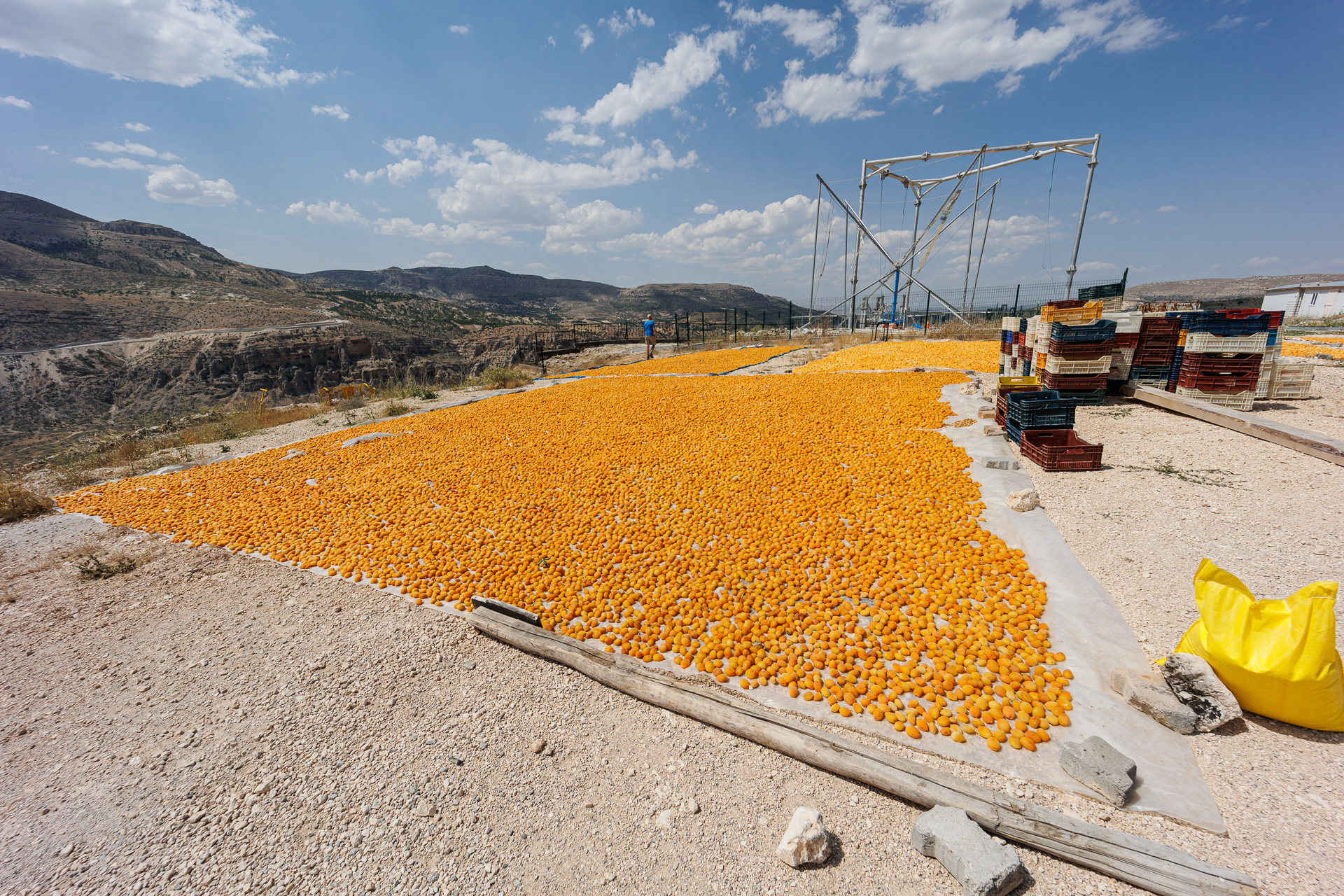 Les travaux d’aménagement du site sont à l’arrêt depuis le violent tremblement de terre qui a touché la Turquie en février 2023. Le lieu sert de zone de séchage des abricots et il y en a…