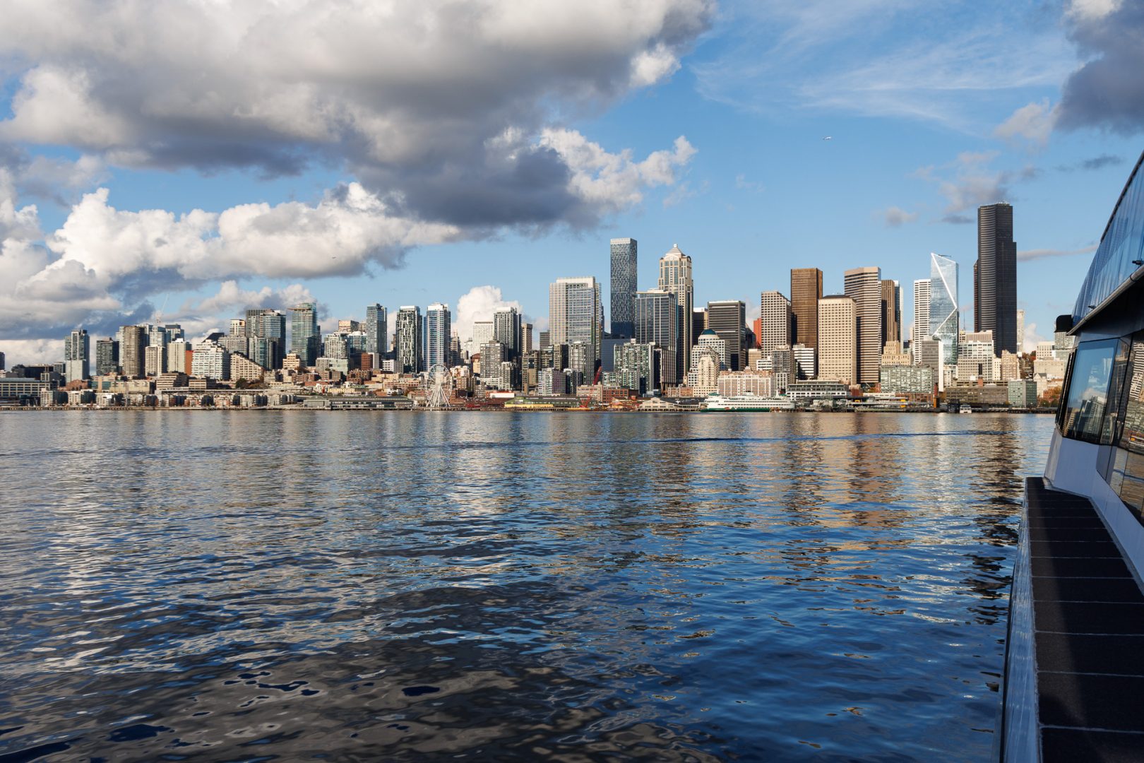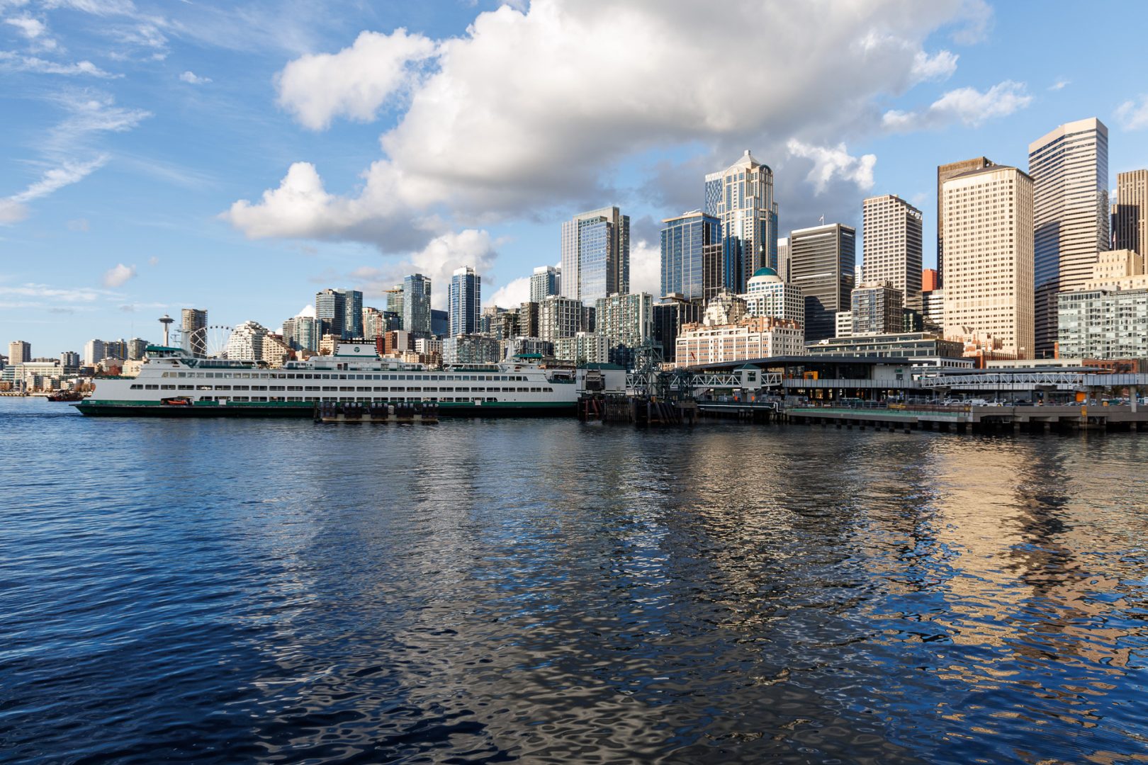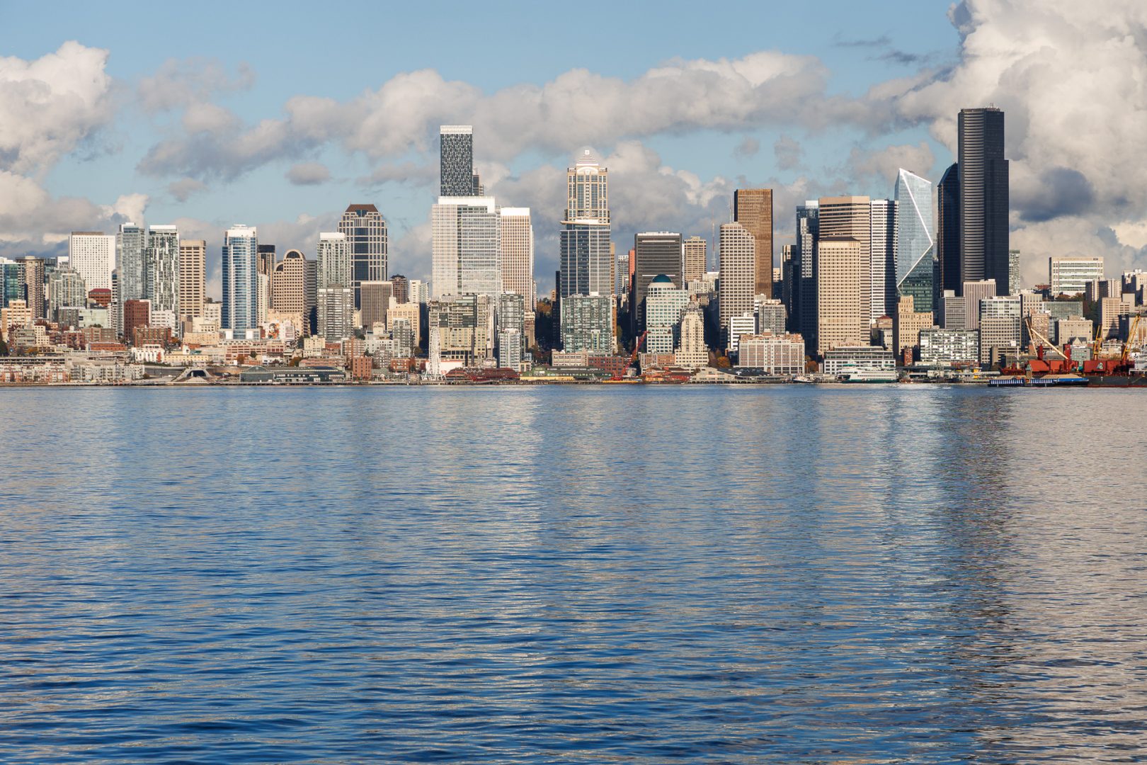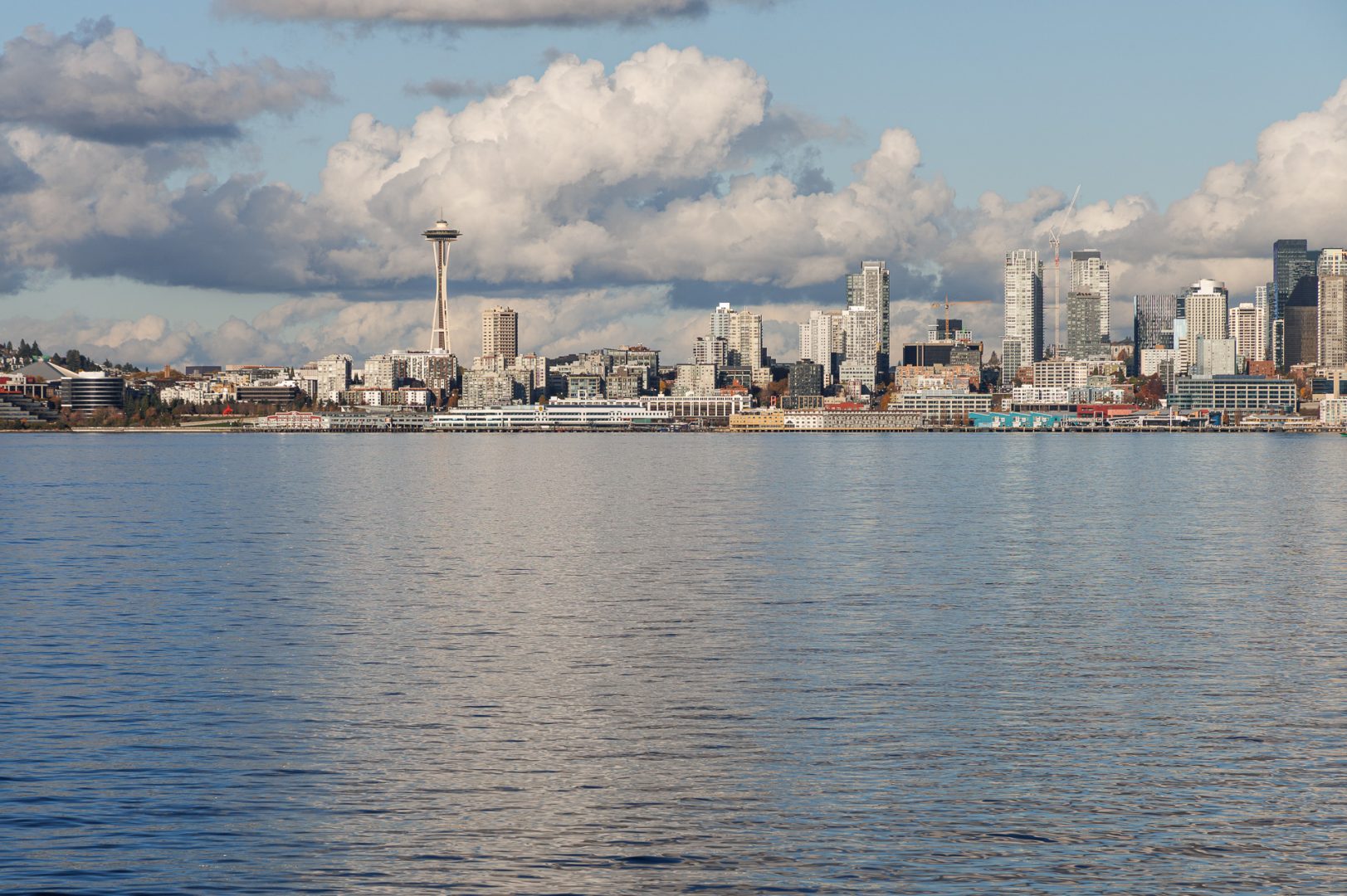 L’océan dans le Puget Sound (détroit de Puget) est calme. Nous pouvons admirer les reflets des immeubles dans l’eau