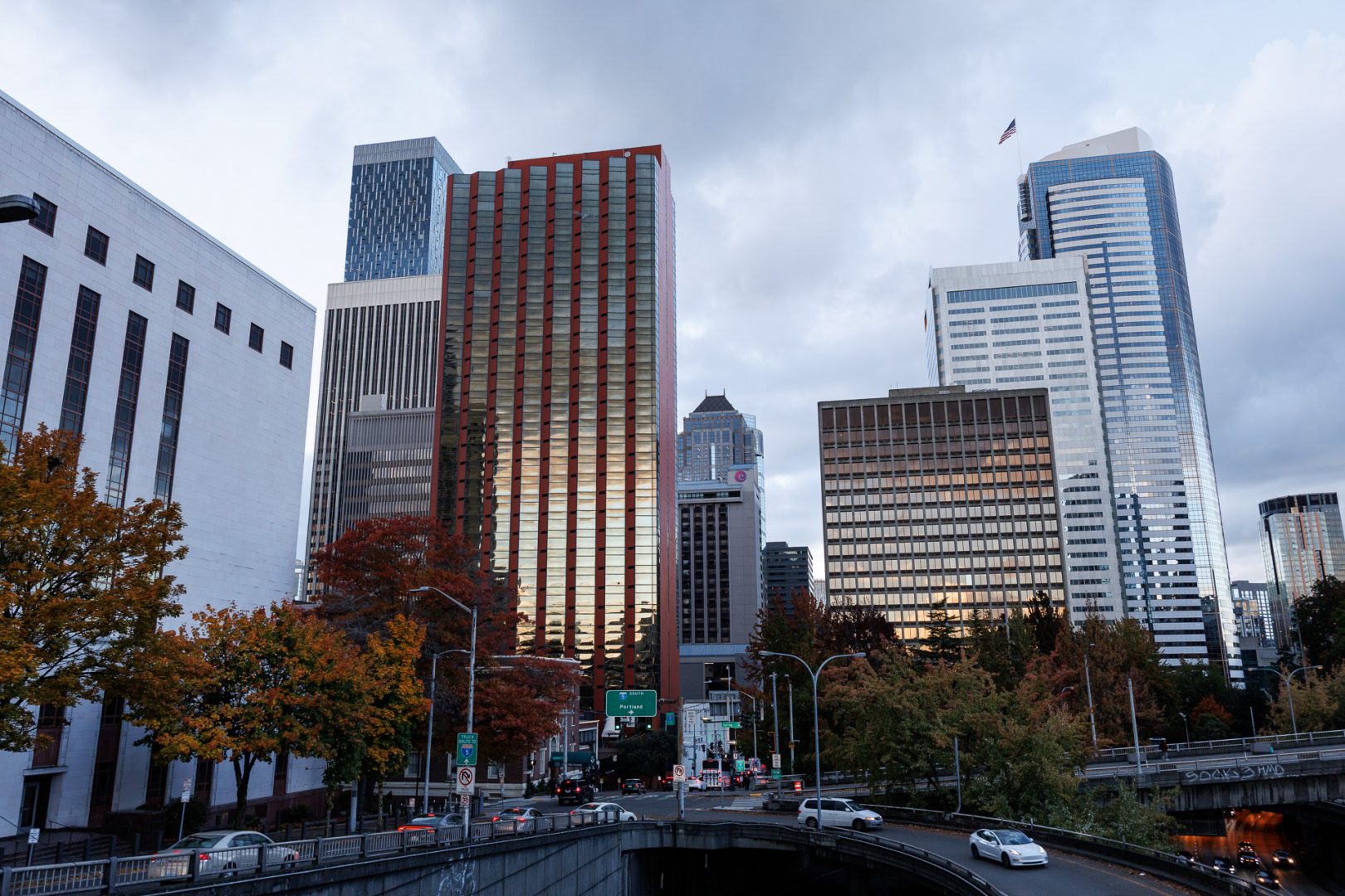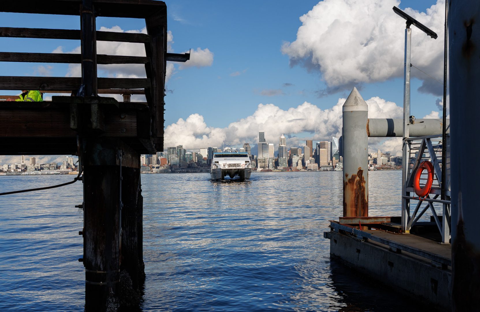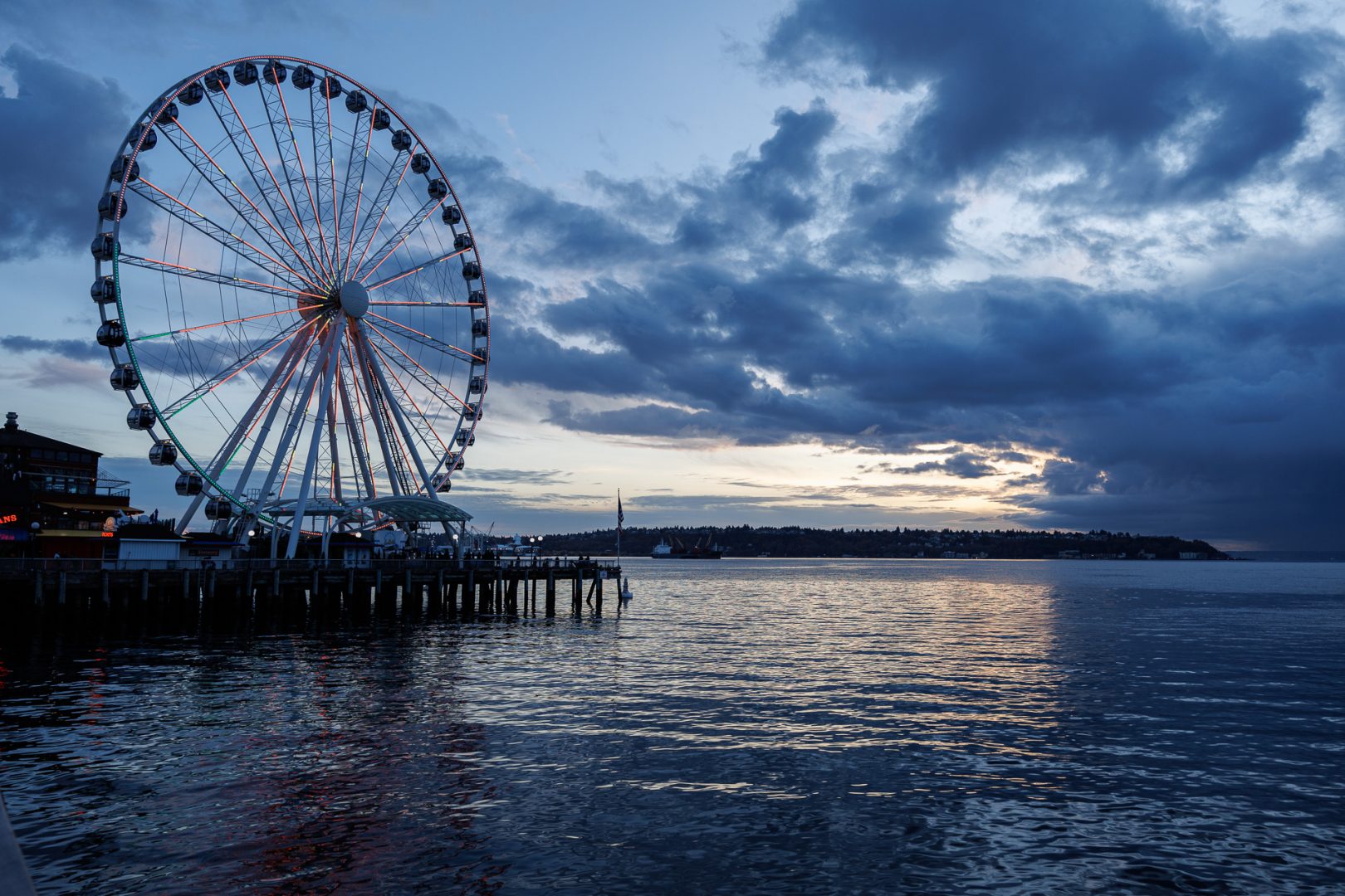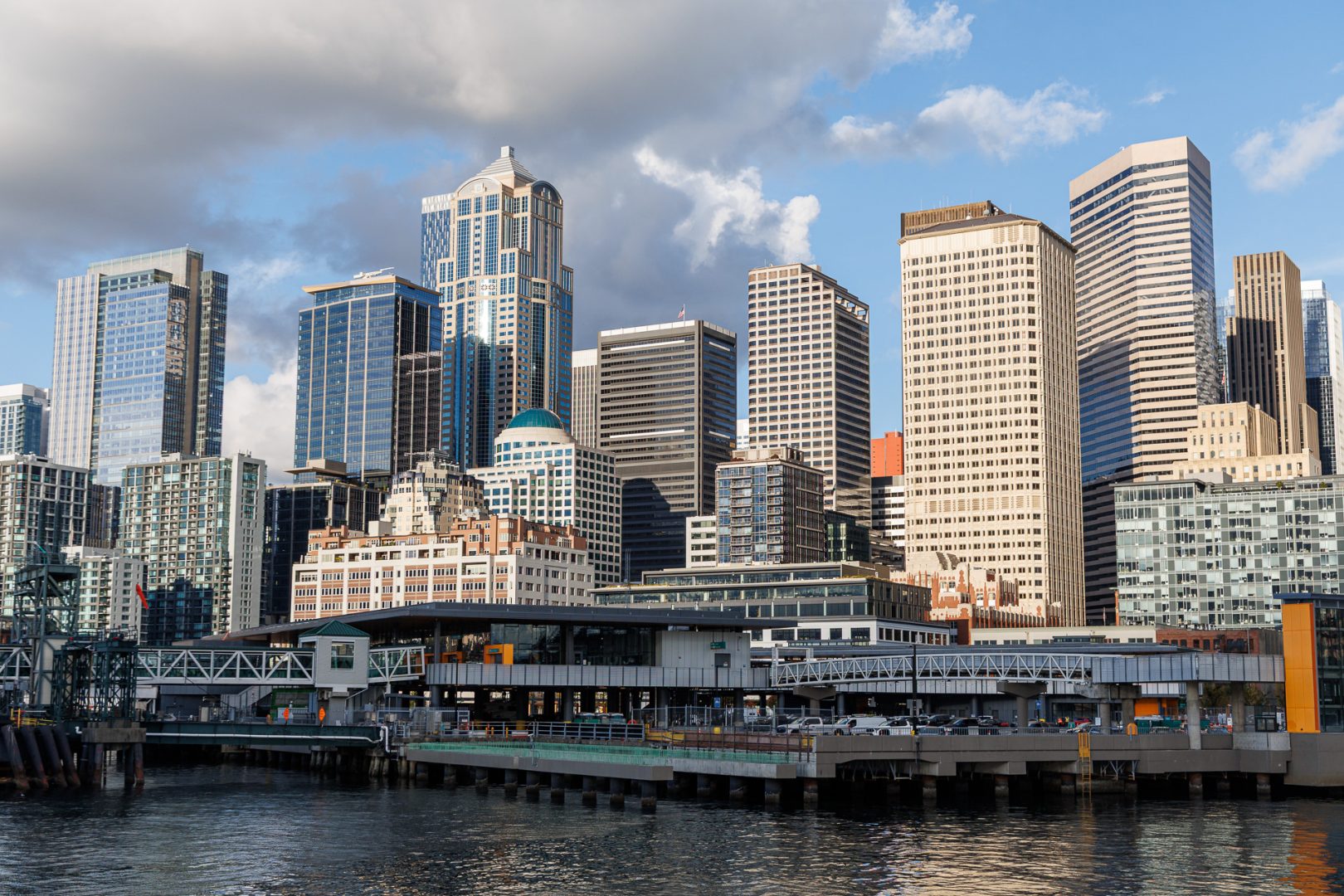 L’océan dans le Puget Sound (détroit de Puget) est calme. Nous pouvons admirer les reflets des immeubles dans l’eau