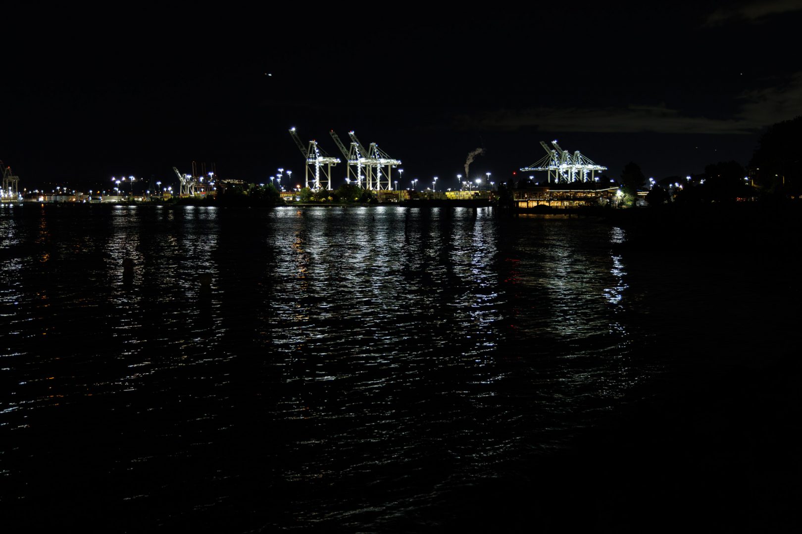 Même le port est très beau la nuit avec ses grues toutes éclairées.