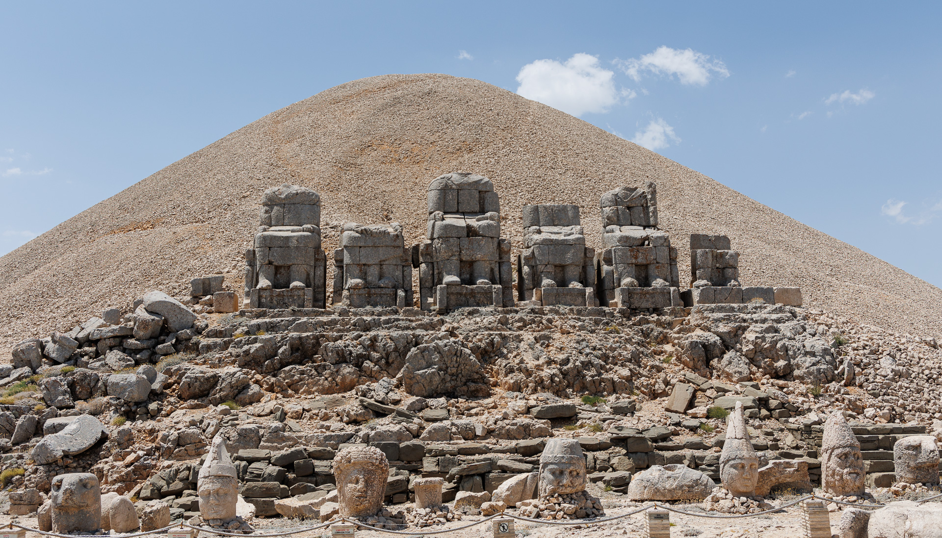 Cette montagne doit sa célébrité au monument funéraire du roi Antiochos Ier de Commagène qui couvre son sommet, composé d’un tumulus de 150 m de diamètre et de 50 m de hauteur, comprenant plusieurs ensembles de lieux de culte et de sculptures monumentales du 1er siècle avant JC, Nemrut Dağı a été inscrit en 1987 sur la liste du patrimoine mondial de l’UNESCO.