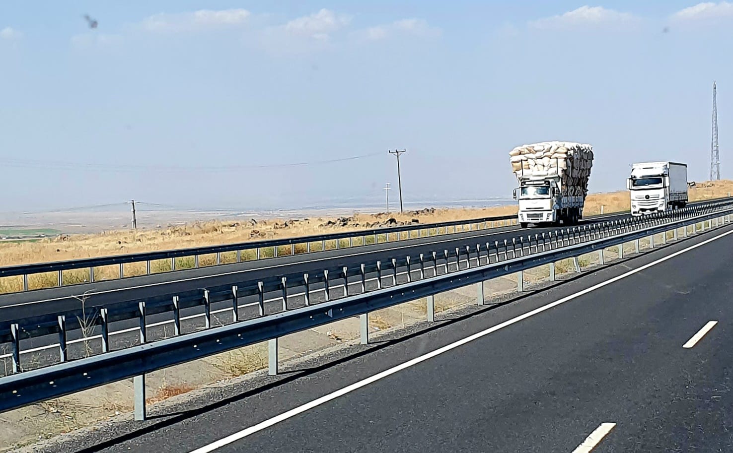 Une route droite interminable ! La ville de Diyarbakir (plus grande ville kurde de Turquie) au loin est à 30 kilomètres. Nous profiterons d’une station-service à l’entrée de la ville pour reprendre un peu de gasoil afin de rejoindre la Géorgie. Notre premier plein en Turquie était à 0,82€/l, il est maintenant à 1,23€/l 😱 L’augmentation doit permettre de financer les travaux de reconstruction suite au séisme de février 2023.