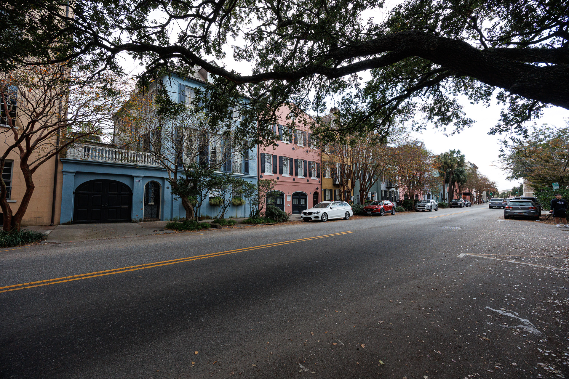 En 1931, Dorothy Porcher Legge et son mari ont acheté quelques  maisons sur East Bay Street. Afin de rendre le quartier plus agréable, ils ont décidé de peindre les maisons de cette rangée d’une jolie teinte de rose pastel. Au fil du temps, d’autres résidents de la rue ont également commencé à peindre leurs maisons dans différentes couleurs pastel… Le quartier de Raibow Row est le quartier le plus photographié de Charleston, on se demande bien pourquoi 😉 !