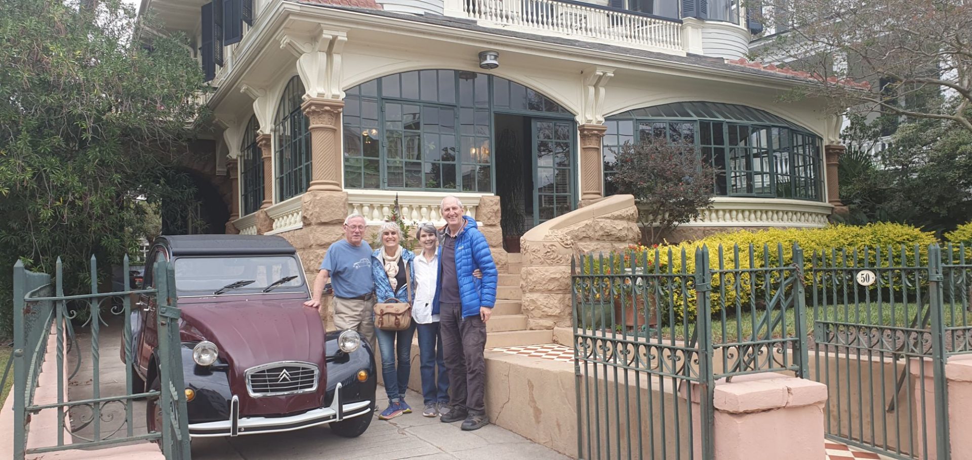 En passant devant cette jolie demeure, nous remarquons une 2CV. Au moment où on s’apprête à faire la photo, la propriétaire engage la conversation et nous invite chez eux. Nous passerons un moment très agréable en la compagnie d’Elisabeth et James… Encore des amoureux de la France 🤩 où ils viennent régulièrement passés quelques jours !