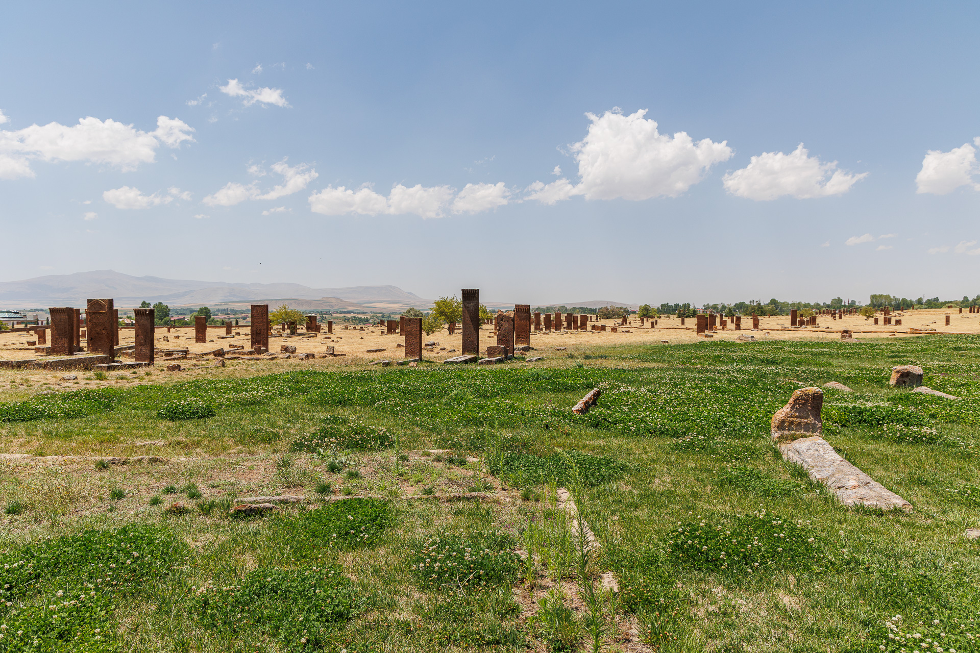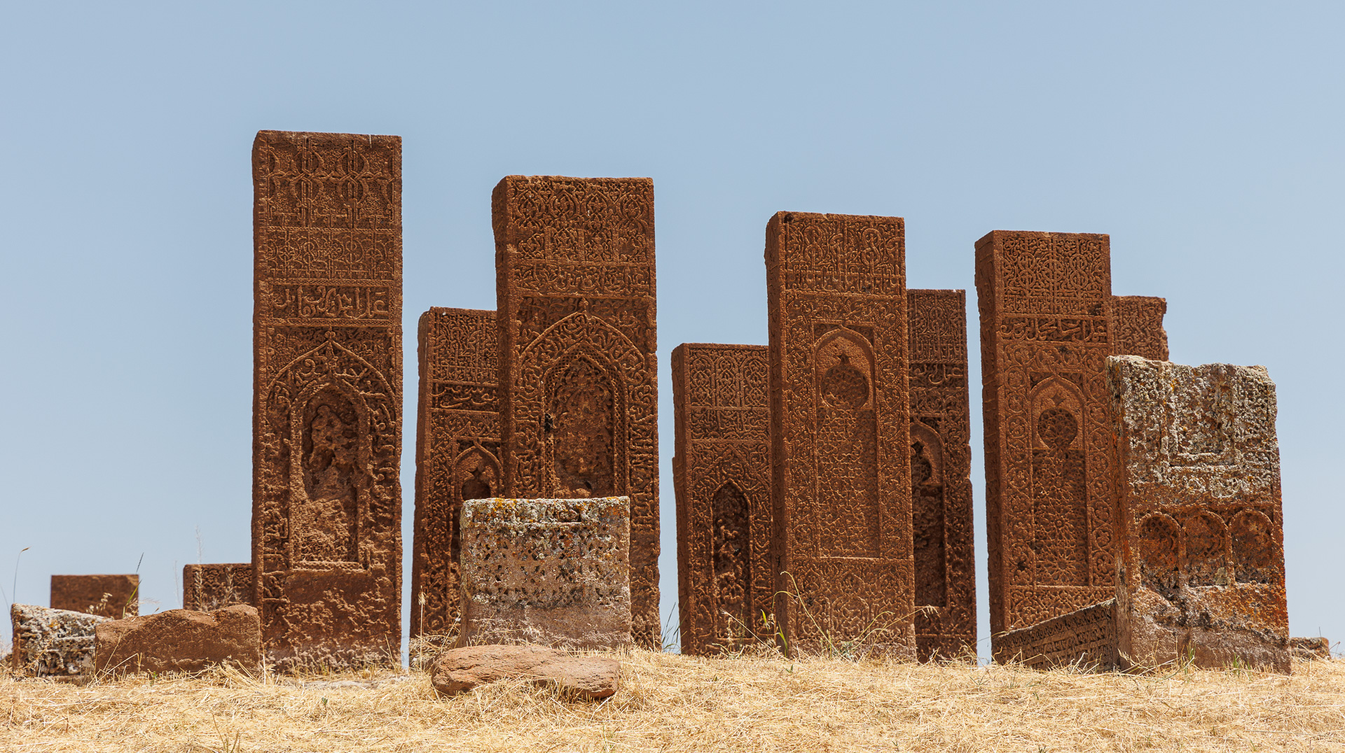 Nous arrivons ensuite au cimetière seldjoukide d’Ahlat. Ahlat est la porte d’entrée principale de l’Anatolie. Elle est devenue l’un des trois centres scientifiques et artistiques du monde islamique avec Belh (Afghanistan) et Boukhara (Ouzbékistan).