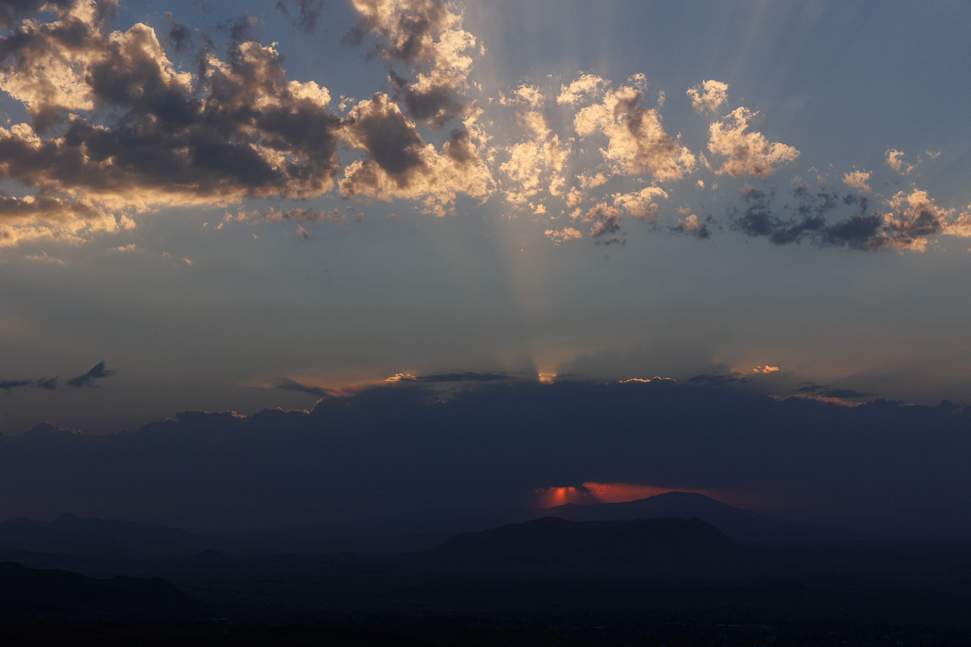Nous serons très bien ici, à l’écart de la route, sur les pentes extérieures du volcan. Une remontée mécanique est en place sur ce versant… Il fait tellement chaud que nous avons du mal à imaginer que l’on puisse faire du ski ici en hiver 😁.