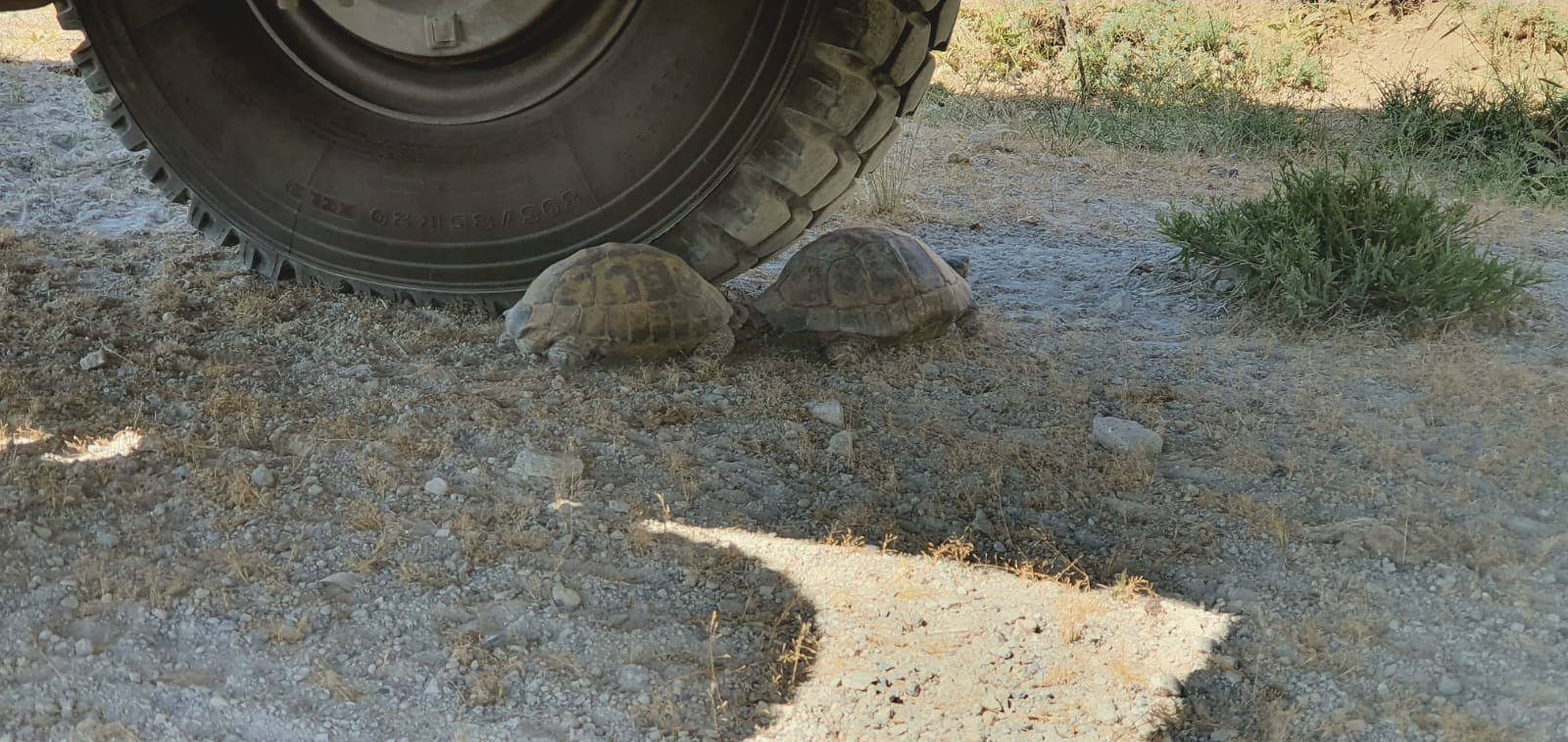 Le lendemain matin, nous avons été réveillés par un bruit de pierres cassées près du camion. Étonnant car notre bivouac est assez isolé. Petit coup d’œil à l’extérieur du camion et la réponse est là :