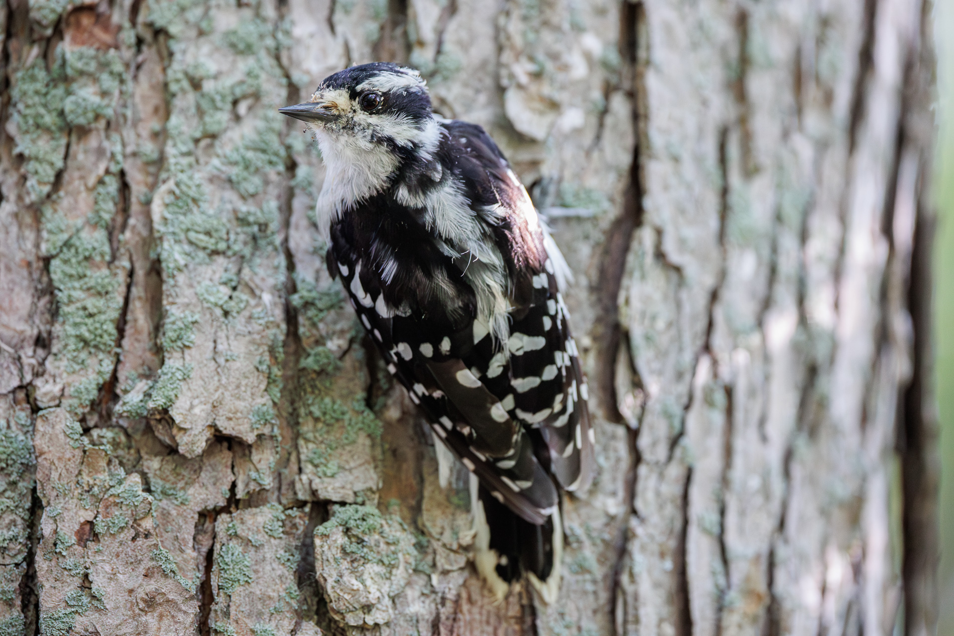 et un pic épeichette femelle (seuls les mâles ont une calotte rouge) en plein casse-croûte.