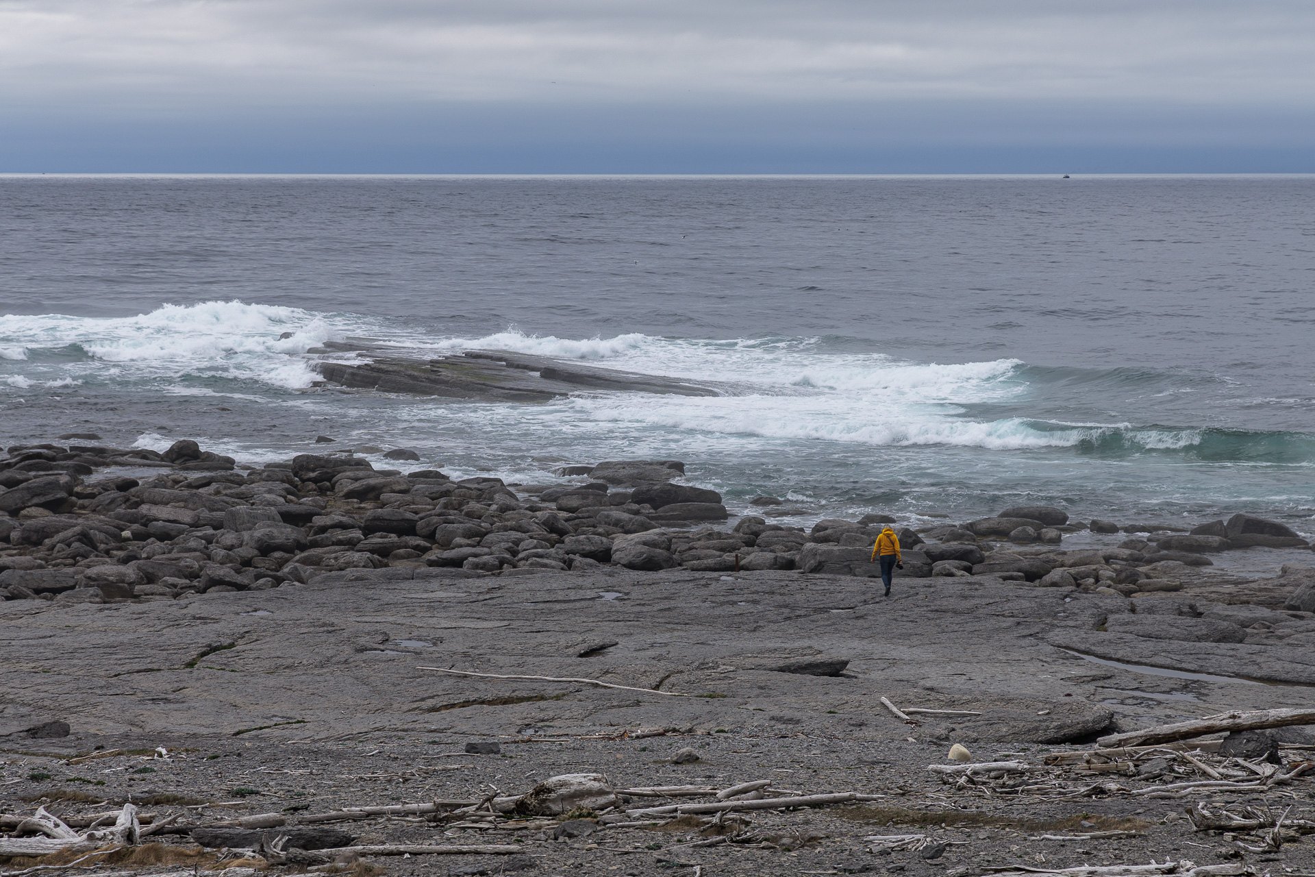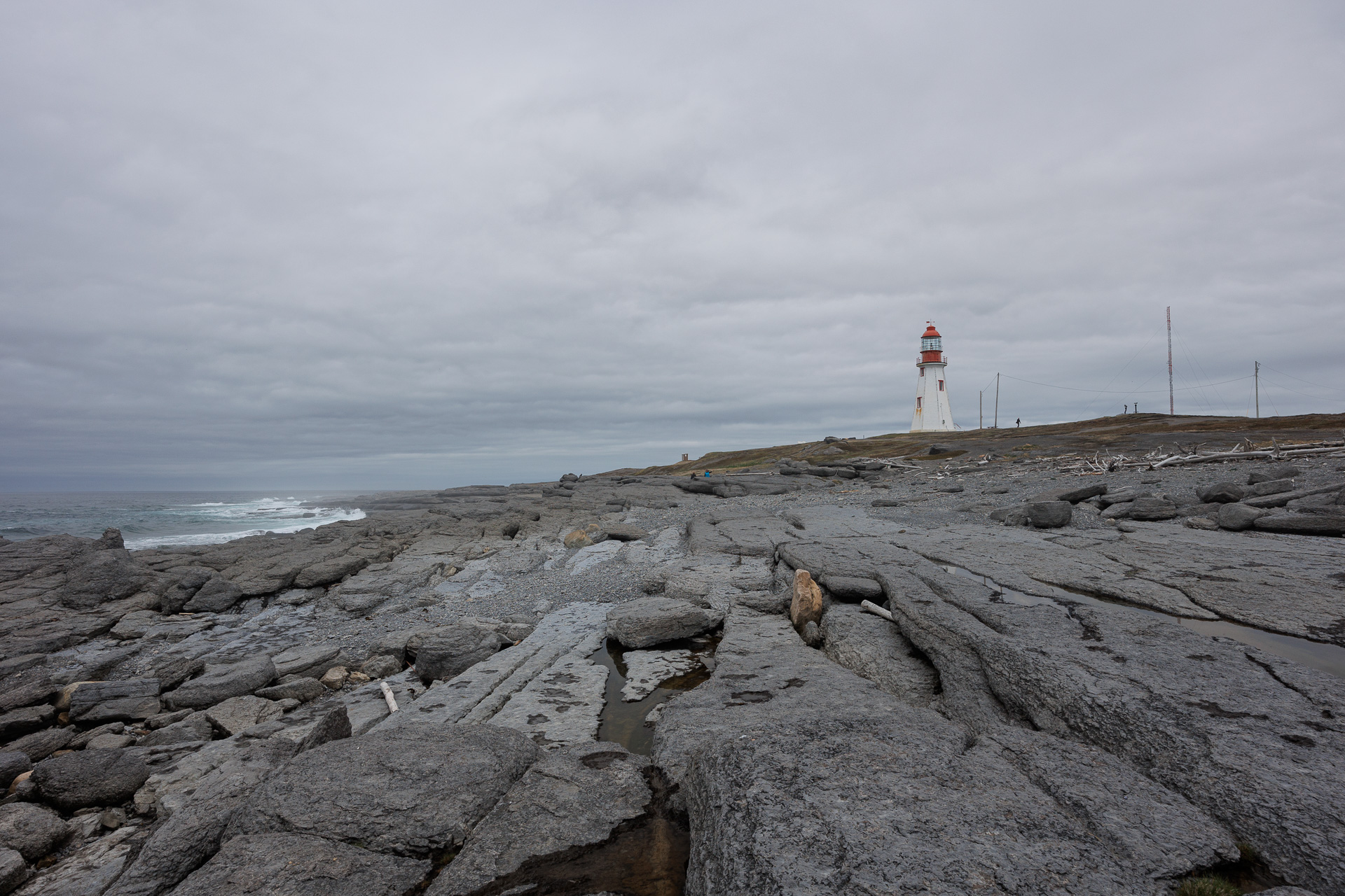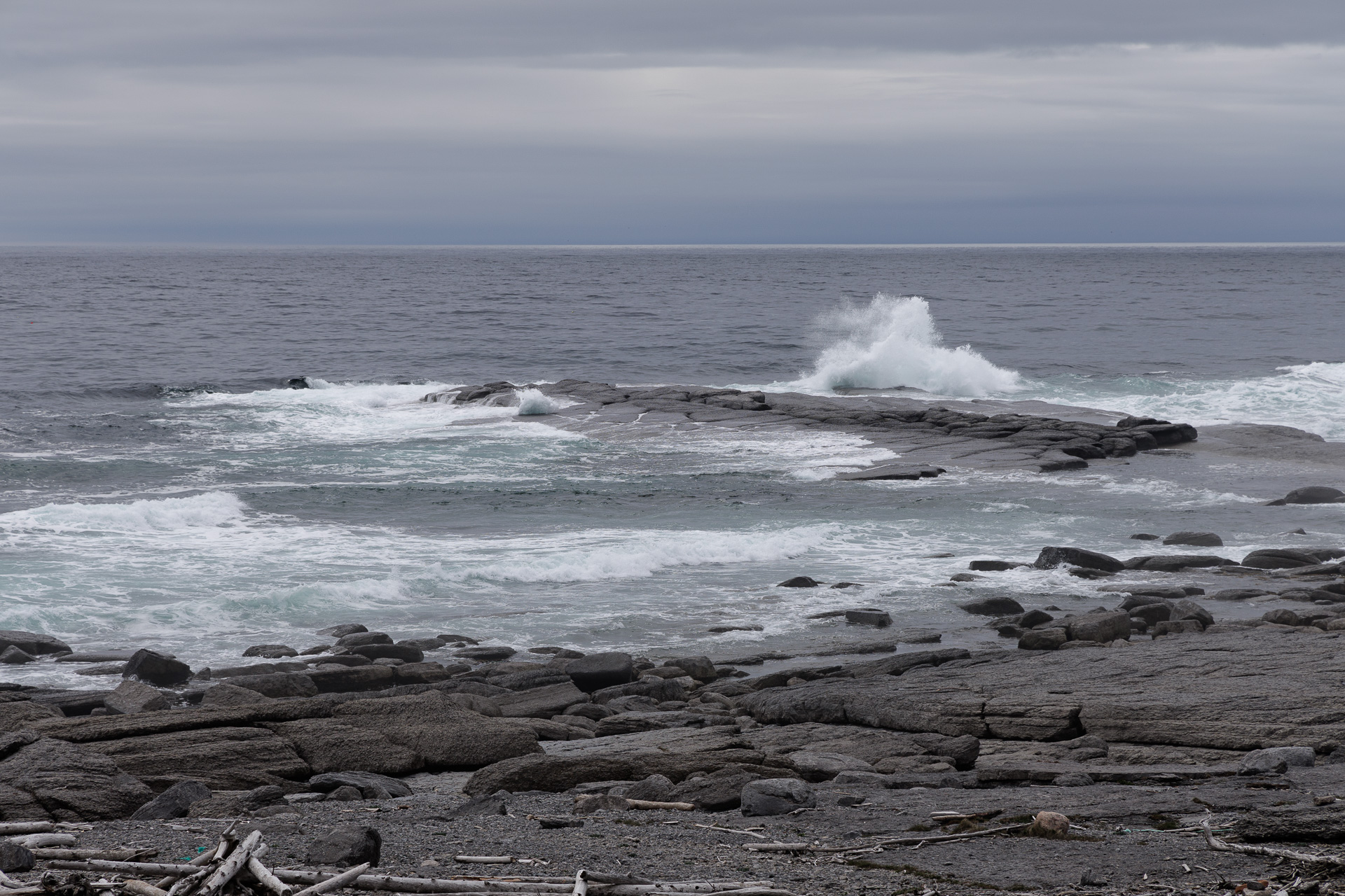 Sur la route, nous nous arrêtons à Port-aux-Choix, lieu historique national. 800 ans avant notre ère vivaient ici des peuples autochtones dont le peuple Dorset, antérieur aux Inuits. Ils chassaient les phoques tant pour leur viande que pour leur peau, afin de confectionner des abris et des vêtements. On en saura pas plus car le site d’information n’ouvre que le 1er juin. Nous poursuivrons jusqu’au phare où nous profiterons du site pour casser une petite croûte.