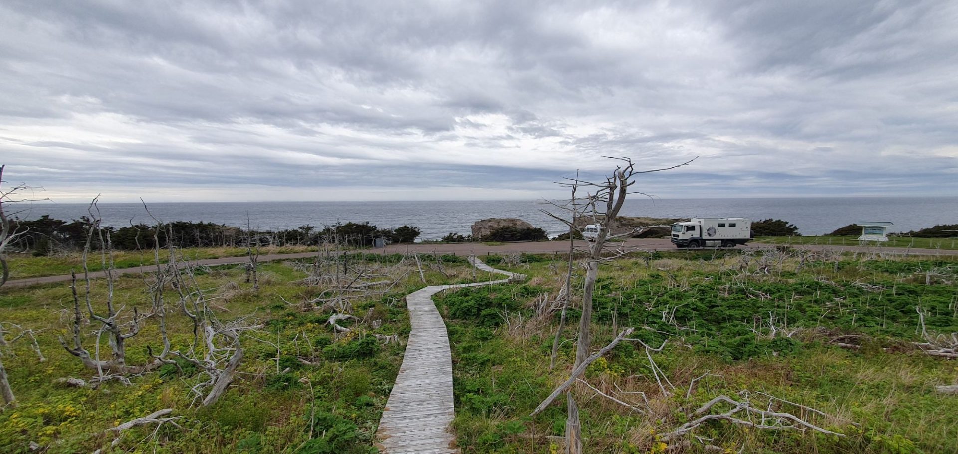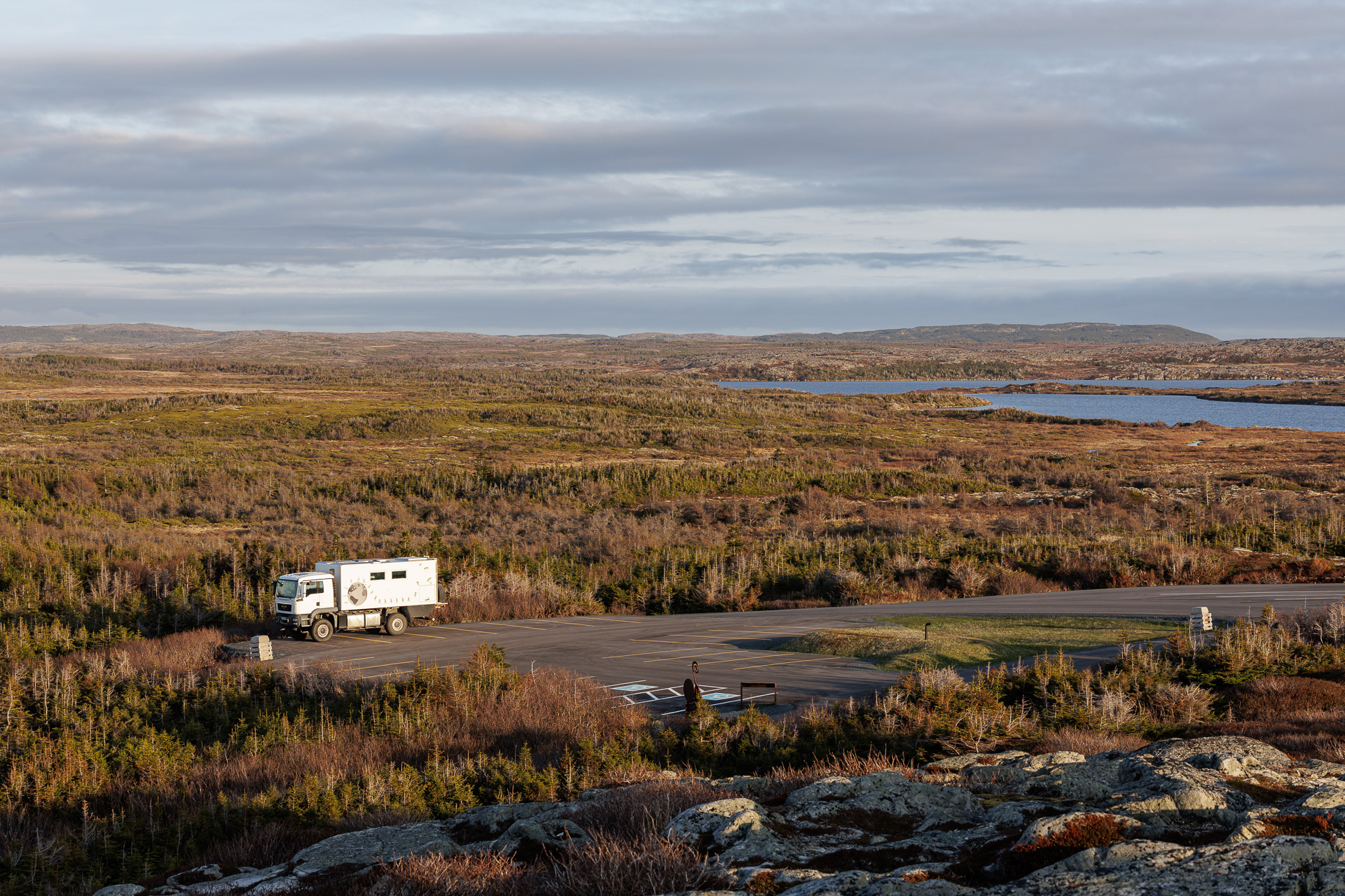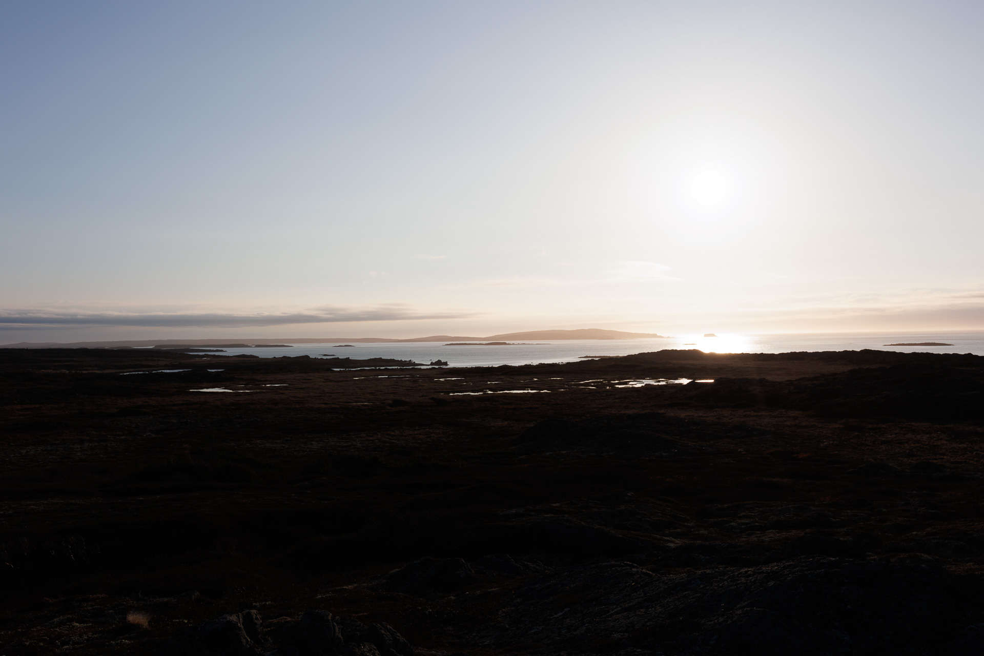 Nous bivouaquons sur le parking du site historique de l’Anse aux Meadows. Ce lieu historique national abrite les ruines exhumées d’une colonie viking datant du 11ème siècle. Le site, unique en Amérique du Nord, est inscrit au Patrimoine mondial de l’UNESCO depuis 1978. Il fut le premier site culturel à figurer sur la liste du Patrimoine mondial de l’UNESCO. De la colline, nous profitons d’un beau coucher de soleil.