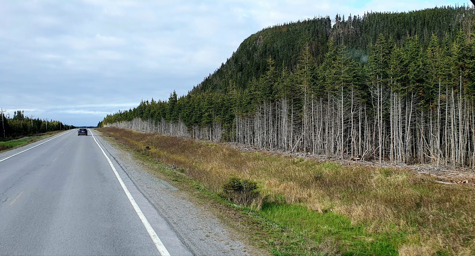 Tous les conifères le long de la route nous semblent bien mal en point. Réflexion faite, on pense que la raison est double.