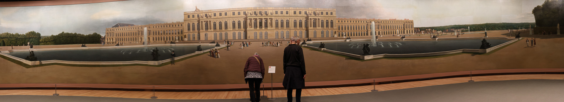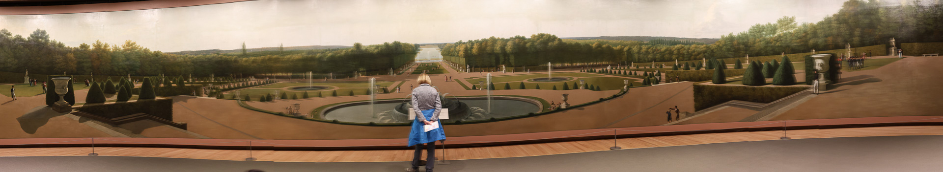 Une fresque panoramique du château de Versailles et des jardins réalisée en 1818-1819 par John Vanderlyn. Les 2 toiles, disposées dans une immense pièce circulaire, mesurent 3,66 mètres de haut et plus de 50 mètres de long !