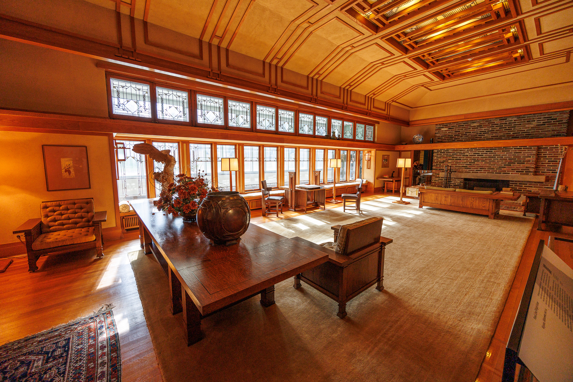 Reconstitution d’un salon réalisé par le célèbre architecte américain Franck Lloyd Wright (1867-1959) pour l’avocat et homme d’affaires Francis W. Little en 1903. En 1991, il a été reconnu par l’Institut des architectes américains comme le plus grand architecte américain de l’histoire.