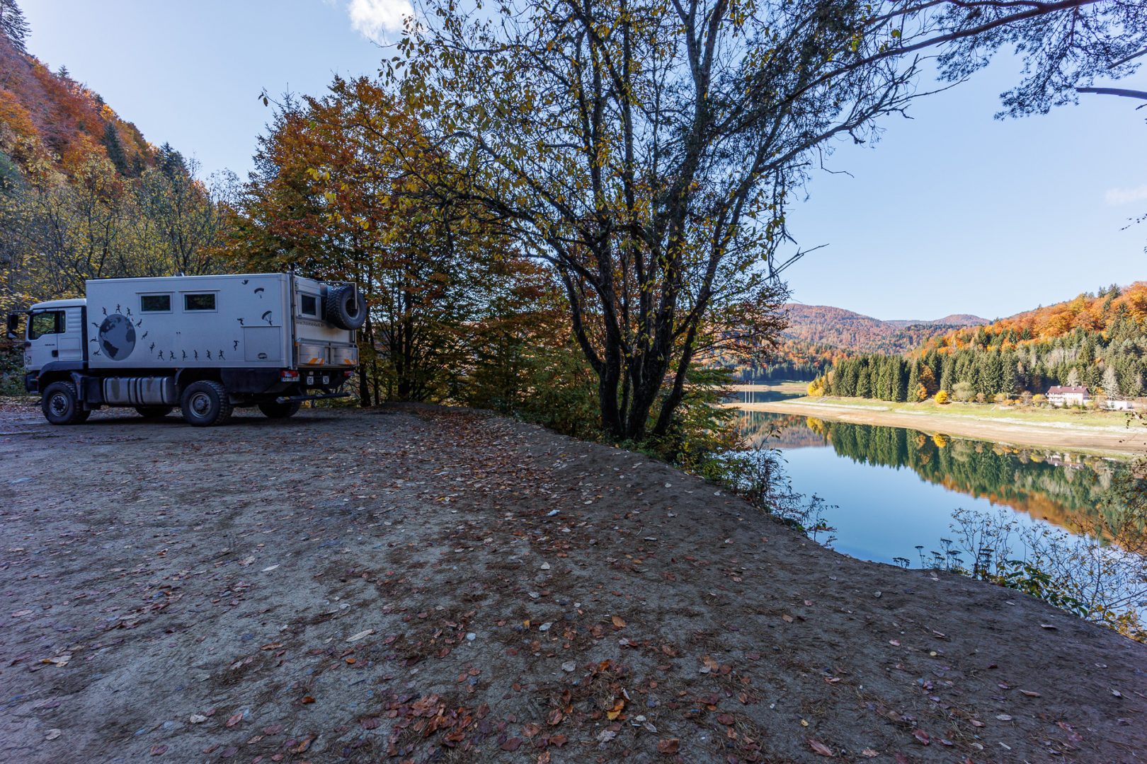 168423 km : Nous quittons ce matin notre joli et calme bivouac au bord du lac Vidraru.