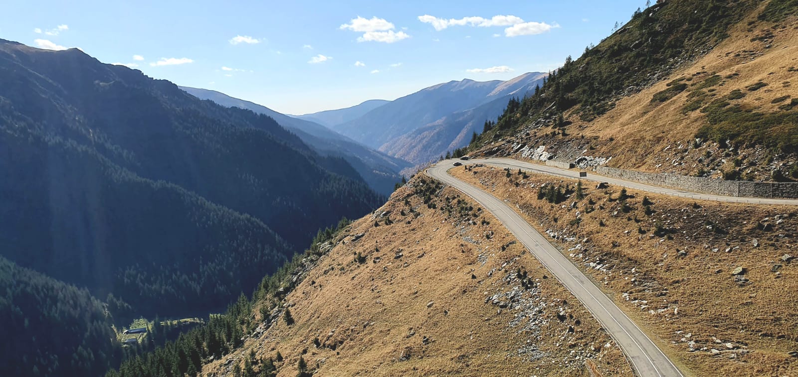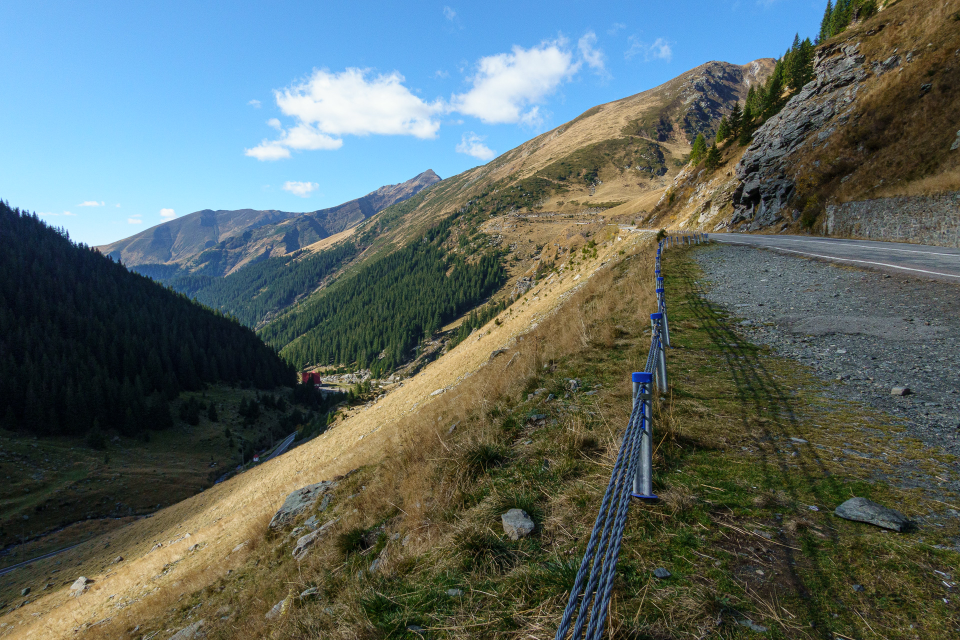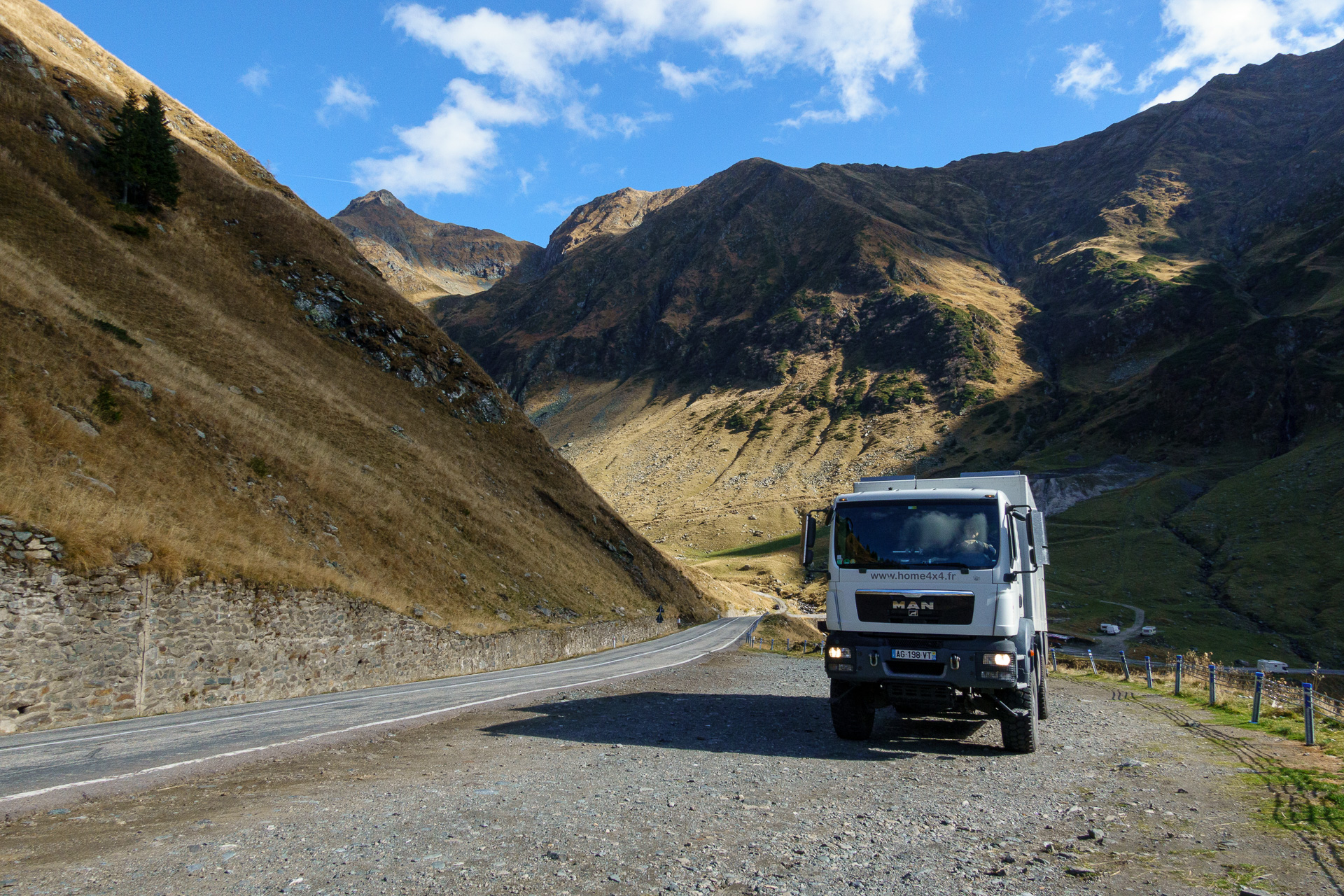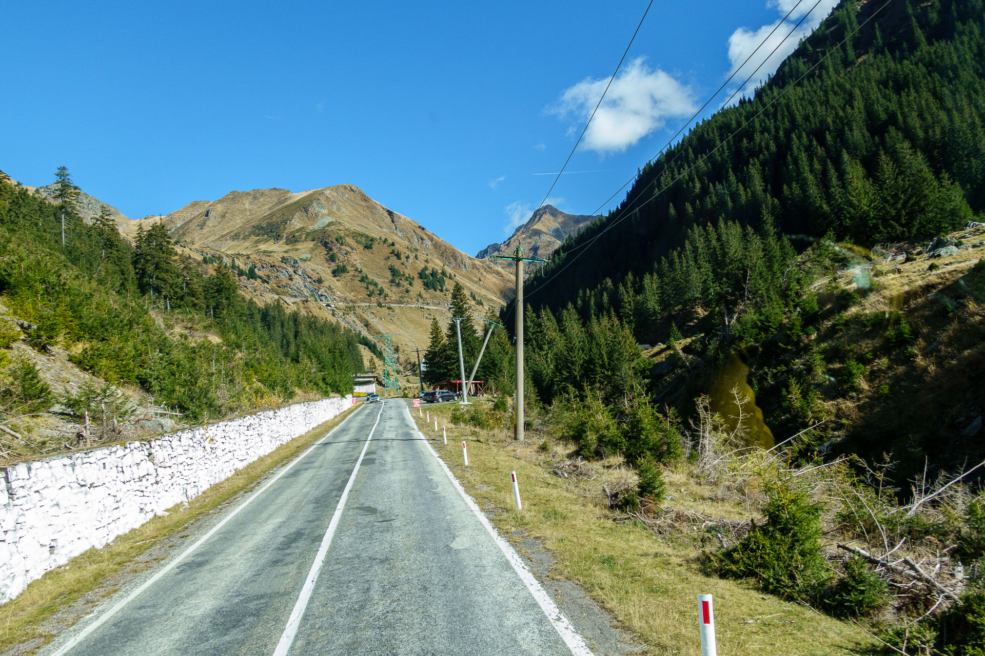 Nous empruntons la route Transfăgărașan (dénomination officielle DN7c – Drumul Național 7C) d’environ 100 km de long, traversant les Carpates entre Curtea de Argeș au sud et la Transylvanie au nord. C’est l’une des plus hautes routes et la plus haute route bitumée de Roumanie. Elle traverse donc les monts Făgăraș, d’où son nom.