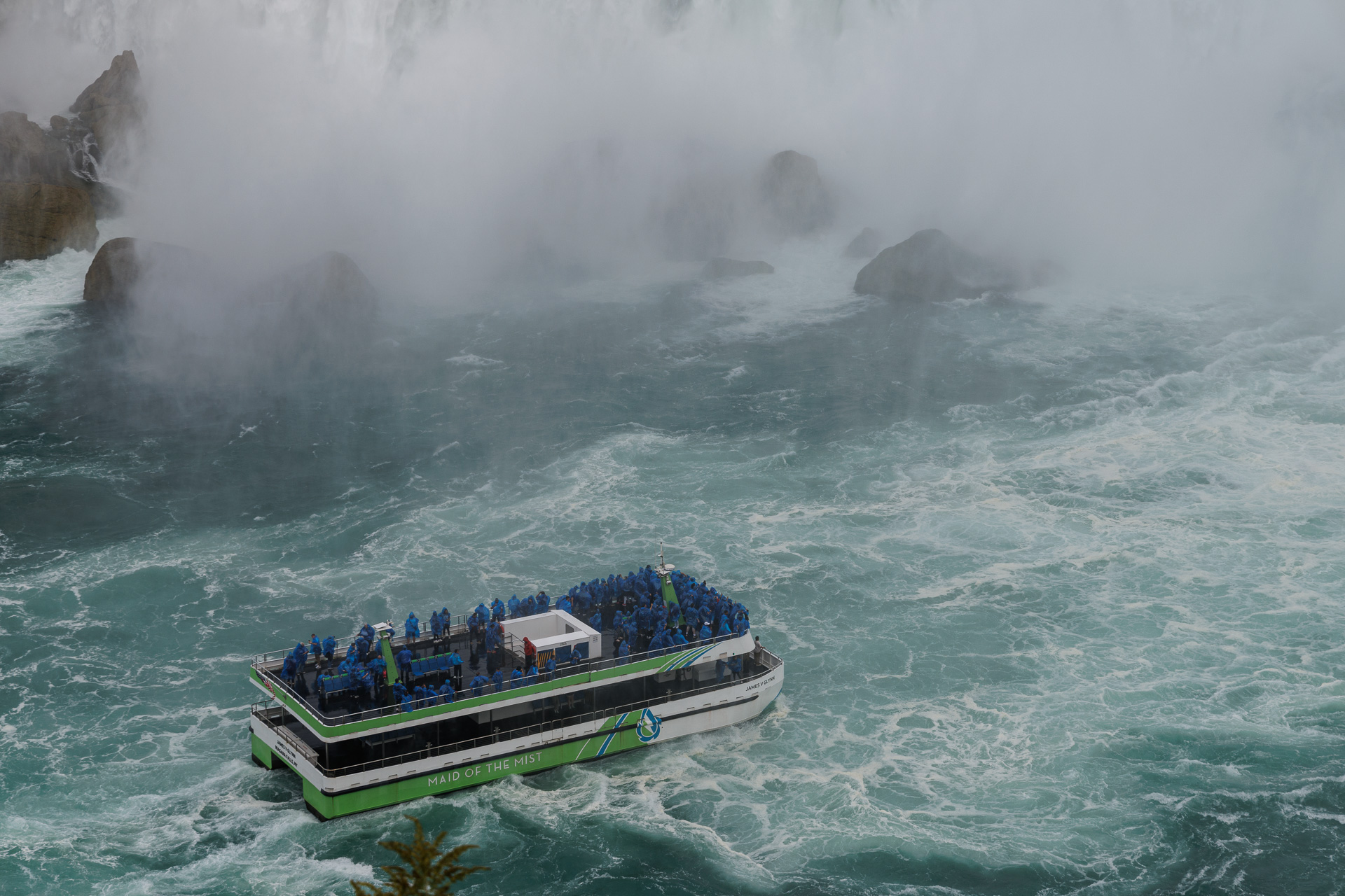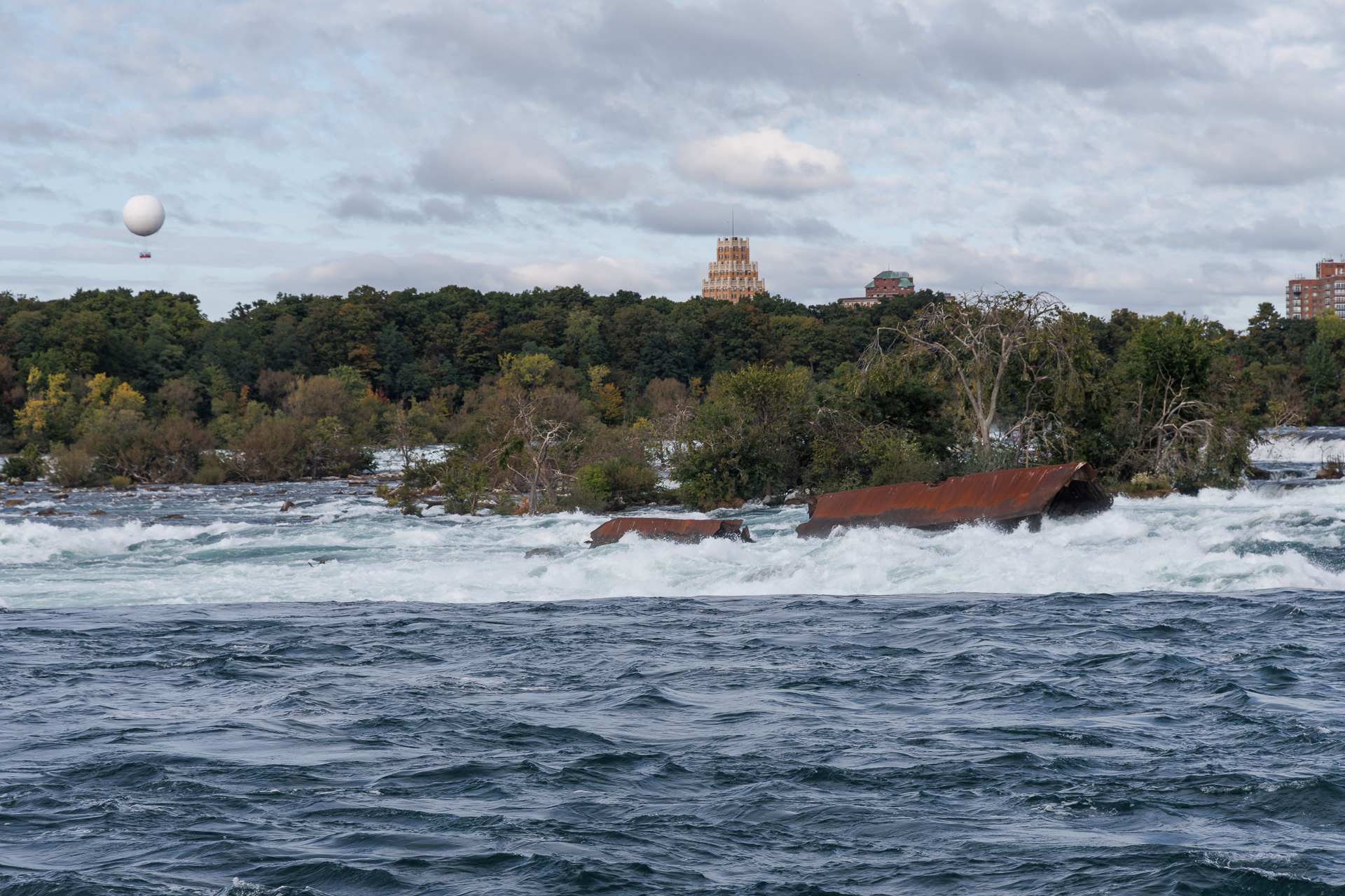 Au milieu de la rivière Niagara, nous apercevons une forme bizarre. Ce sont les vestiges d’une barge qui fut emportée après rupture de ses attaches, avec ses 2 occupants à bord, le 6 août 1918. Ce fut un sauvetage périlleux car la vitesse du courant et la proximité des chutes complexifia fortement l’opération mais… les 2 occupants furent sauvés !