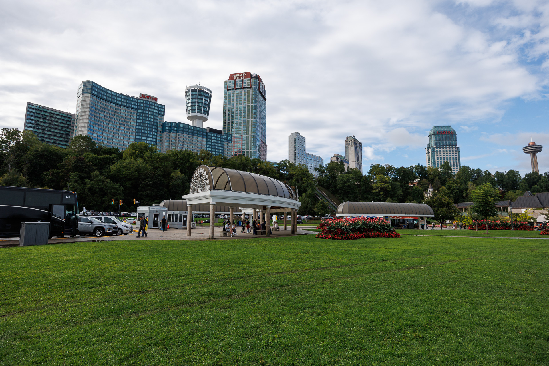 Un aperçu de la ville de Niagara Falls côté canadien. Ce sont majoritairement des hôtels. Nous irons visiter la ville demain. Nous consacrons notre 1ère visite aux chutes du Niagara elles-mêmes !