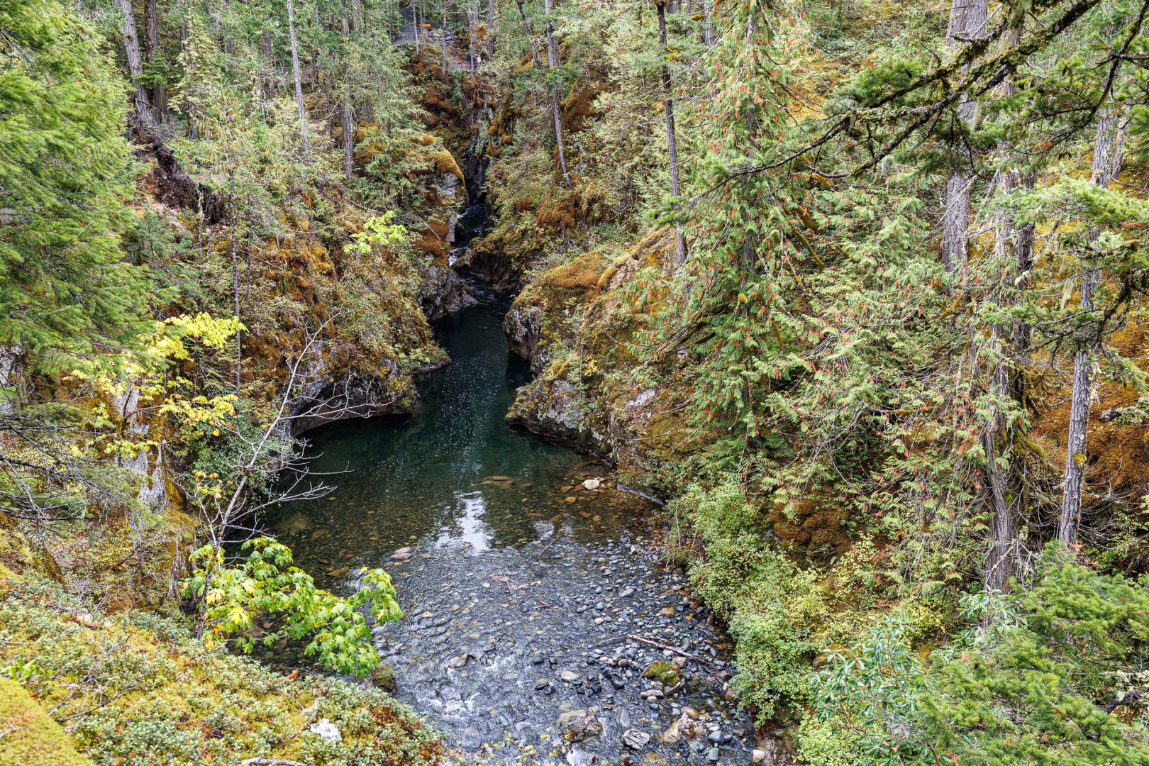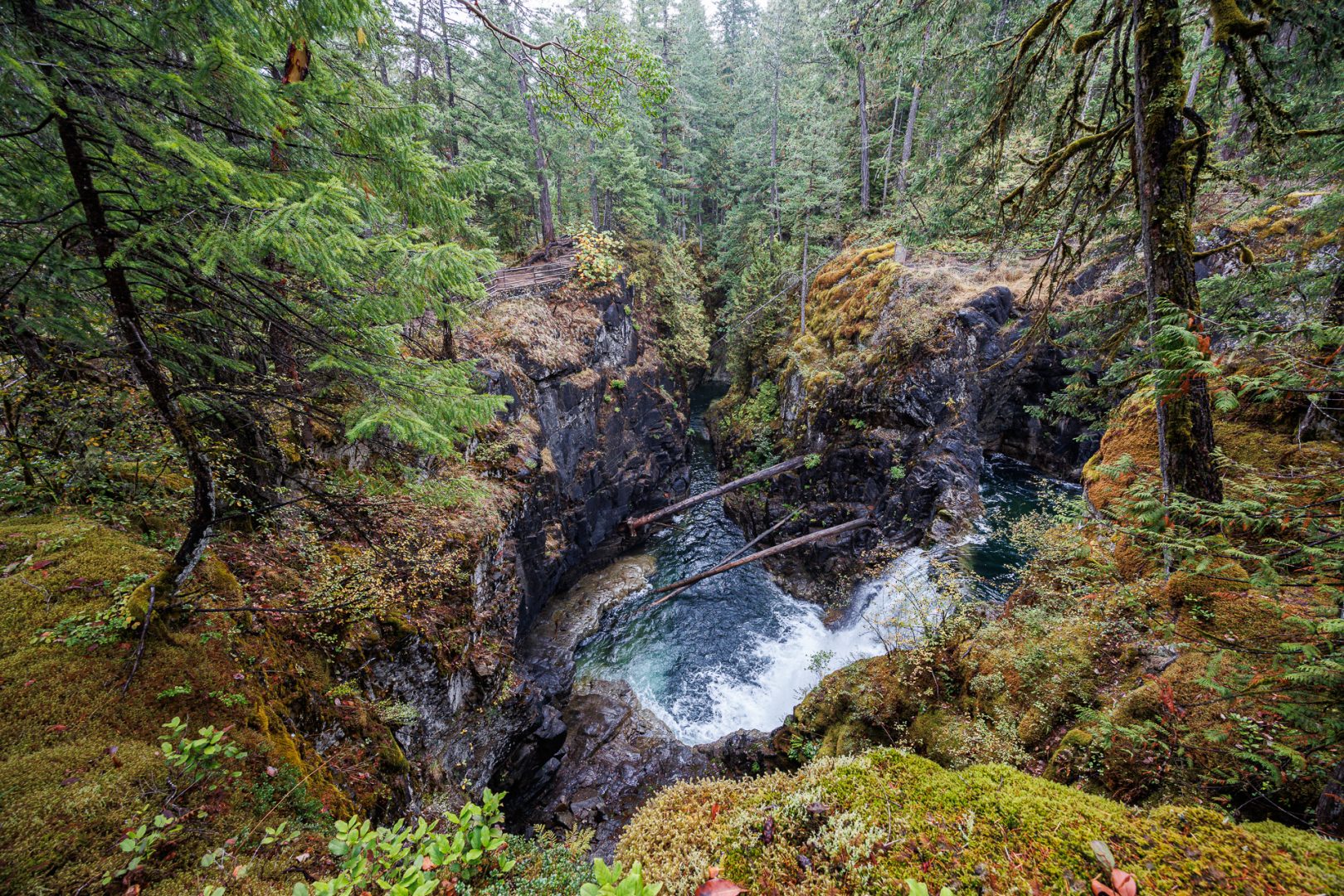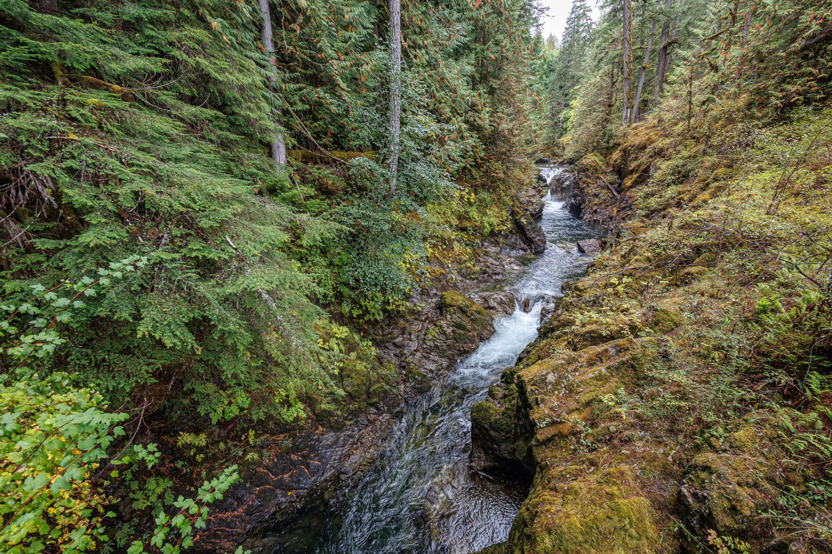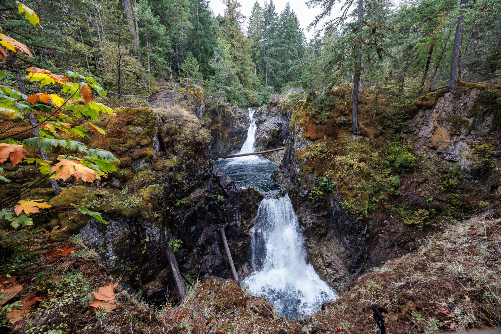 215600 km : Ce matin, nous partons en direction du parc provincial Little Qualicum Falls. Le parc a été créé en 1940 pour protéger la forêt ancienne de sapins de Douglas. C’est parti pour pour une petite boucle de 6 km qui offre de jolis points de vue sur les chutes d’eau.