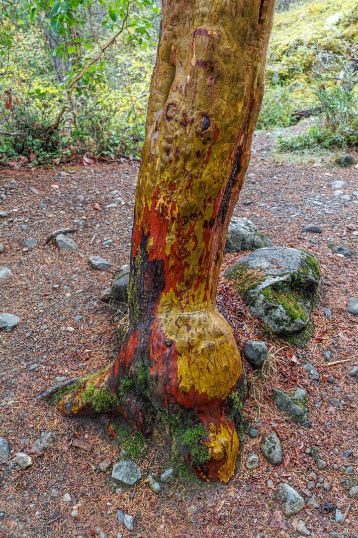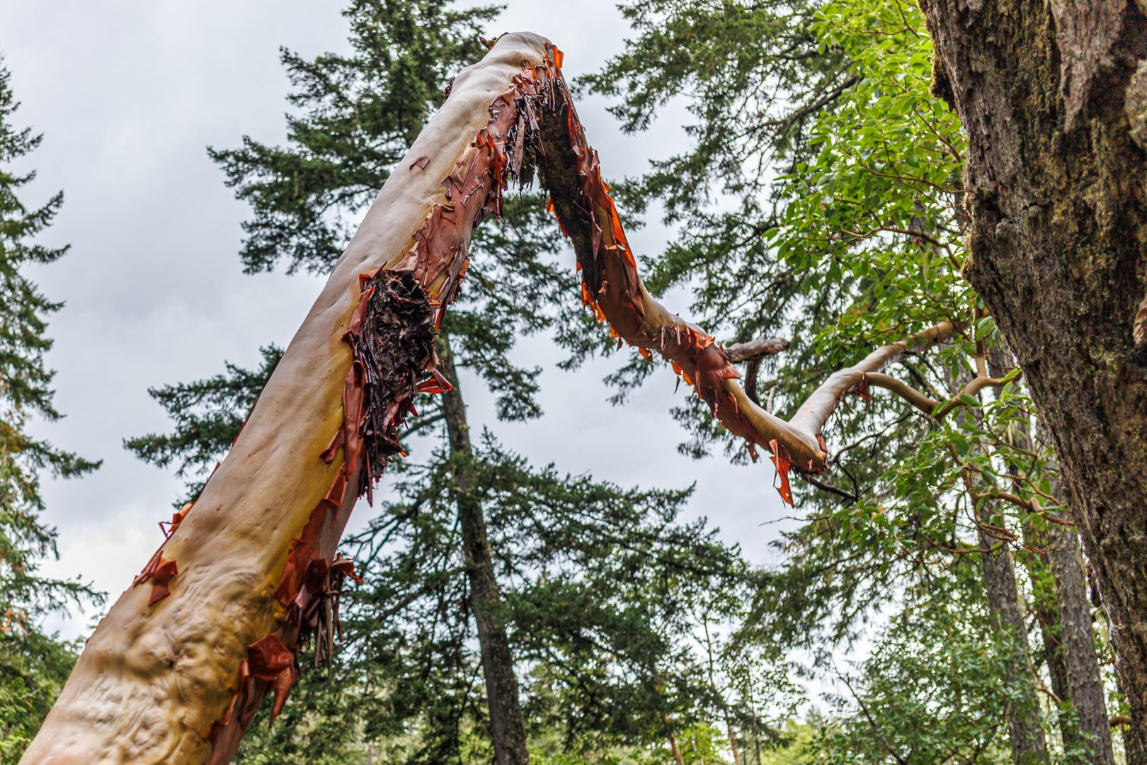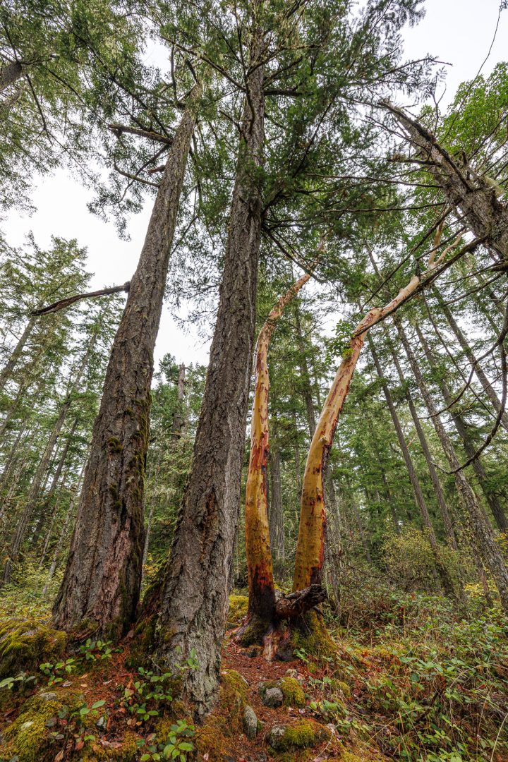 Cette balade à travers cette forêt ancienne nous fait découvrir des arbres (arbousier d’Amérique) aux couleurs surprenantes et