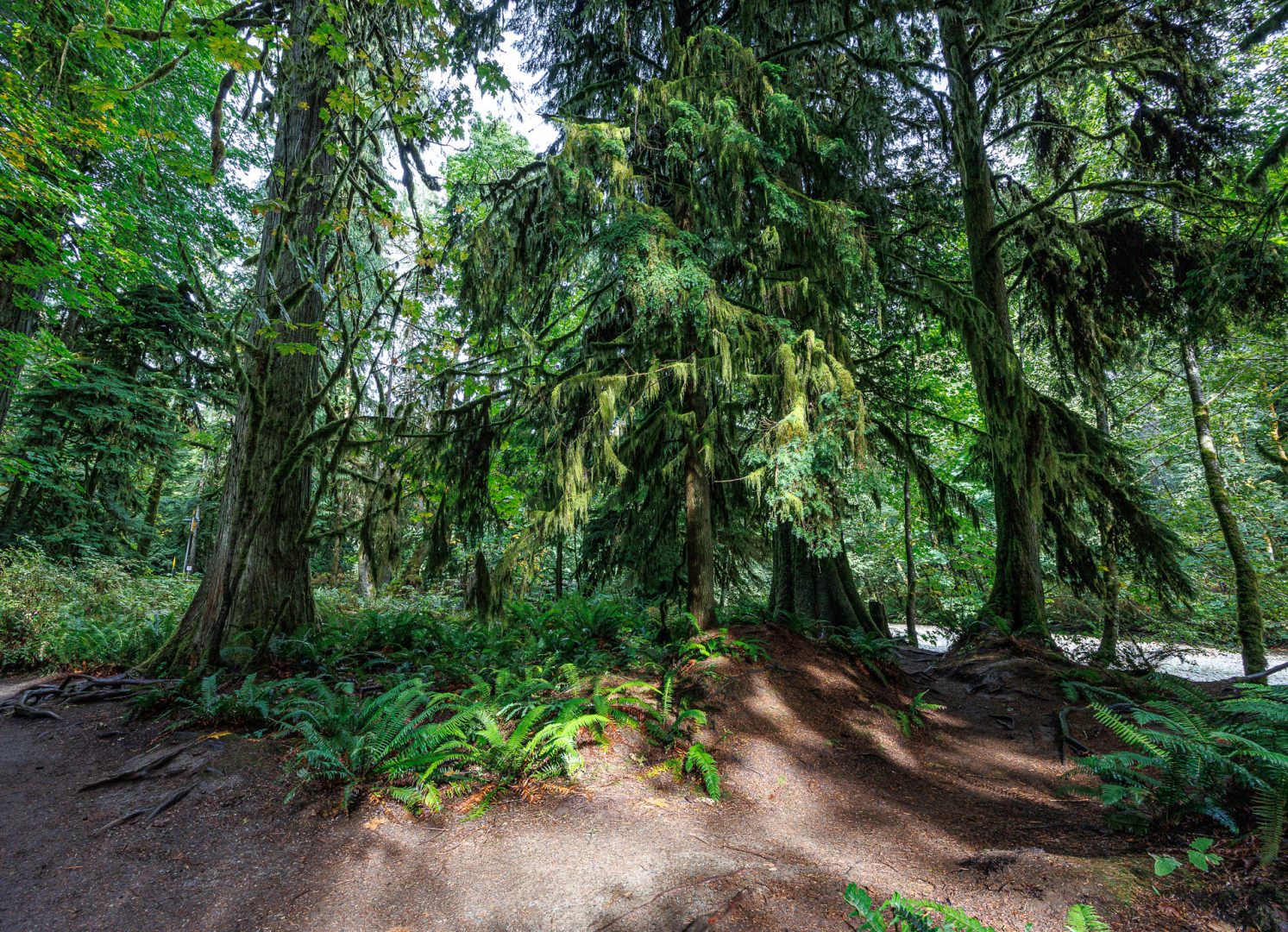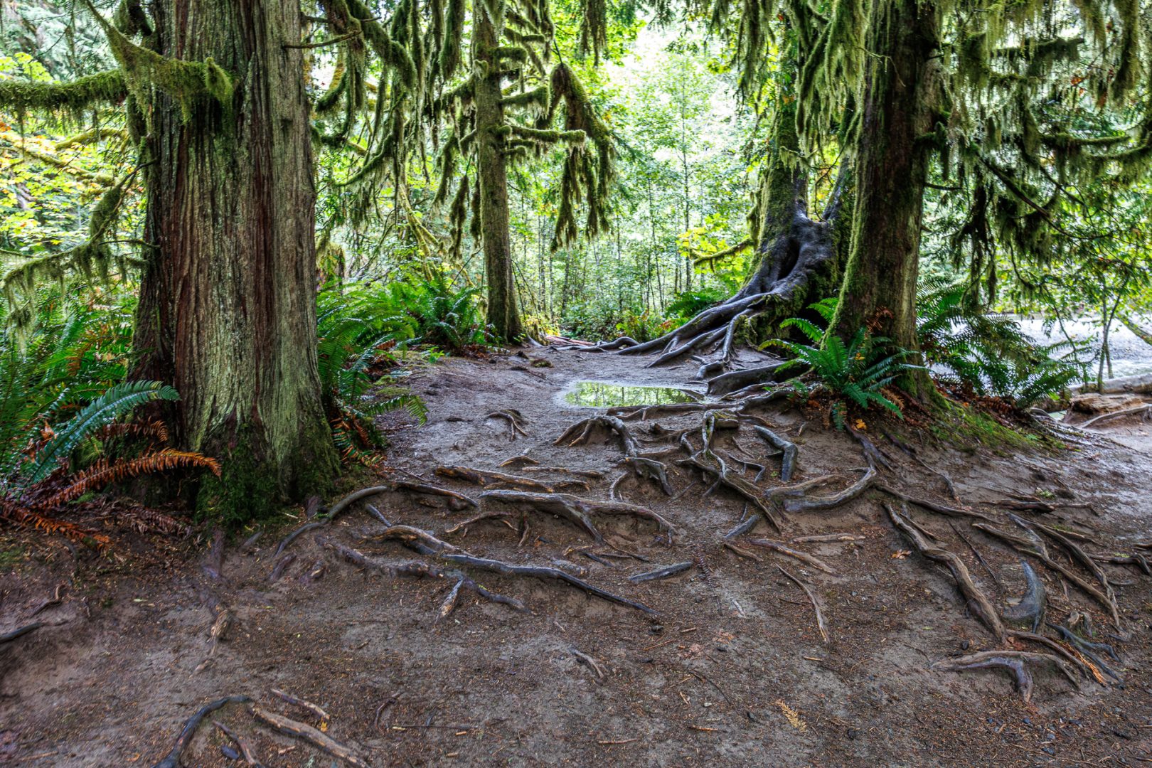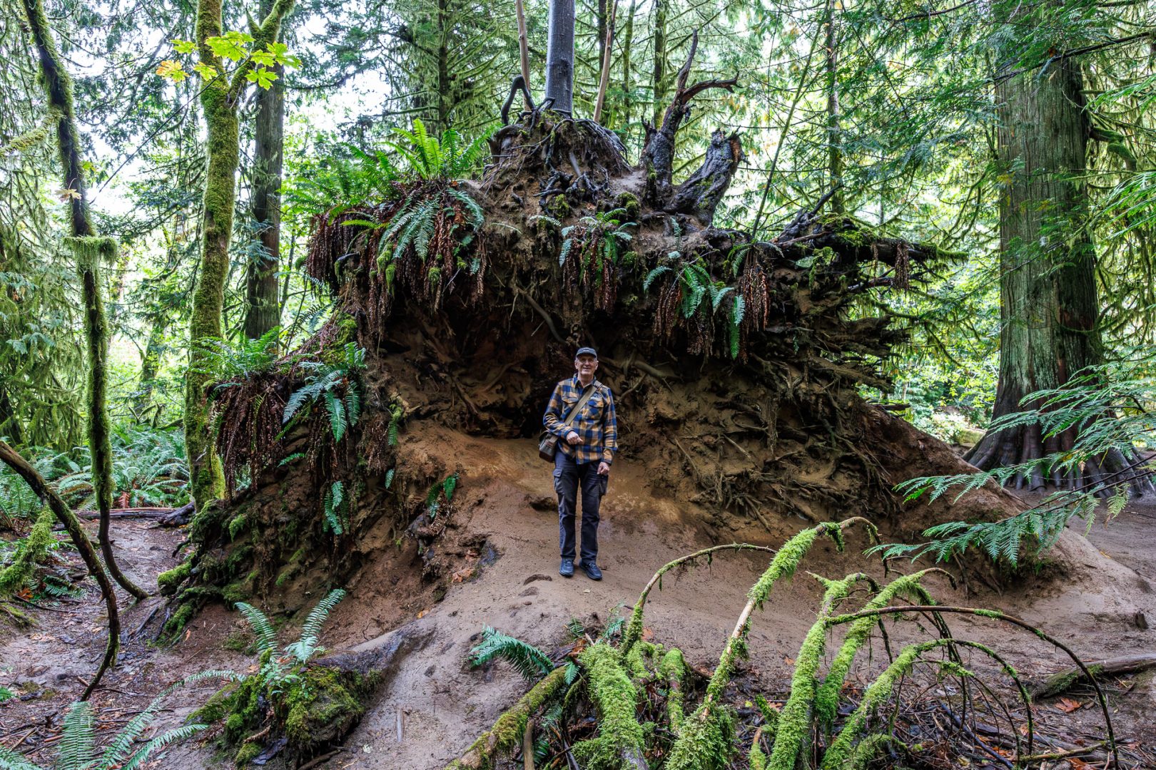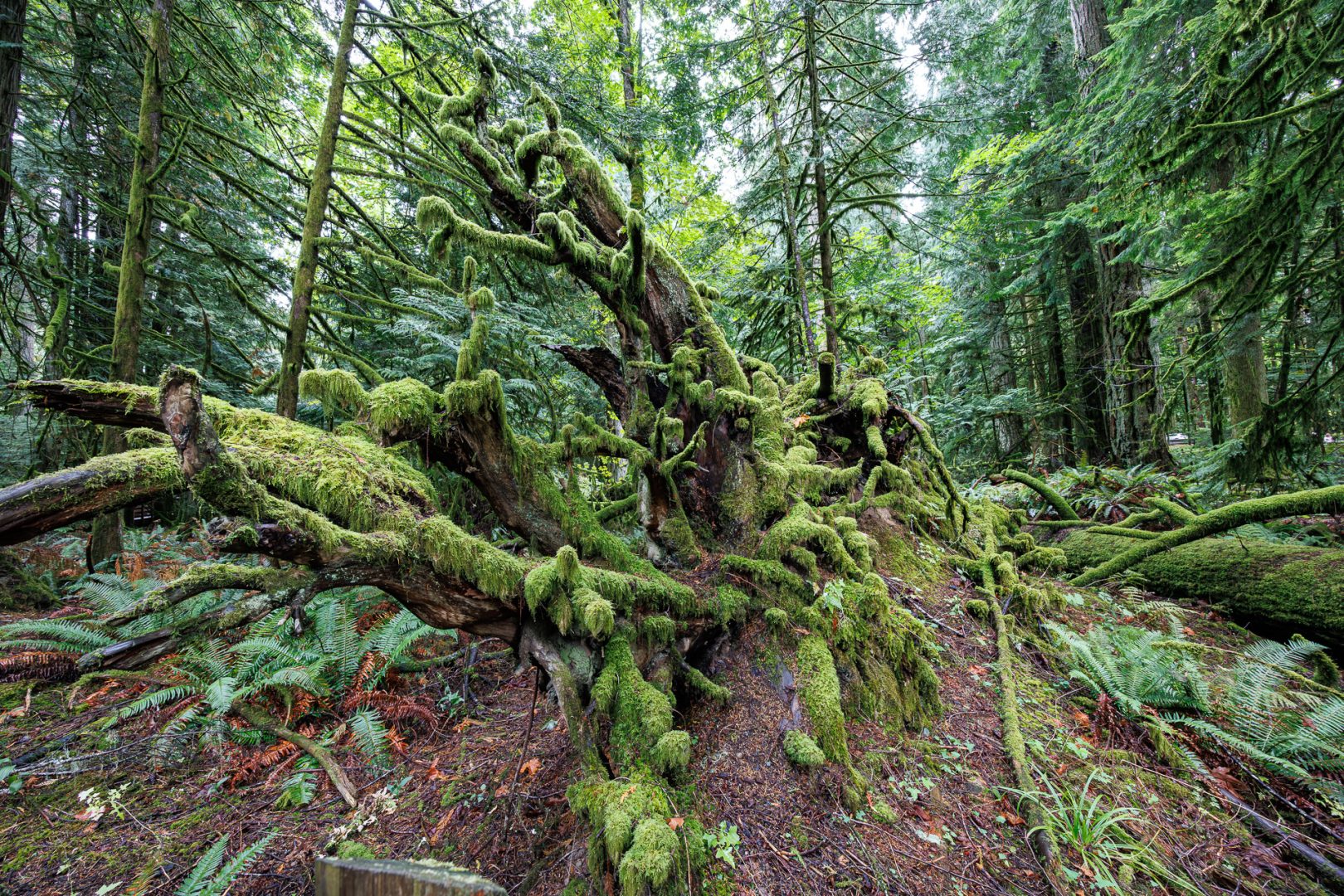 Cathedral Grove se trouve dans le parc provincial MacMillan. Sur 157 hectares, Cathedral Grove abrite un célèbre peuplement de sapins de Douglas (du nom du célèbre botaniste écossais David Douglas (1799-1834)), des cèdres rouges de l’Ouest (ou thuya géant) et des érables à grandes feuilles. Nous sommes accueillis par un cèdre rouge de l’Ouest… Impressionnant 😲 !