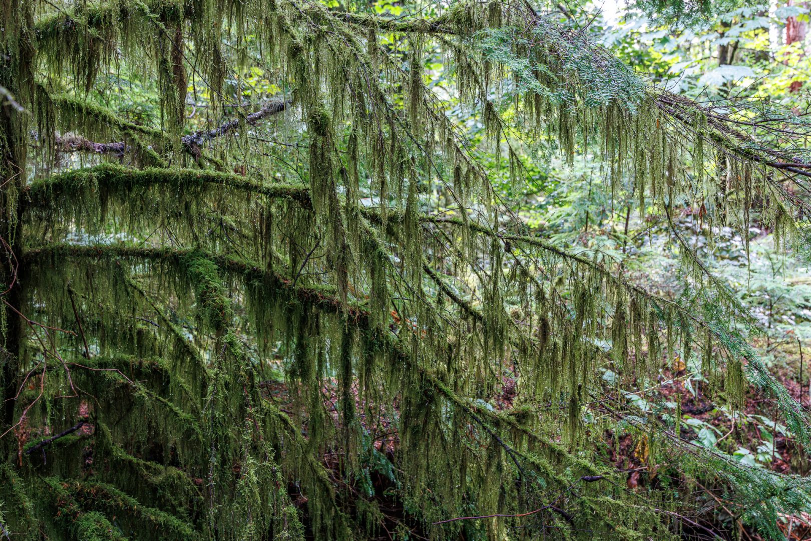 La mousse est omniprésente et recouvre les arbres et les branches comme du velours
