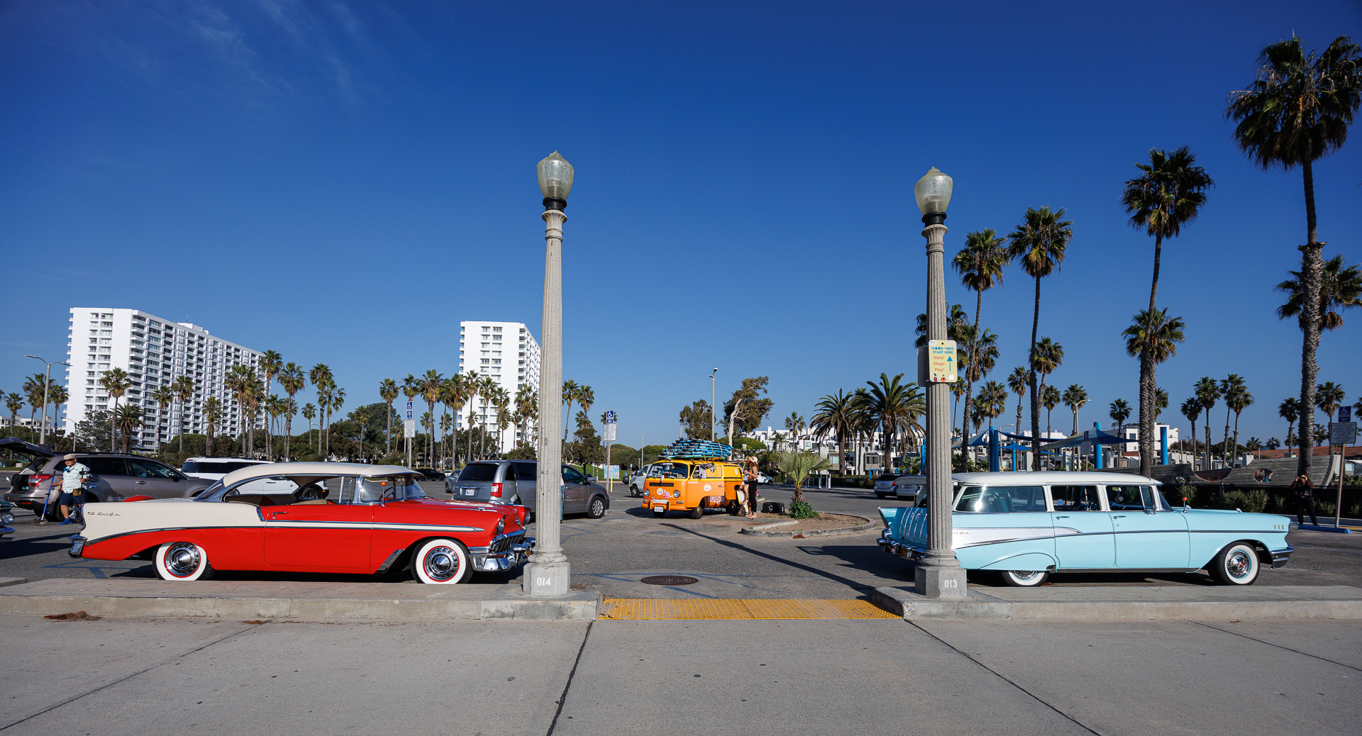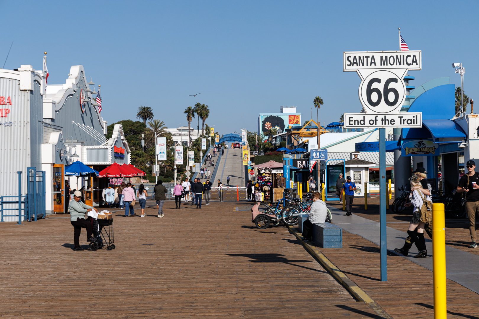 C’est aussi à cet endroit que se termine la mythique route 66. La Route 66, créée en 1926, fut prolongée jusqu’à Santa Monica en 1935, reliant le Midwest au Pacifique et symbolisant le rêve américain et la migration vers l’ouest. Pour mémoire sa longueur totale est d’environ 3670 kilomètres.