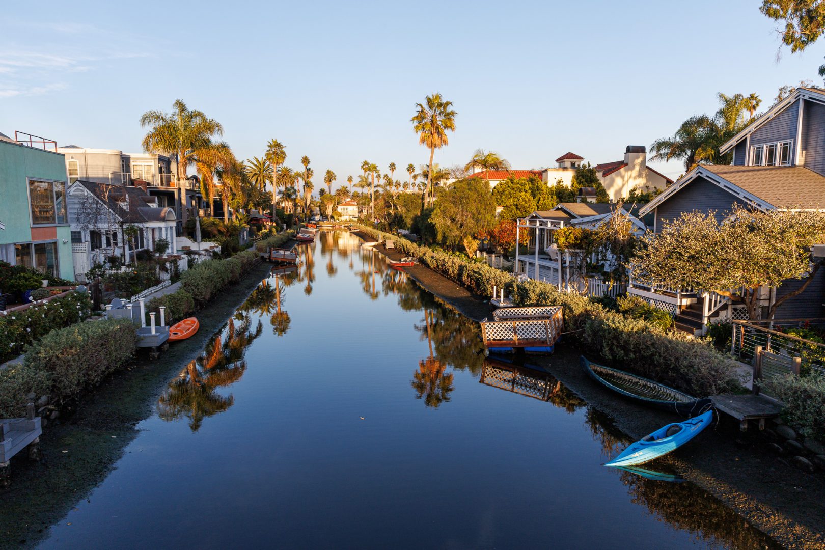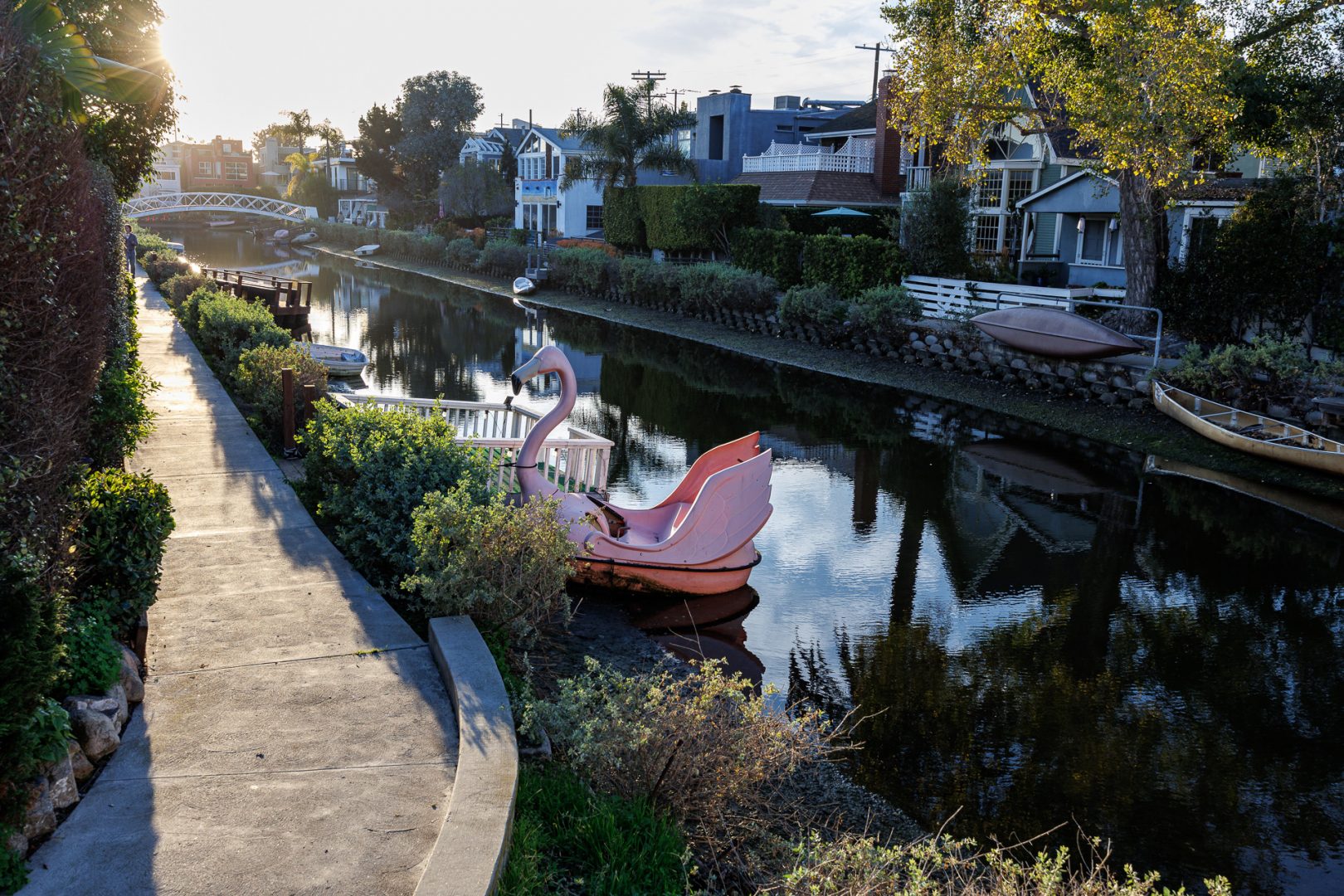 Le quartier historique du canal de Venice a été créé et construit en 1905 par le promoteur Abbot Kinney (1850-1920) dans le cadre de sa Venise de l’Amérique. Abbot Kinney a cherché à recréer l’apparence et la sensation de Venise dans la banlieue résidentielle de Los Angeles. Le quartier est surprenant et original. Sept canaux parcourent le quartier : le canal Aldebaran, le canal Altair, le canal Cabrillo, le canal Coral, le Grand Canal, le canal Lion et le canal Vénus. Des petits chemins permettent de déambuler le long des canaux sur chaque rive. Le quartier résidentiel entourant les canaux a été inscrit au registre national des lieux historiques en 1982.