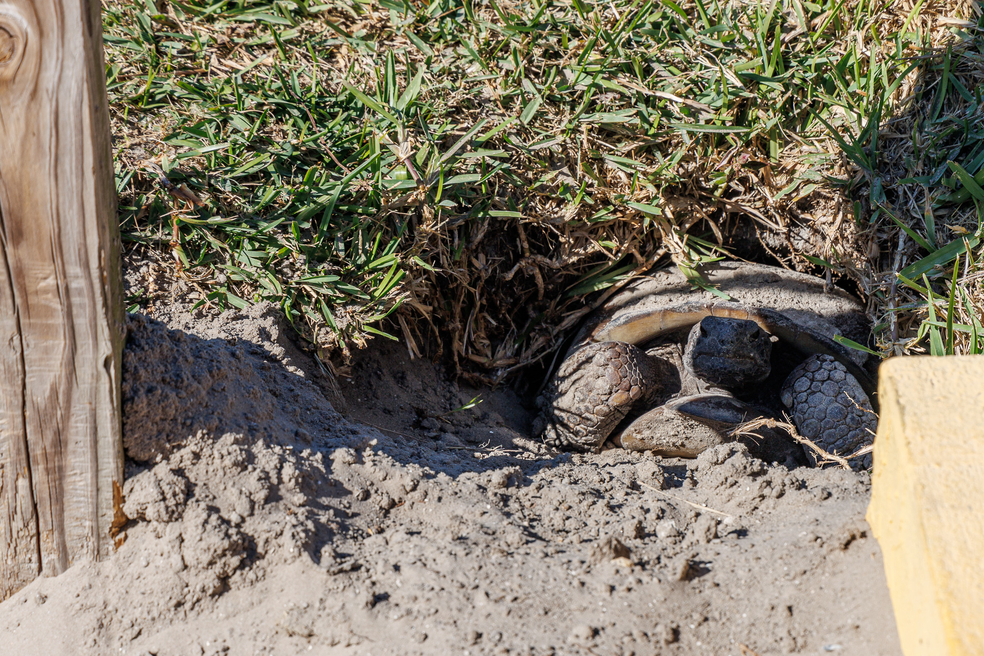 Cape Canaveral est également une réserve naturelle. C’est l’un des meilleurs sites de nidification des tortues de la côte Est et cette tortue l’a bien compris, bien cachée dans son trou de sable !