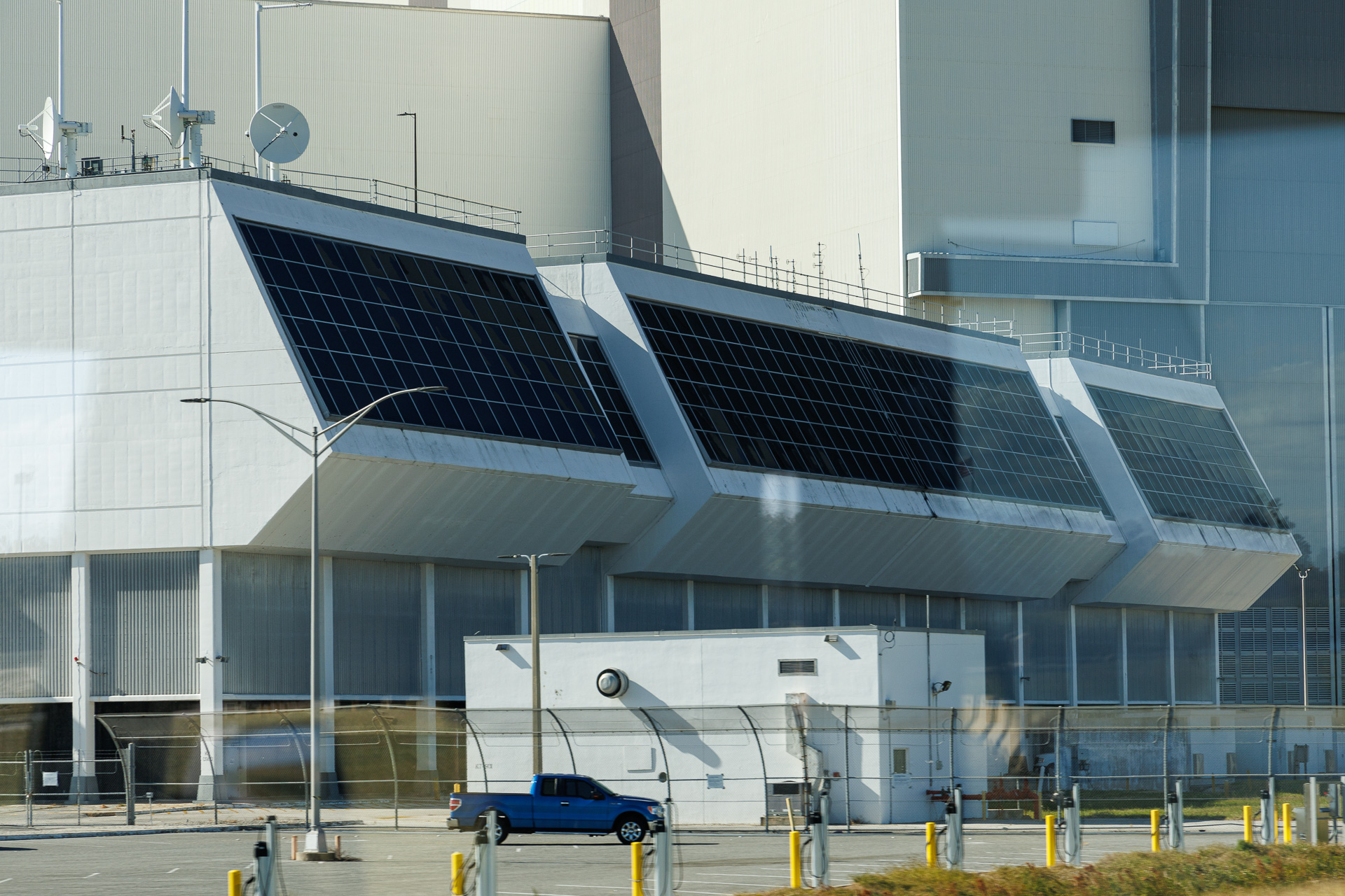 Mesurant 160 mètres de haut, 218 m de long et 158 m de large, couvrant une superficie de 32 500 m2 et offrant un volume de 3 664 883 m3, le VAB constitue le septième plus gros bâtiment du monde par son volume. Ses 4 portes sectionnelles (2 grises visibles sur la photo) sont, avec leur 139 mètres, les plus hautes portes du monde.