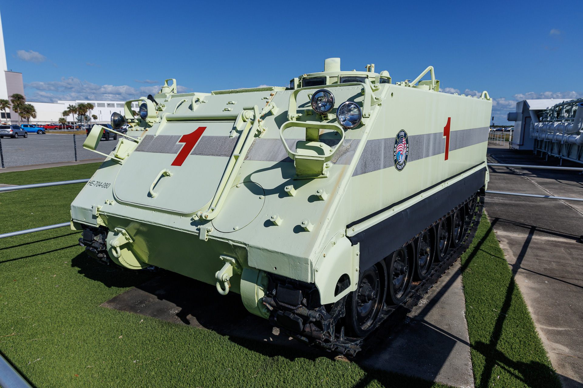 Le M113 est un véhicule de sauvetage qui aura pour mission de mettre hors de danger les astronautes en cas d’accidents graves lors du lancement. 3 véhicules se trouvaient à proximité de la rampe de lancement et 2 autres à moins d’1,6 km du lieu de lancement. A bord de chacun des véhicules se trouvait une équipe de pompiers.