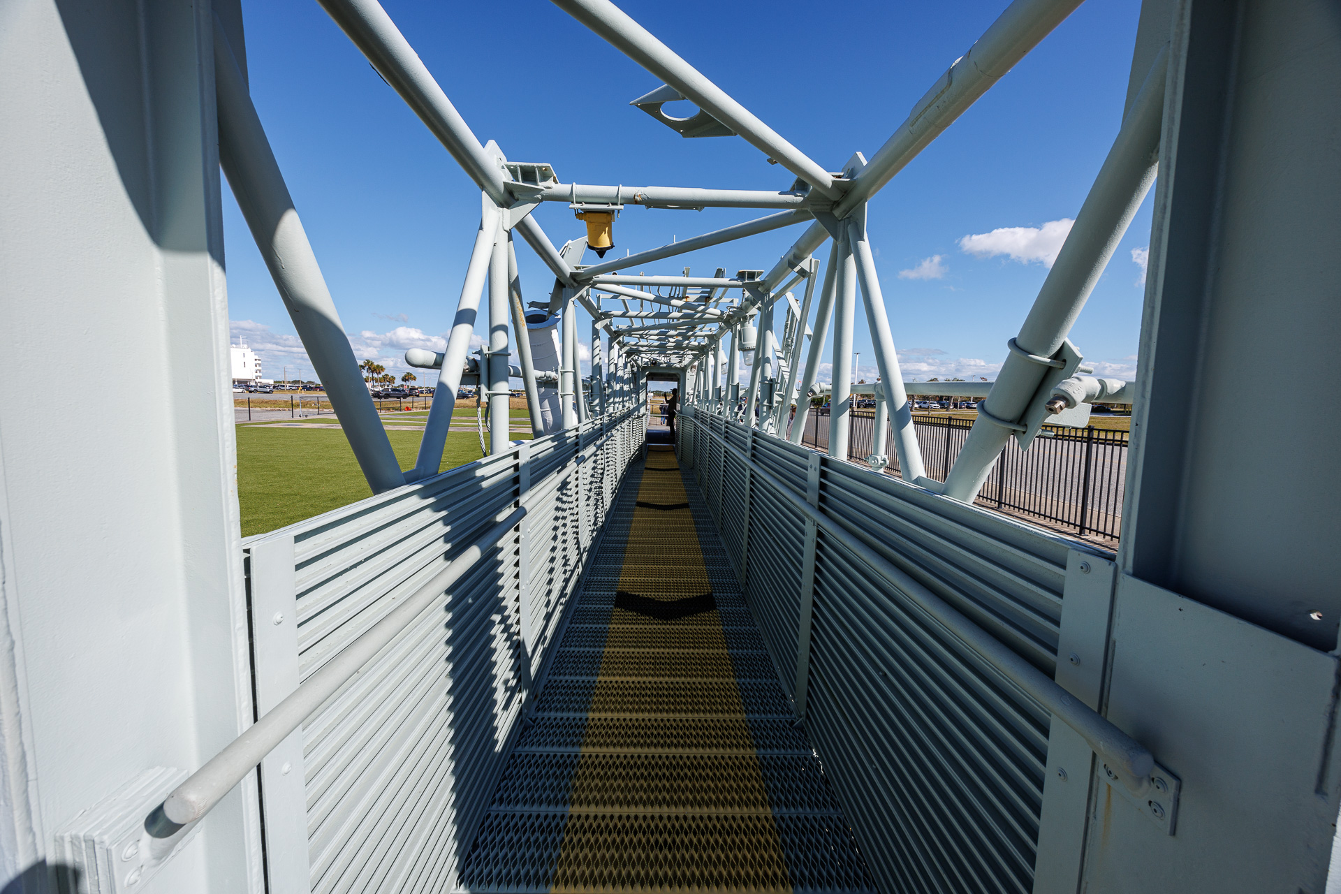 La passerelle qu’empruntaient les astronautes pour rentrer dans les capsules. On a tous en mémoire des images des astronautes en combinaisons spatiales ….