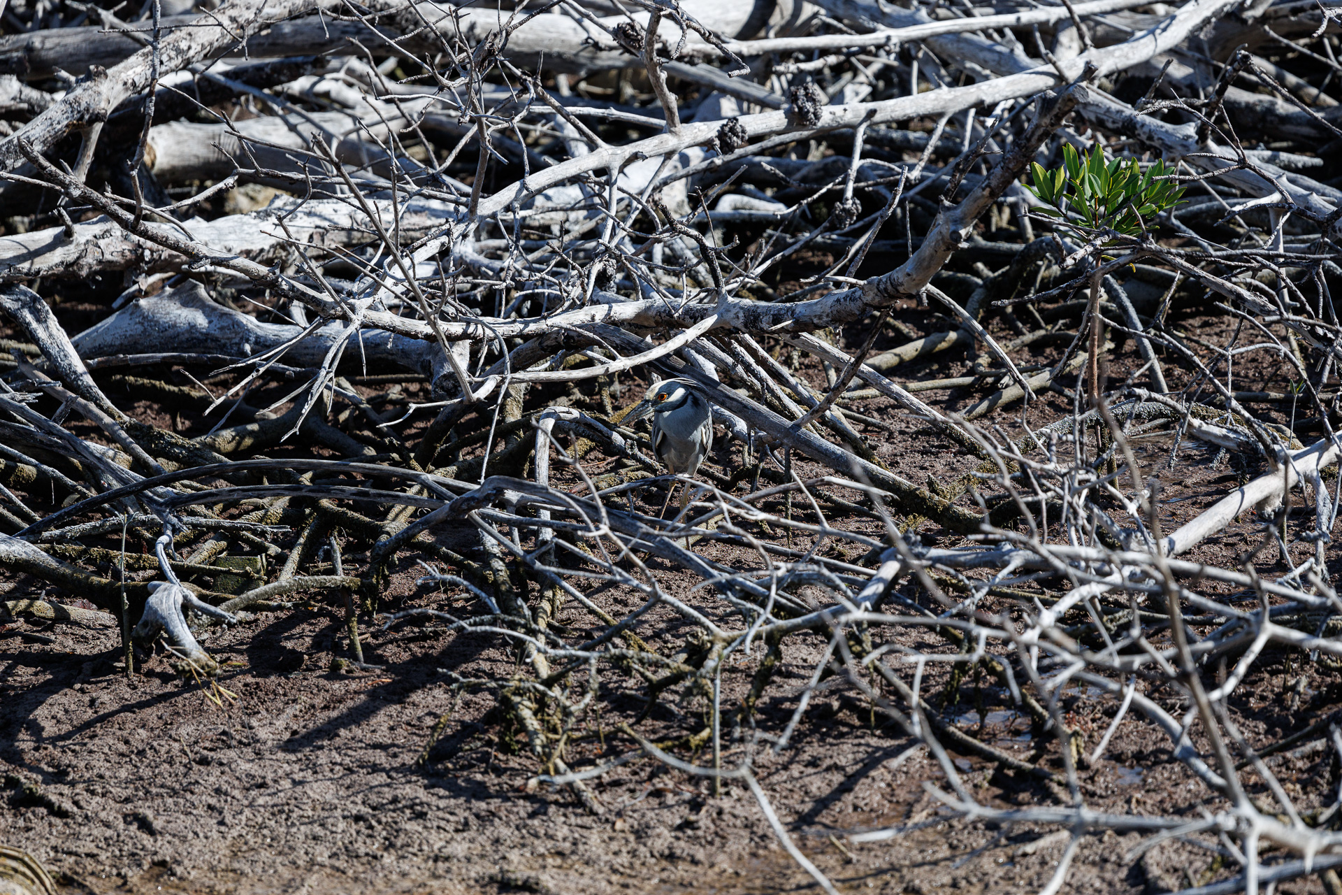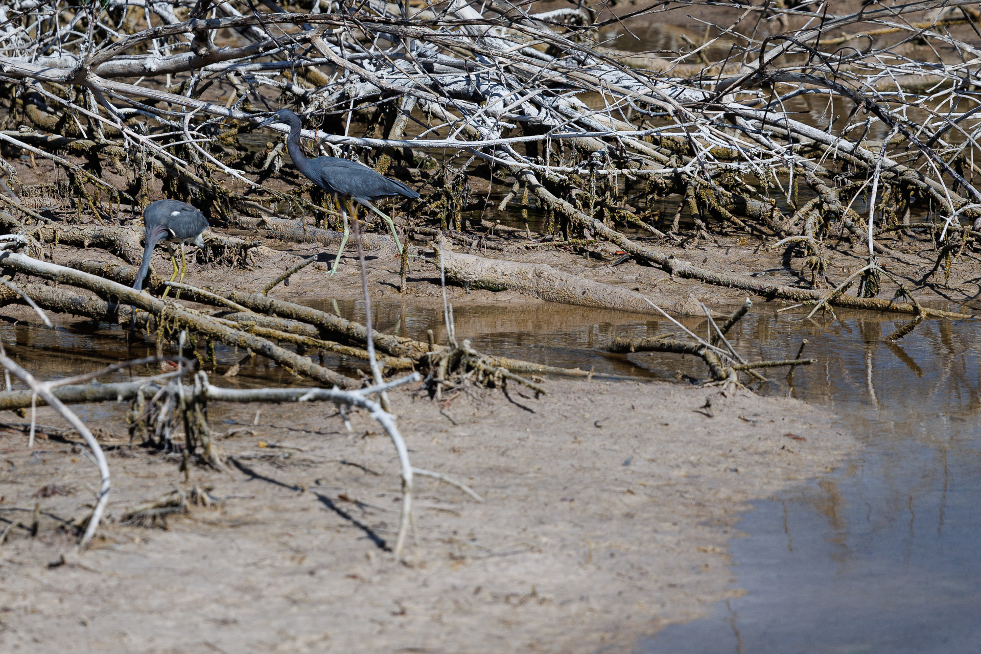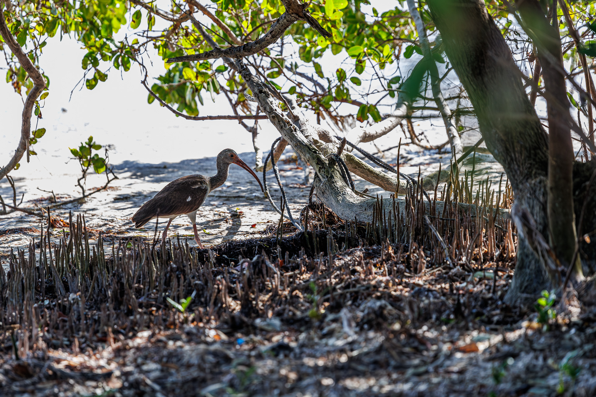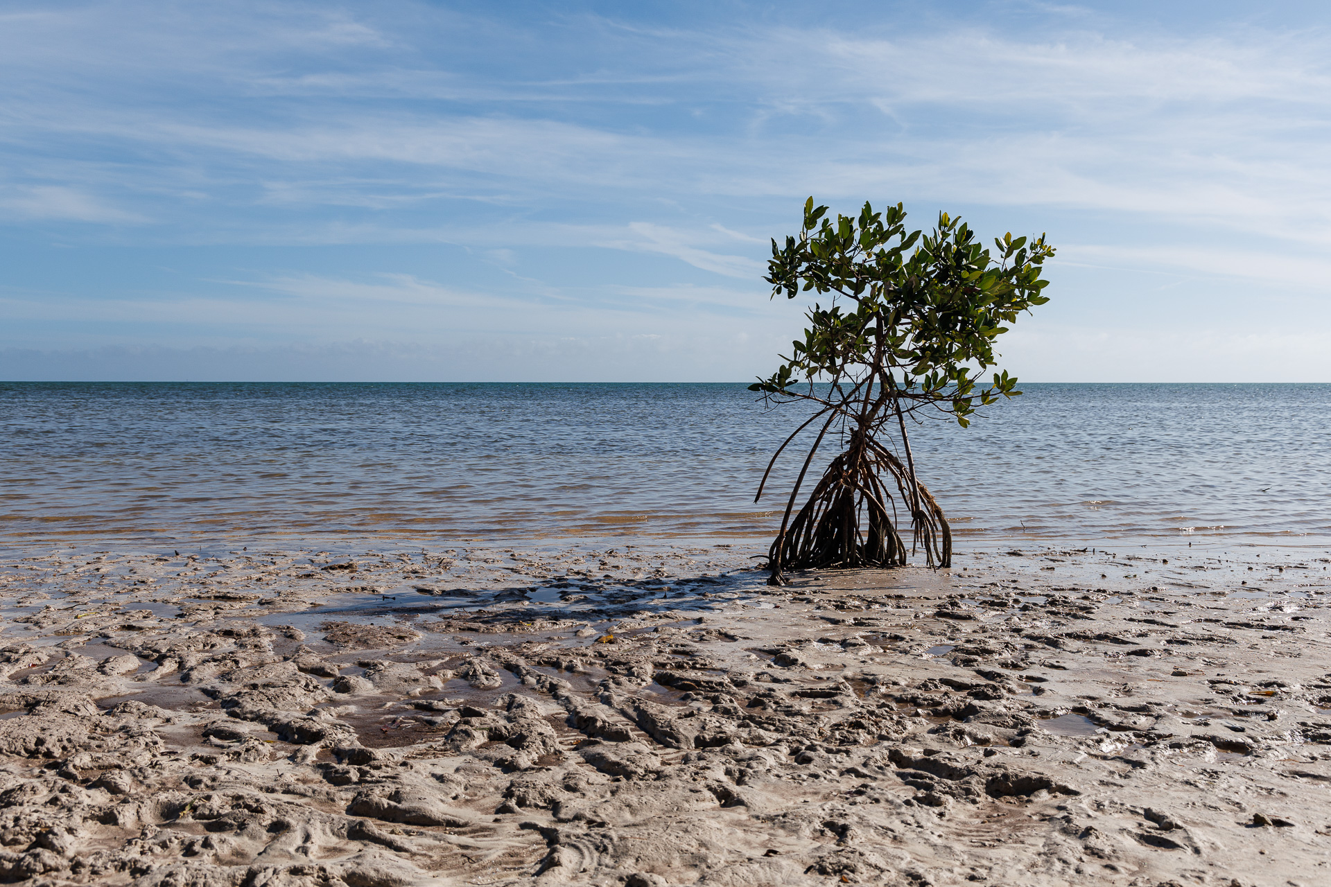 Nous faisons une petite halte au Long Key State Park. Le parc donne une impression d’abandon. Nous apprendrons que l’ouragan Irma en 2017 a fortement impacté le parc. La mangrove intérieure, un élément majeur du parc avec une promenade et une tour d’observation, a été détruite par l’eau salée. Les terrains de camping en bord de mer ont été emportés avec la plage naturelle, tout comme les promenades et les ponts. Cette passerelle rénové nous permet de rejoindre la mer. On aperçoit au loin l’escalier qui permettait d’accéder à la tour d’observation.