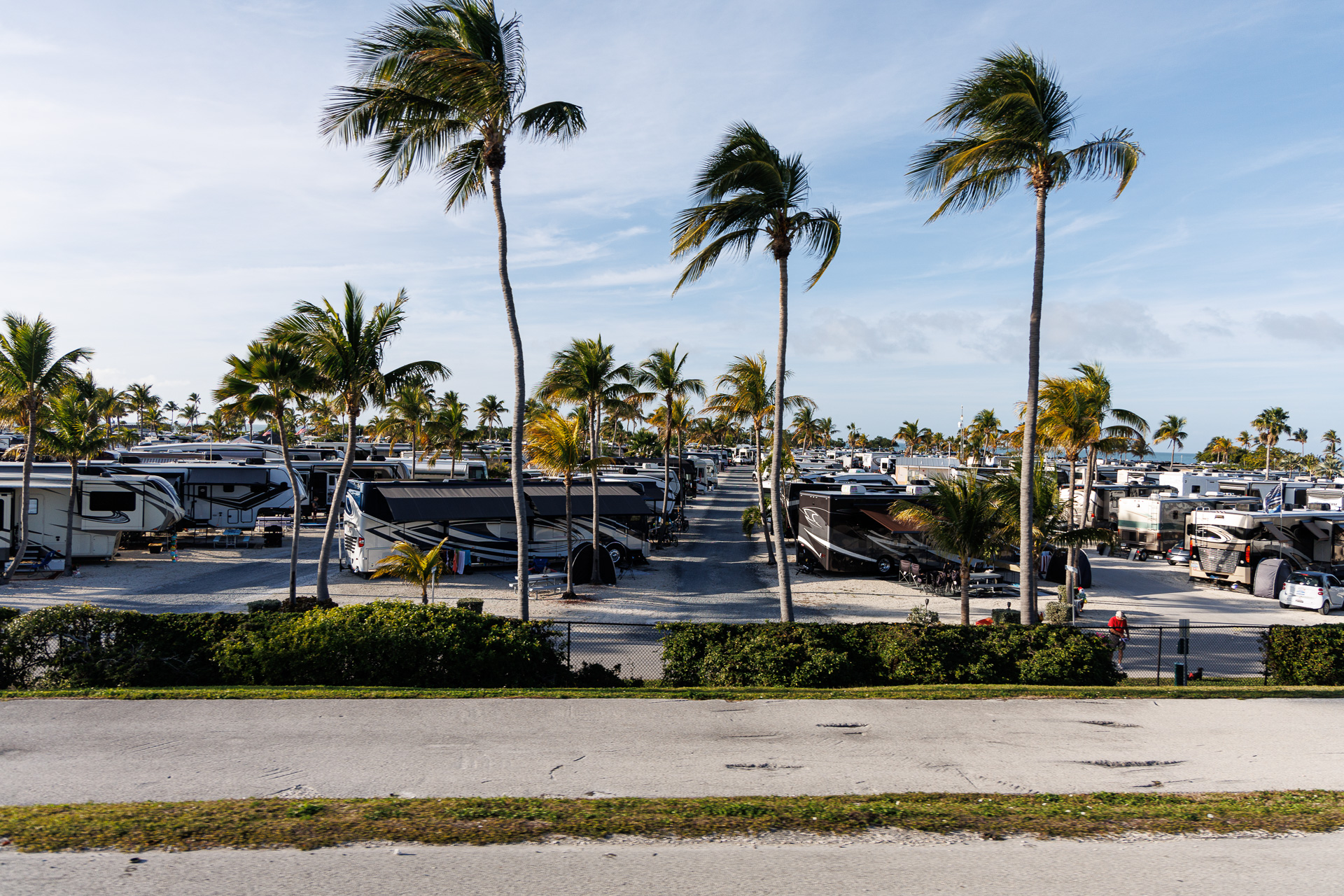 Initialement, nous avions prévu de nous arrêter dans un camping avant d’arriver à Key West malgré les prix exorbitants (entre 150 et 200$ la nuit, avec l’électricité 🤪) mais tout était complet ! Heureusement pour nous car les campings ne nous font pas du tout rêver 😱…  Une tentative de bivouac sur un grand parking d’église désert sera rapidement mise à mal par la police locale : »RV park and hotel only ! »… pas d’autre alternative que d’aller dans un camping ou à l’hotel 🥴.
