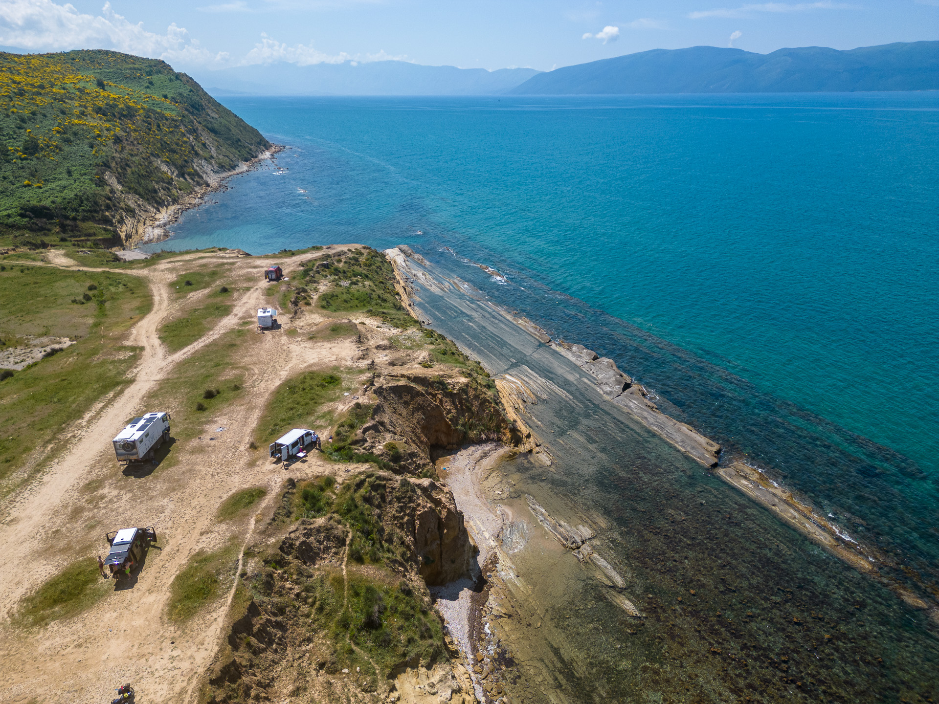 Nous reprenons la route en direction du sud et en particulier vers le bunker pour sous-marins qui nous a aussi était indiqué par nos amis 👍. Nous longerons les plages de la riviera albanaise.