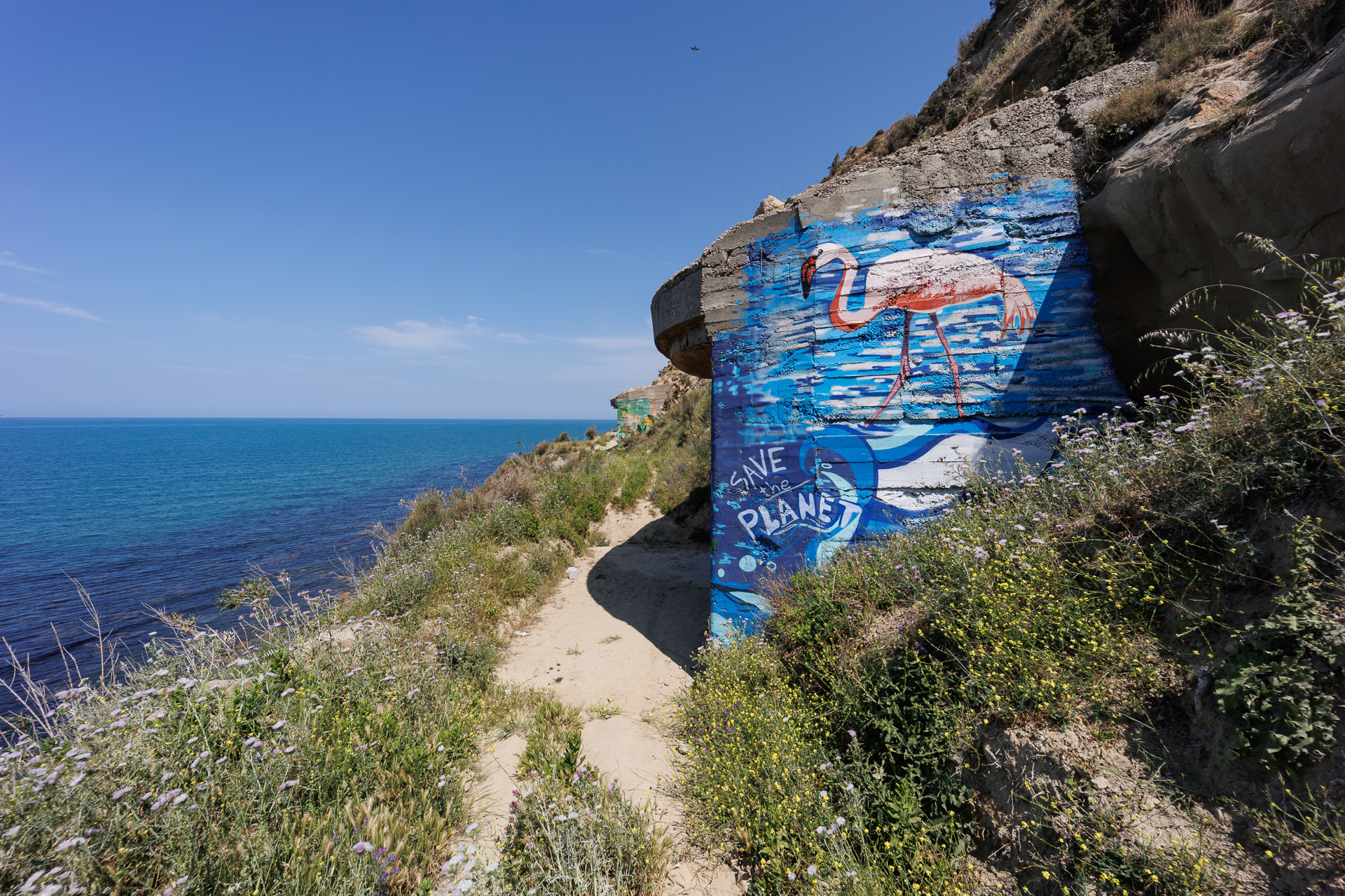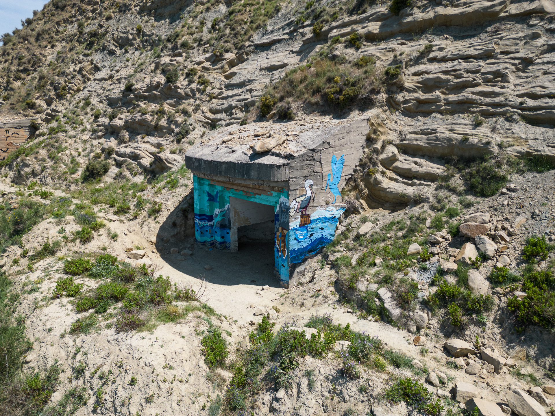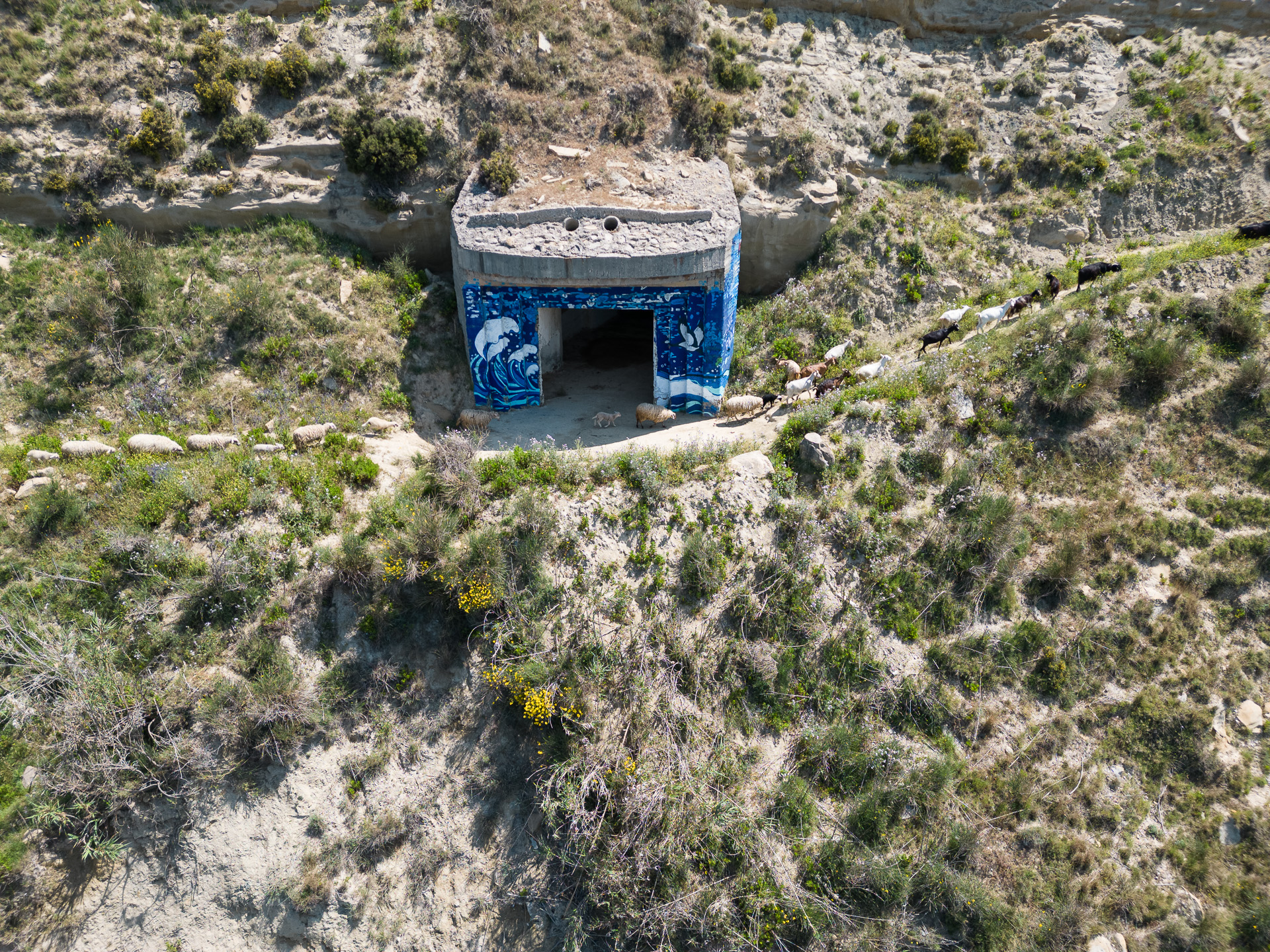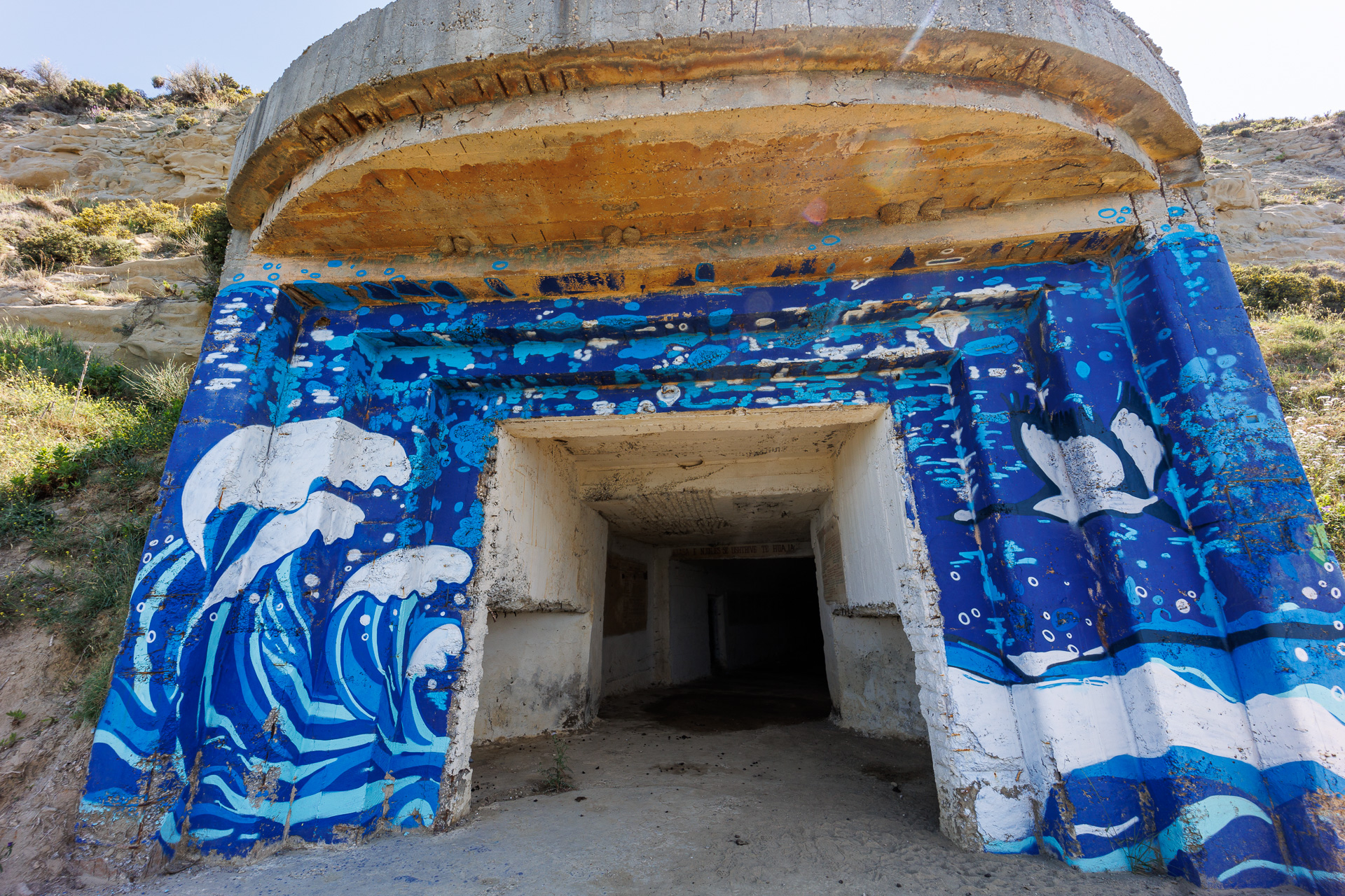 Ce matin, sur les recommandations d’amis, nous ferons une petite halte à 2 kilomètres de notre bivouac pour découvrir un bunker. Avant de partir à la découverte de celui-ci, nous profitons d’un vent calme pour faire quelques photos avec le drone. Même vu du ciel, l’endroit est beau 🤩 !