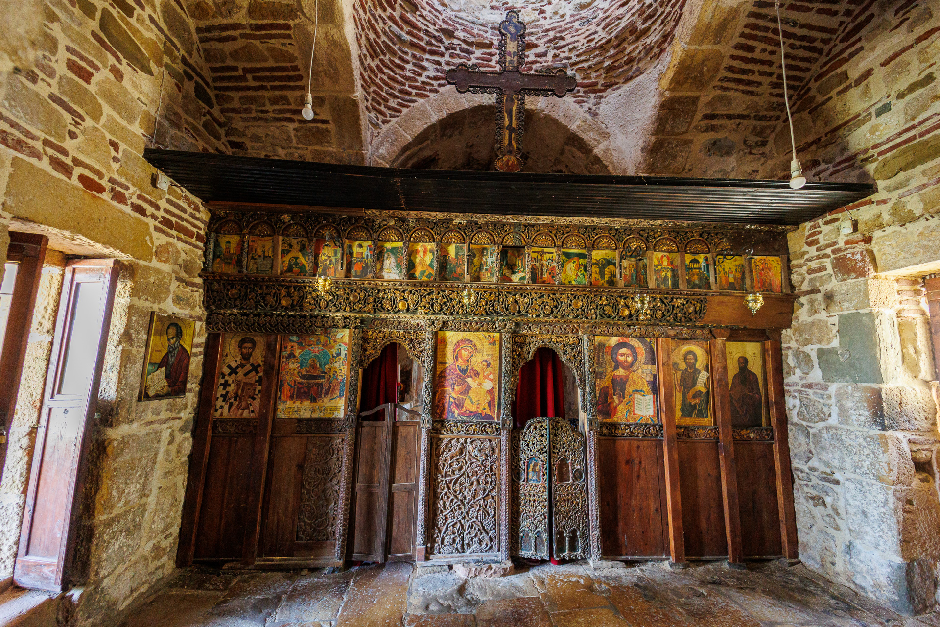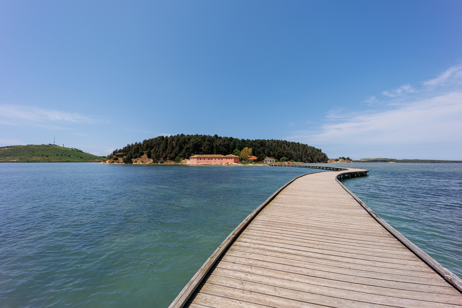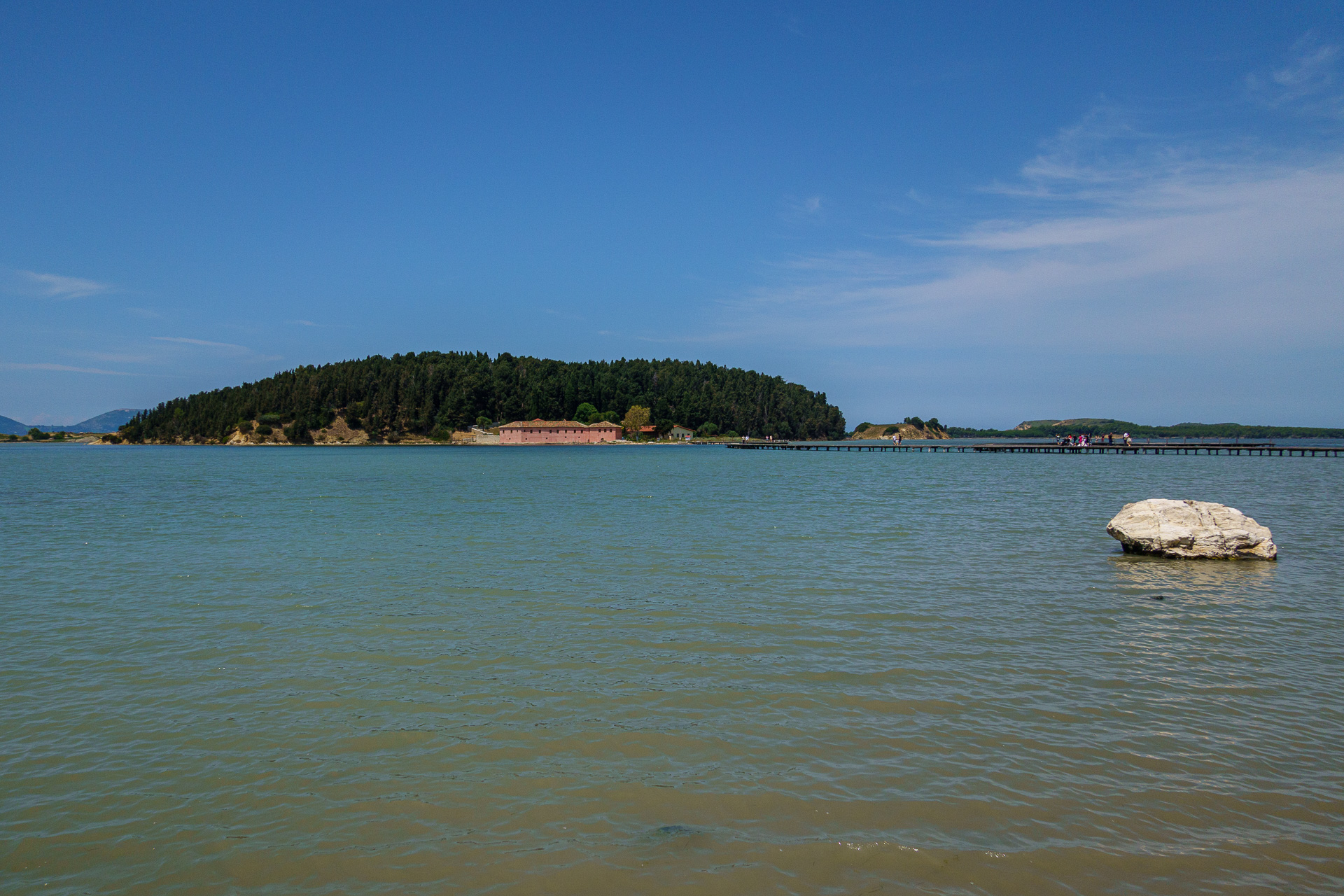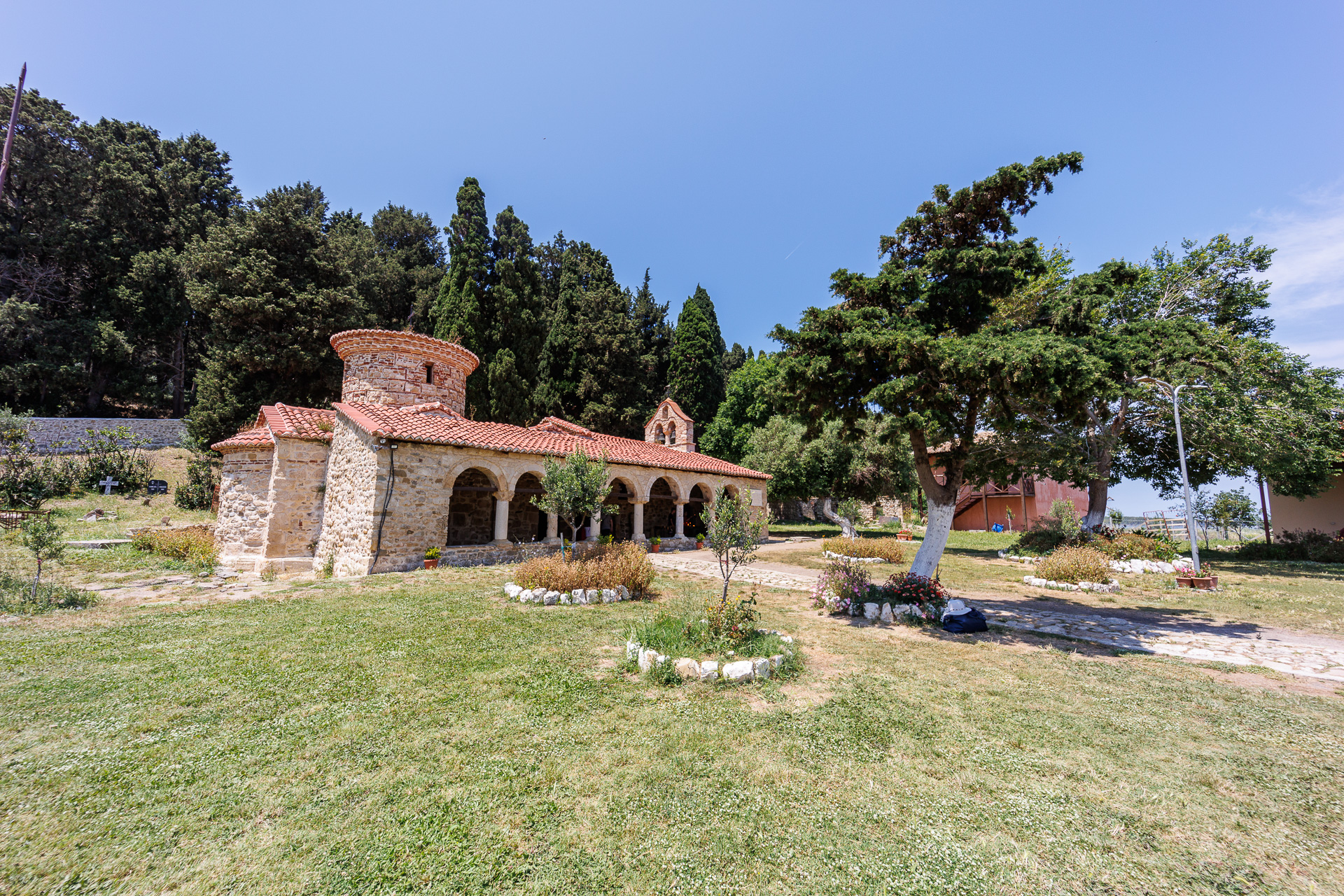 En quittant le bunker, nous nous rendons à quelques kilomètres de là au monastère de Sainte Marie de la Divinité (14ème siècle) situé sur une petite île reliée au continent par une jolie passerelle en bois.