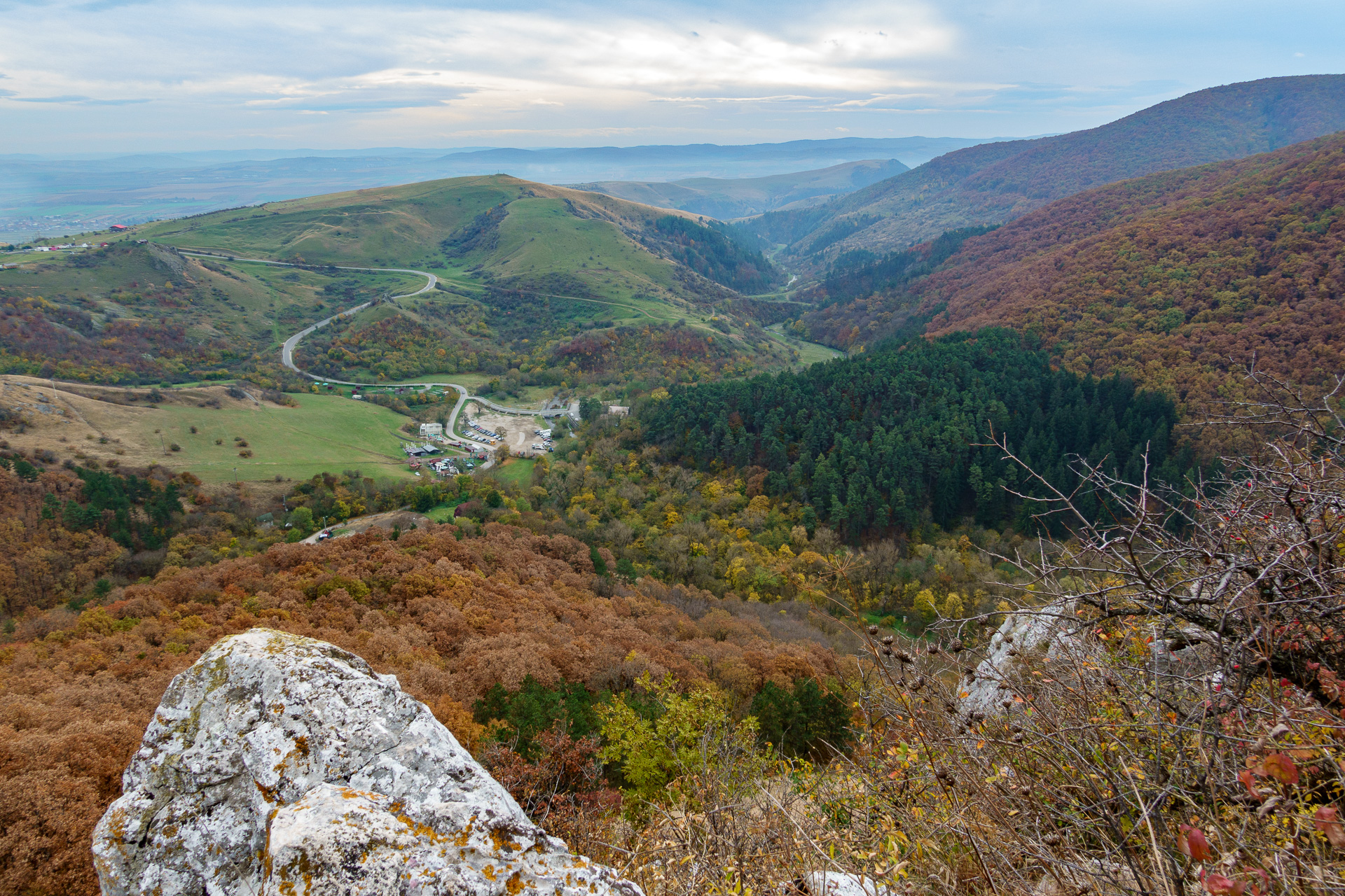 168984 km : Après une nuit très calme passée sur le parking du site, nous partons à la découverte du canyon des gorges de Turda. Le ciel est légèrement couvert et les températures sont de saison 😁 ! Fini le tee-shirt et le bermuda, le bonnet et les vêtements chauds s’imposent maintenant 😜. Il fallait bien qu’à un moment cet été sans fin cesse !!