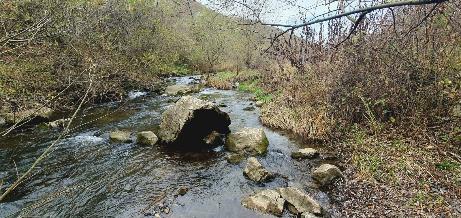 Nous longerons les flancs verticaux sur lesquels, de toute évidence et cela est visible sur la photo 😉, l’escalade est pratiquée.