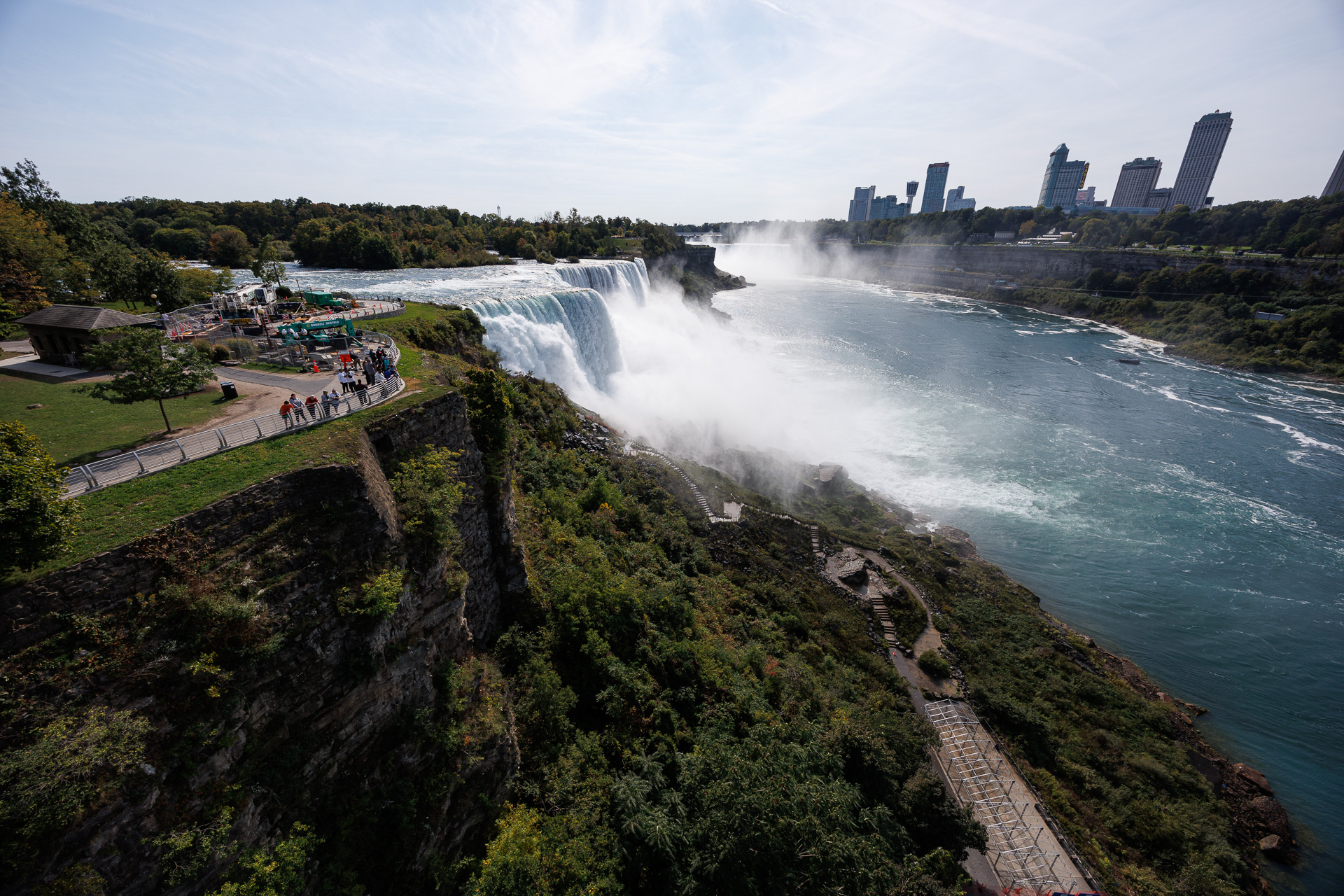 En face, c’est le Canada ! Bridal Veil Falls au premier plan, pas très larges.