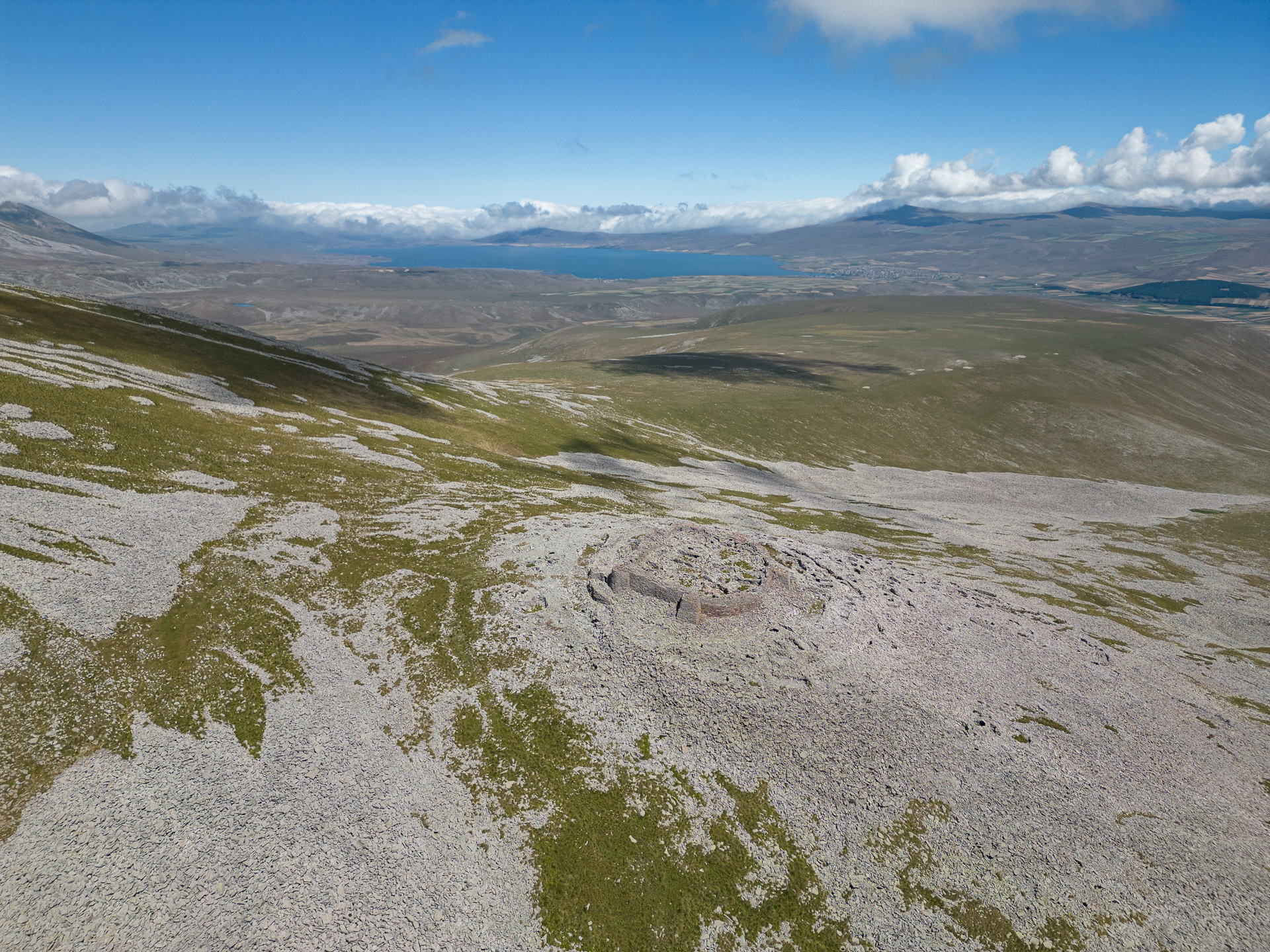 Vue du ciel, la forteresse a la forme d’ un anneau. On peut distinguer la tour et les différents espaces de vie à l’intérieur du fort.