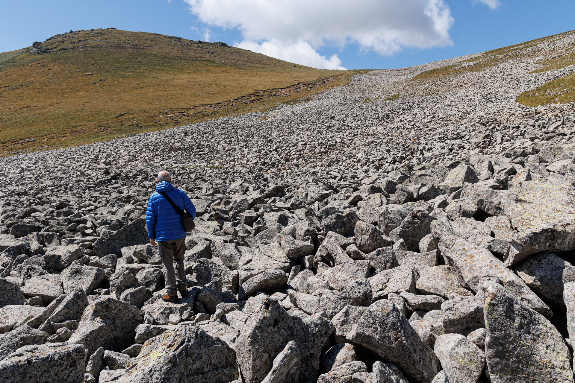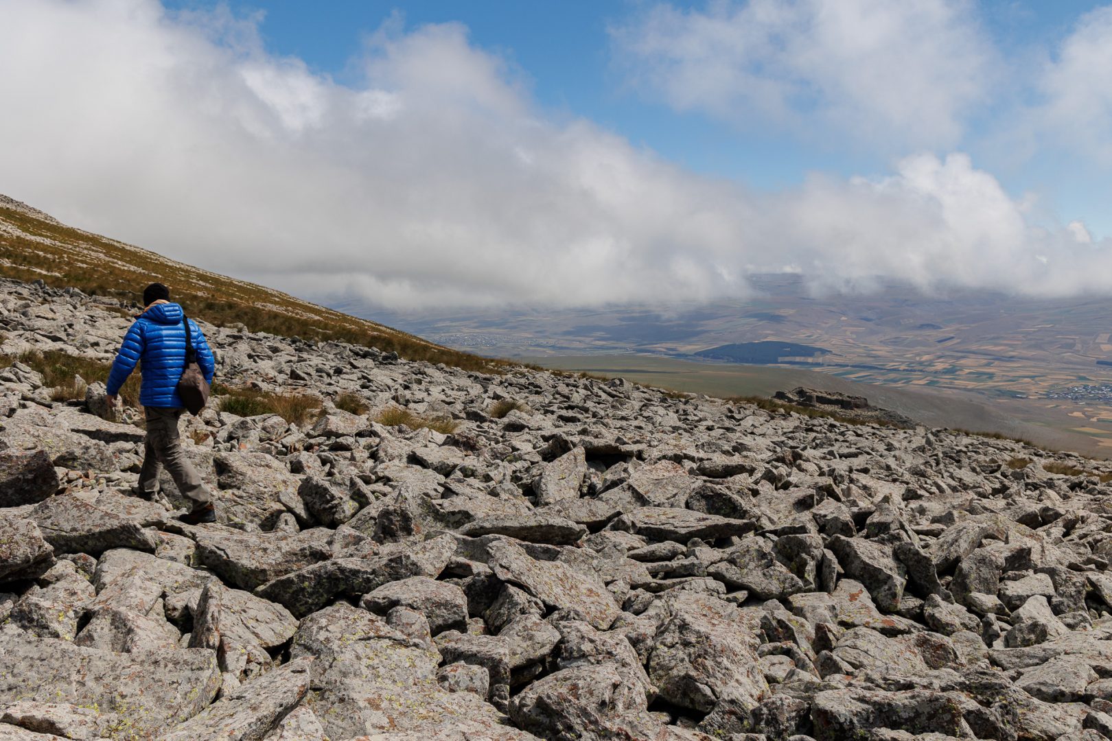 Pour rejoindre le camion, il nous faudra à nouveau traverser cet immense champ de pierres.