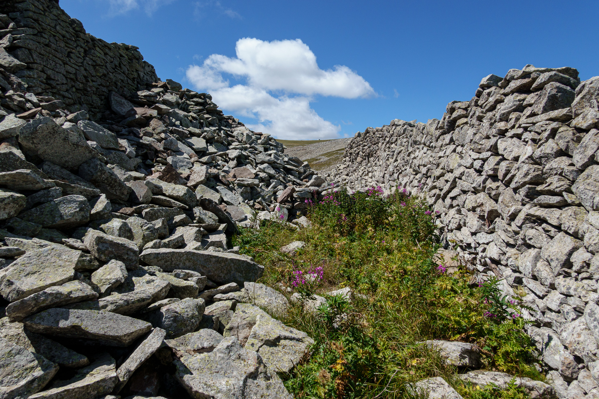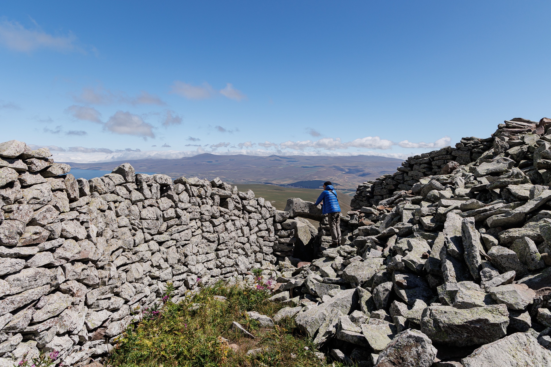 A l’intérieur, il faut escalader les pierres pour accéder au haut des remparts.