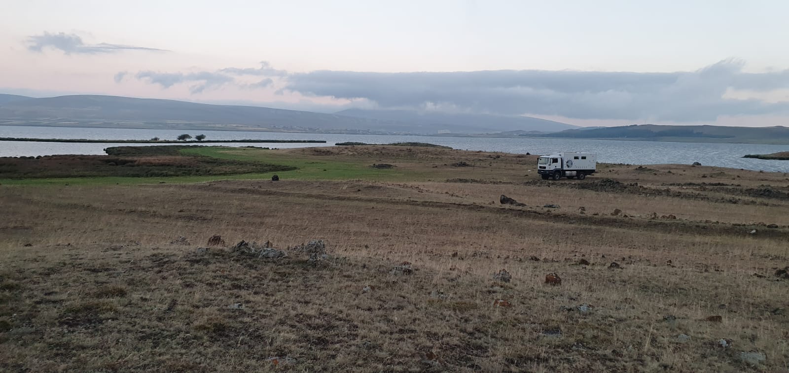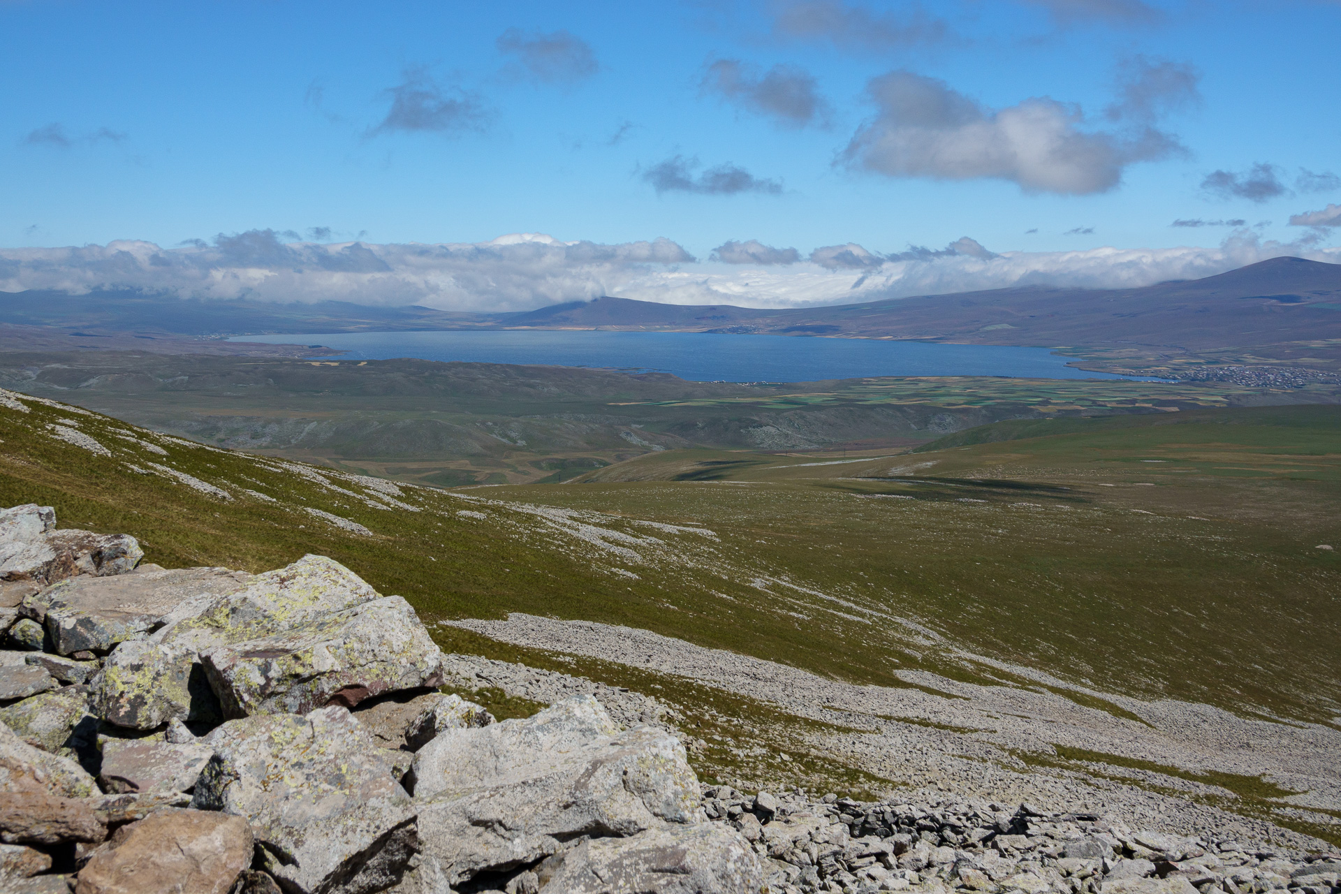 Du haut des remparts, nous apercevons le lac Paravani au bord duquel nous irons bivouaquer ce soir.