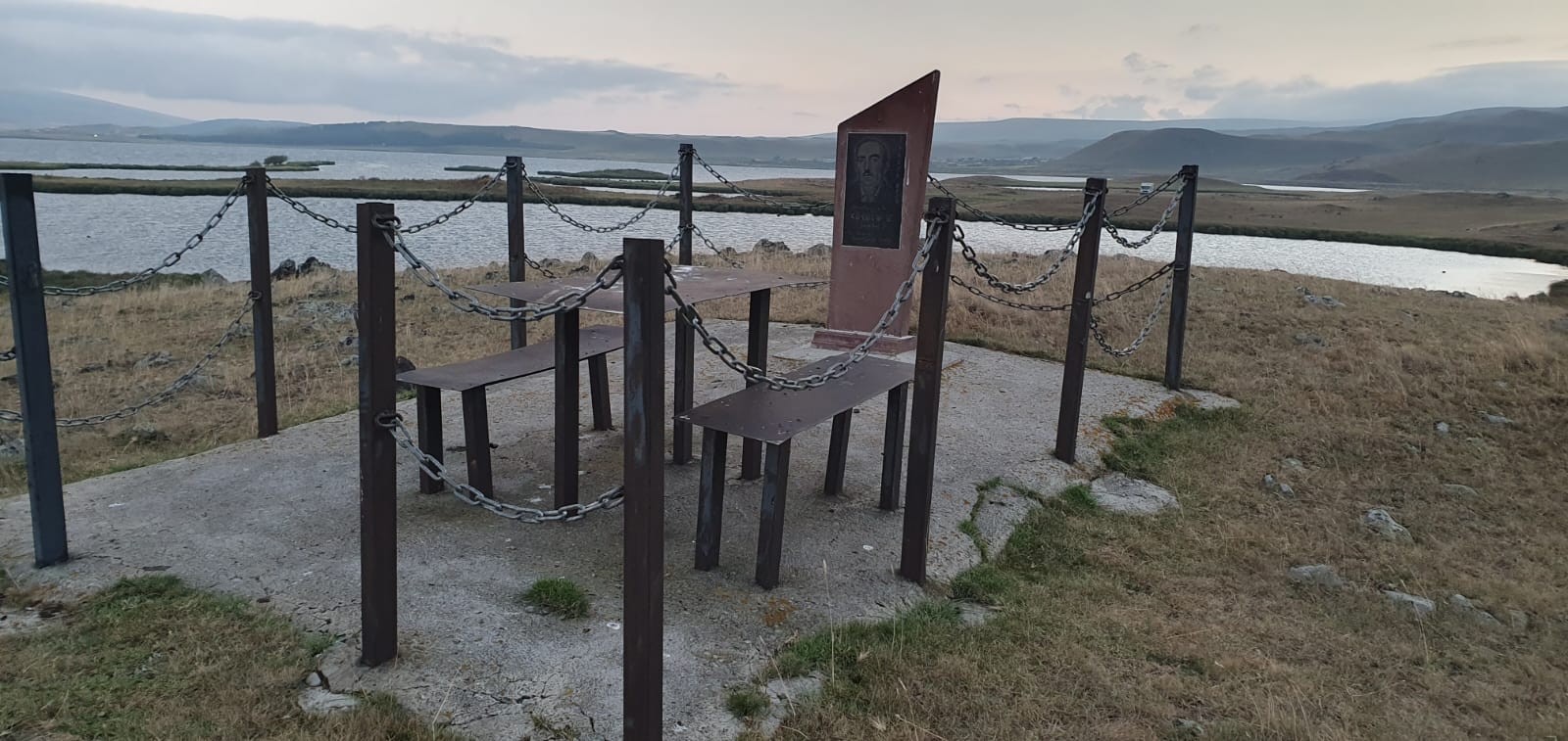 Sur une petite butte à proximité du bivouac, une tombe avec sa stèle gravée et, comme souvent, table et bancs pour les visiteurs.