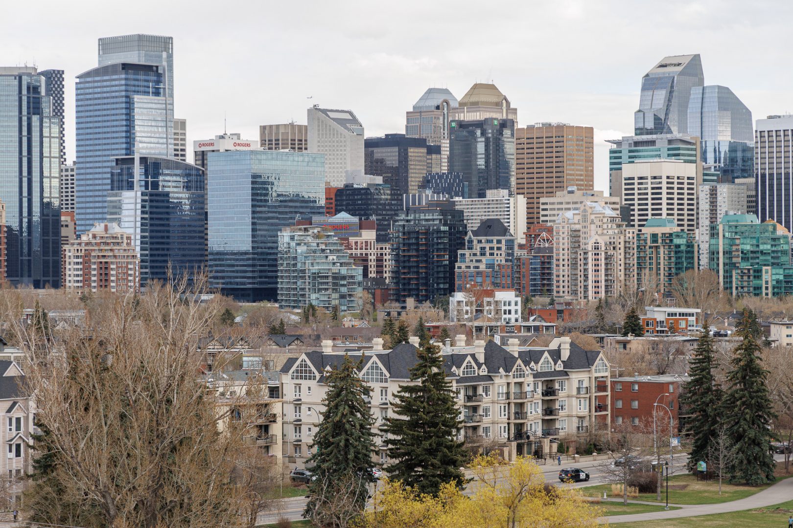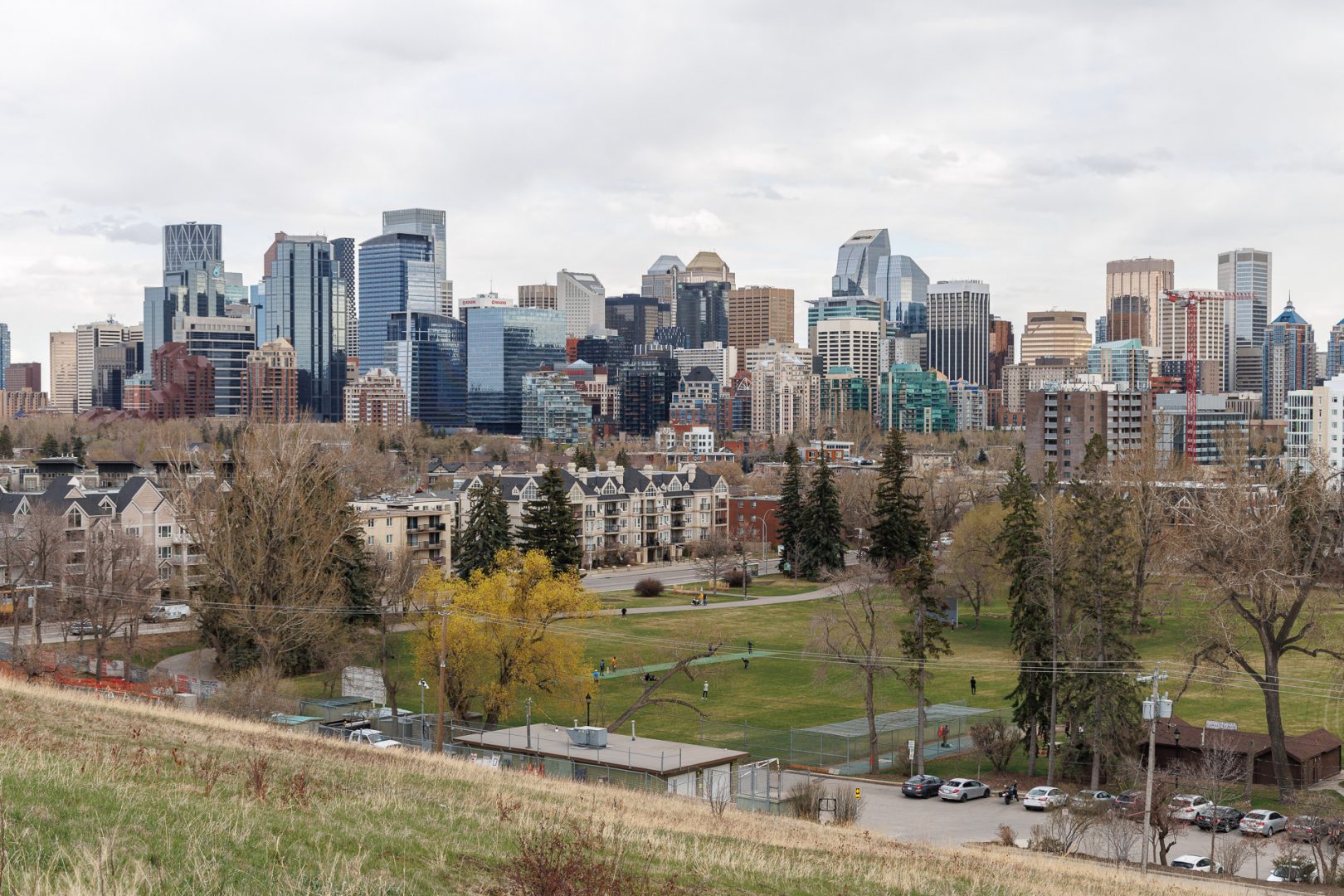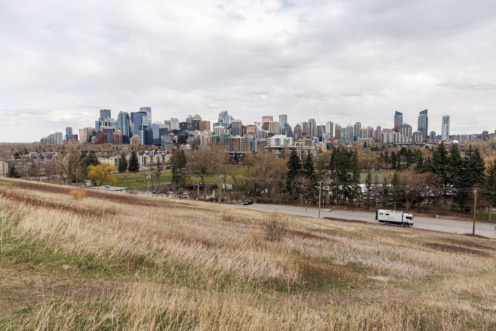 Nous en profiterons pour faire quelques photos depuis la butte qui surplombe le parking. Très jolie vue sur Calgary… et, comme vous pouvez le voir, nous ne sommes pas gênés par les voisins 😜 !