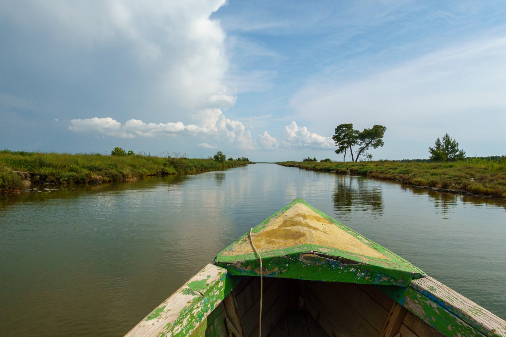 Nous partons en bateau à moteur à la découverte des oiseaux et de la lagune !